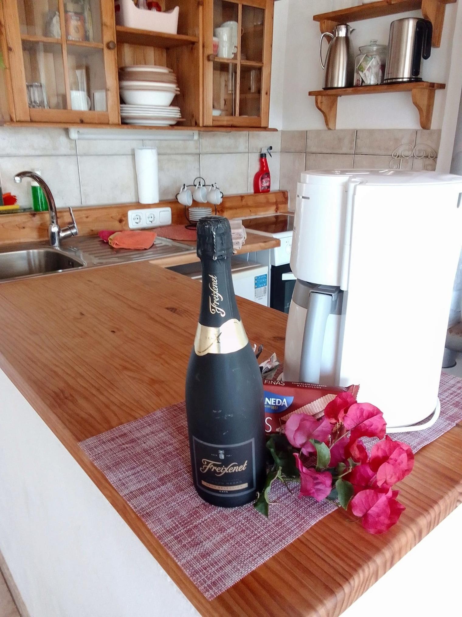Die Gäste werden empfangen mit einem Obstkorb, einer Flasche Sekt und Süßigkeiten. Des weiteren steht ein Starterset zur Verfügung mit Essig und Öl, Salz und Pfeffer, Zucker, Kaffeemehl und Kaffeefiltern.