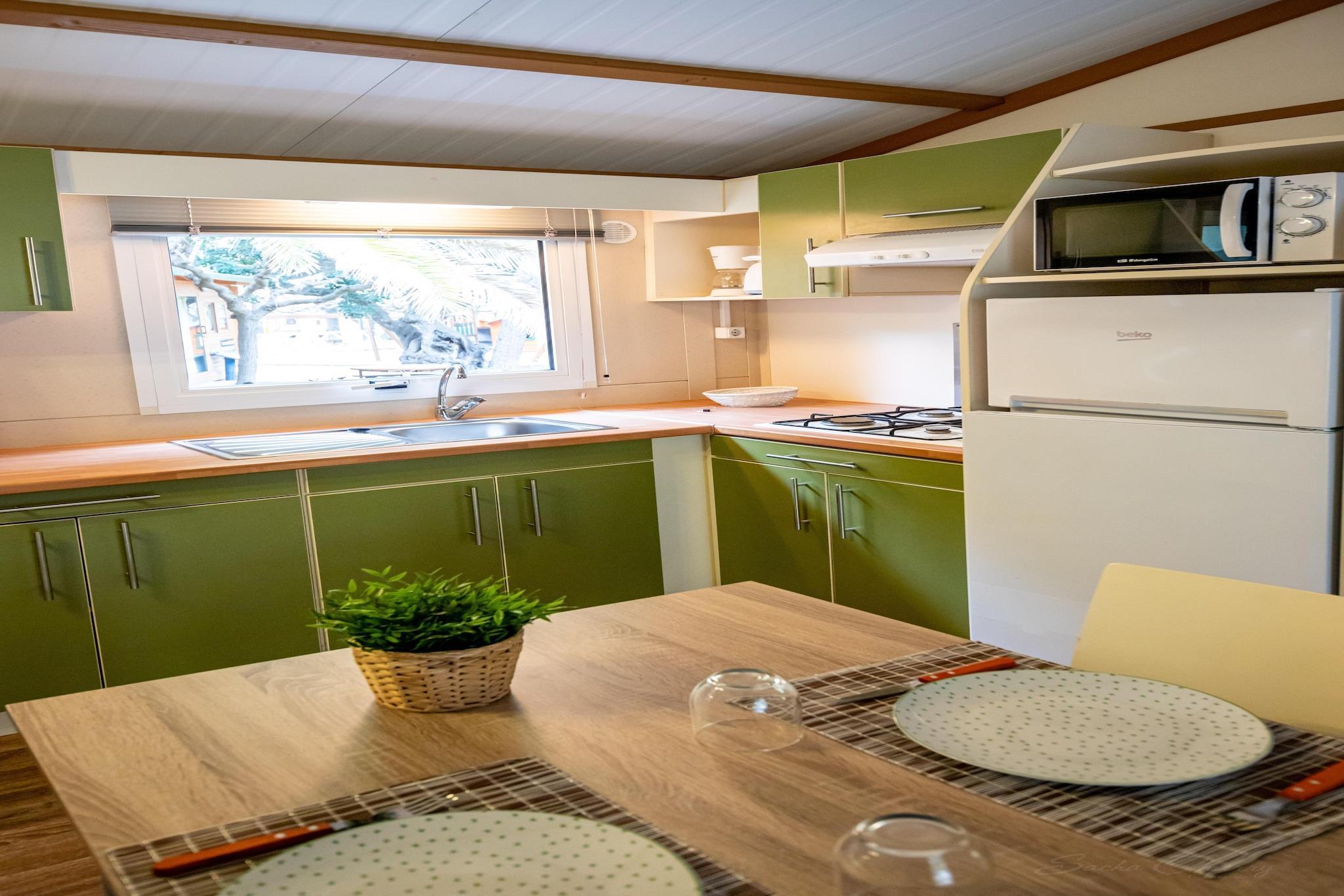 Oplev skønheden ved denne enestående campingplads, beliggende langs en fantastisk kystlinje, der er kendt for sit lave turkise vand og bløde sandstrande. Perfekt til familier eller venner, du kan slappe af under svajende palmer, mens du nyder lækker tapas, forfriskende sangria og traditionel paella. Vores charmerende træbungalow er designet til at rumme op til seks gæster, og byder på tre komfortable soveværelser inden for 33,75 m² boligareal, suppleret med en rummelig 12,50 m² terrasse. Nyd moderne komfort med aircondition for at holde dig kølig på varme sommerdage. Bemærk venligst, at kun to biler er tilladt pr. indkvartering, med et ekstra gebyr for at parkere det andet køretøj på den udpegede plads. Indtjekning er tilgængelig fra kl. 15.00 til 20.00, og udtjekning er kl. 10.00. Oplev en dejlig blanding af afslapning og kulinariske lækkerier på vores smukke campingplads!