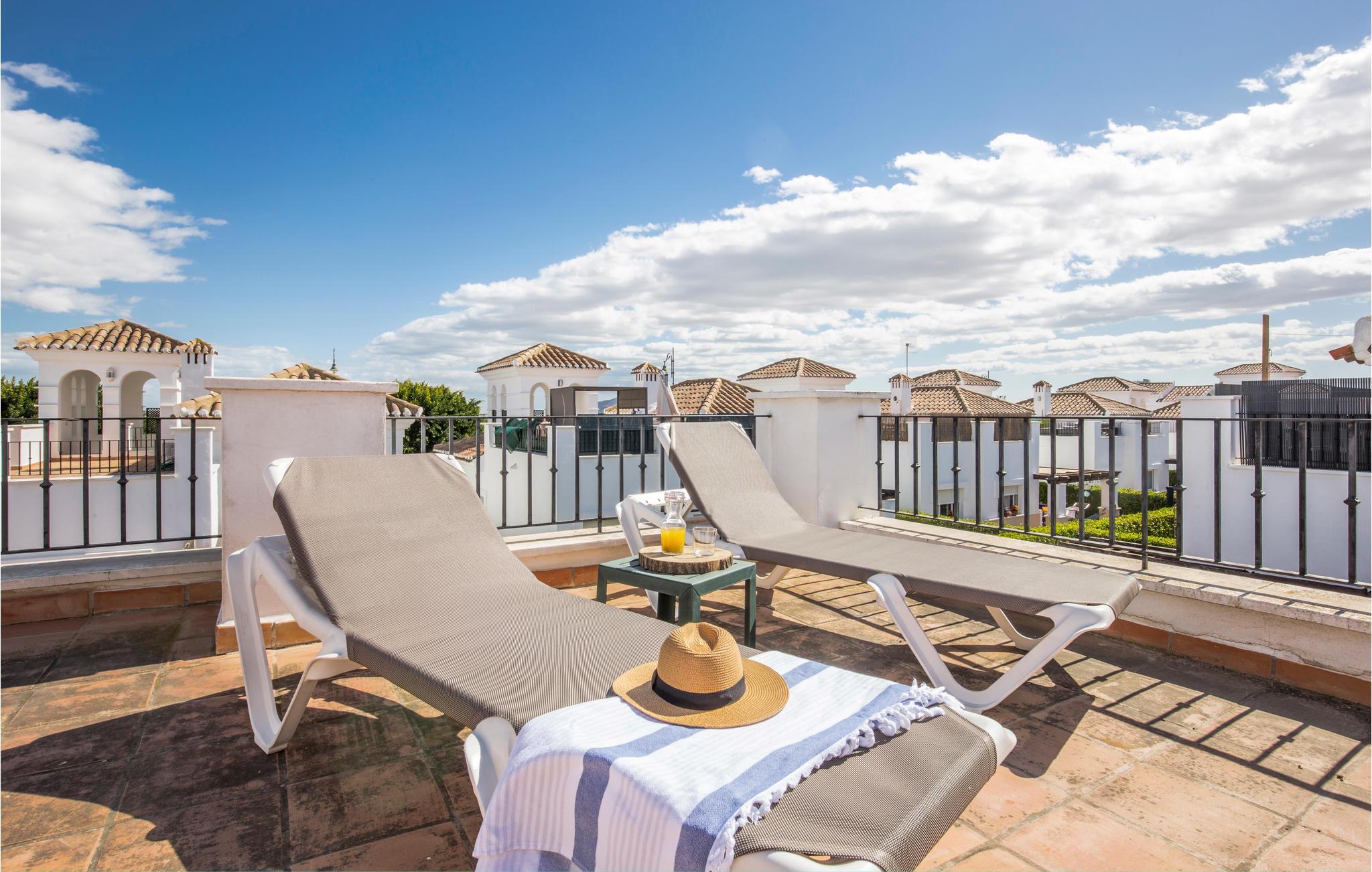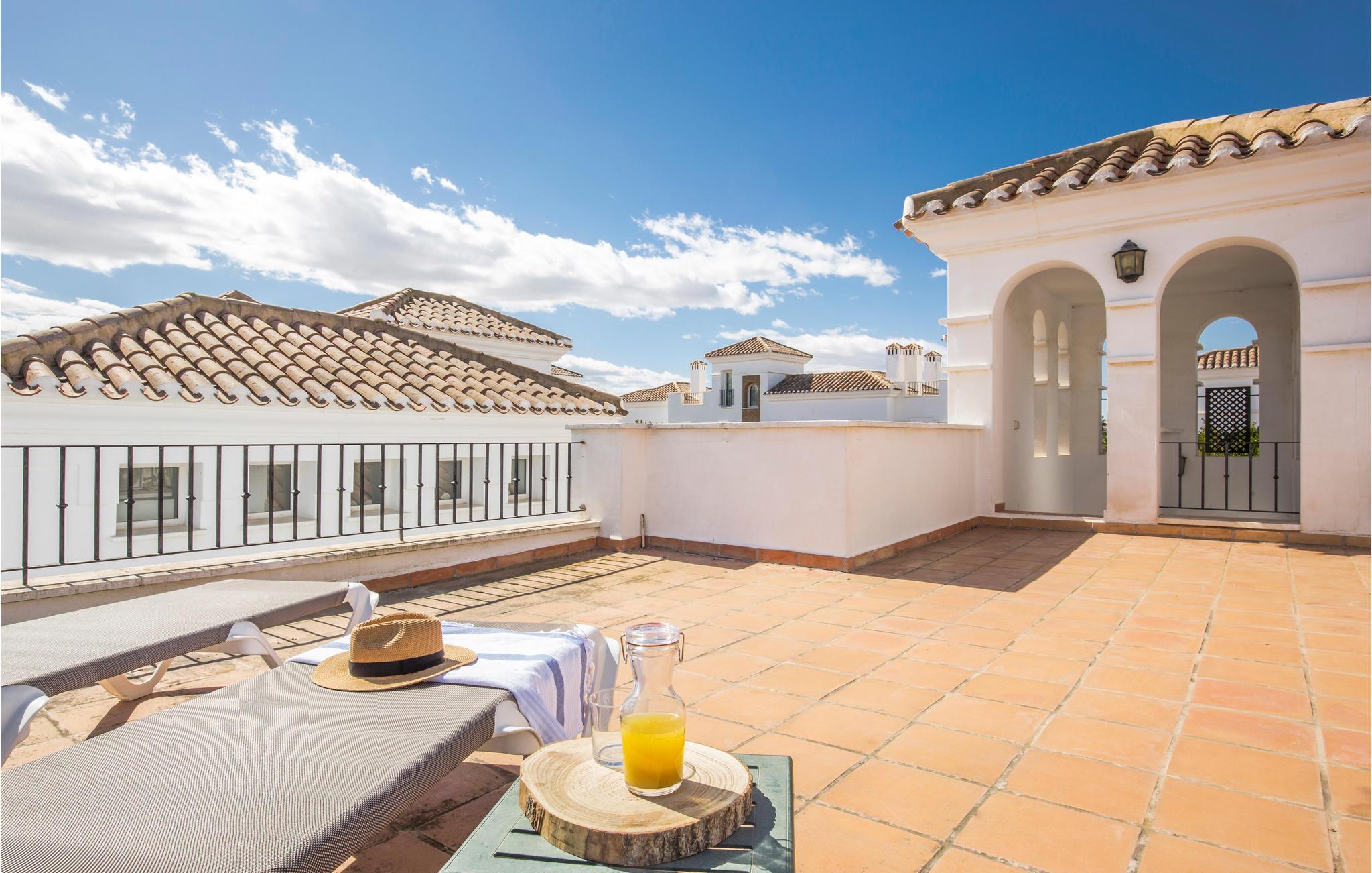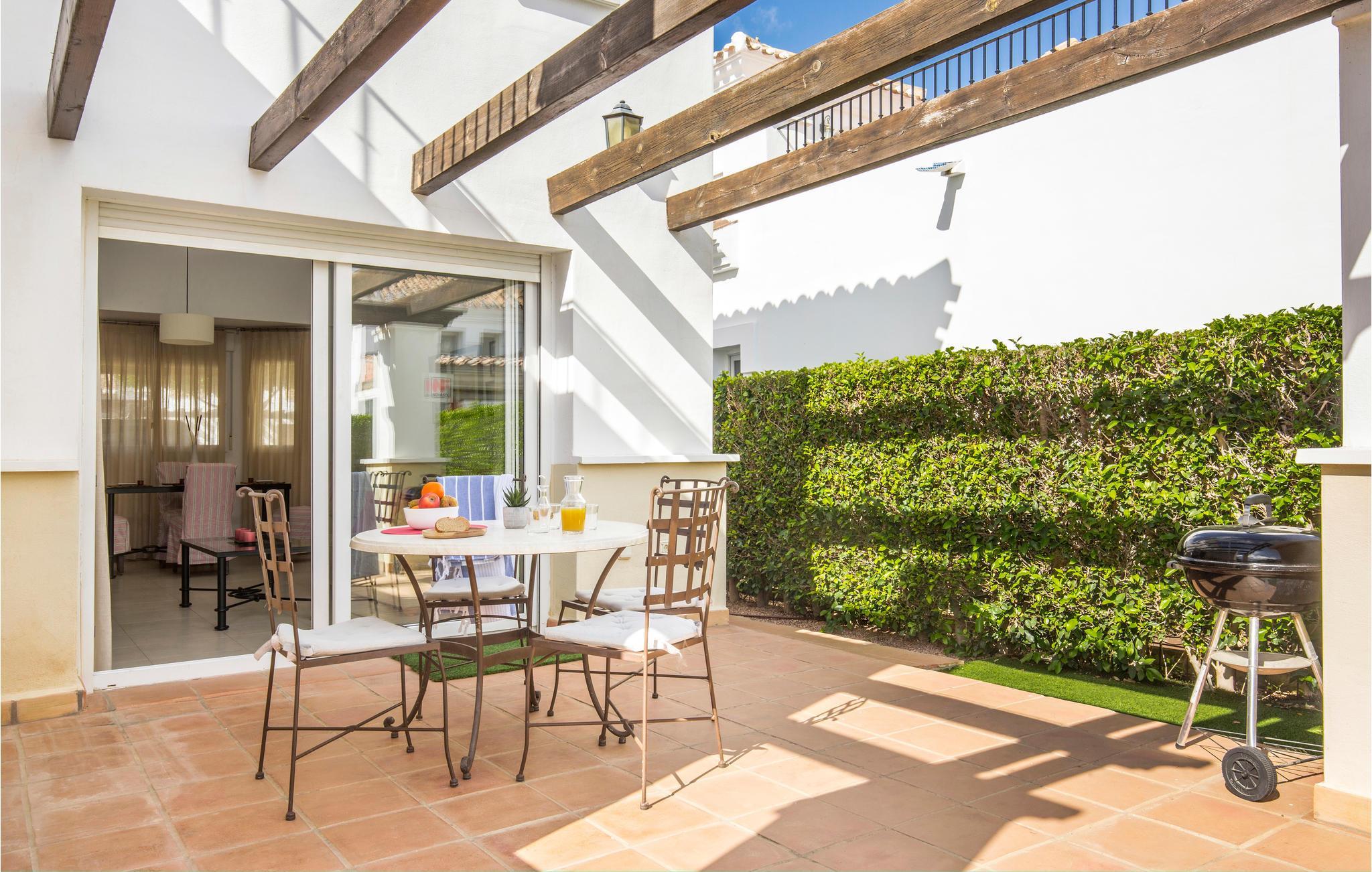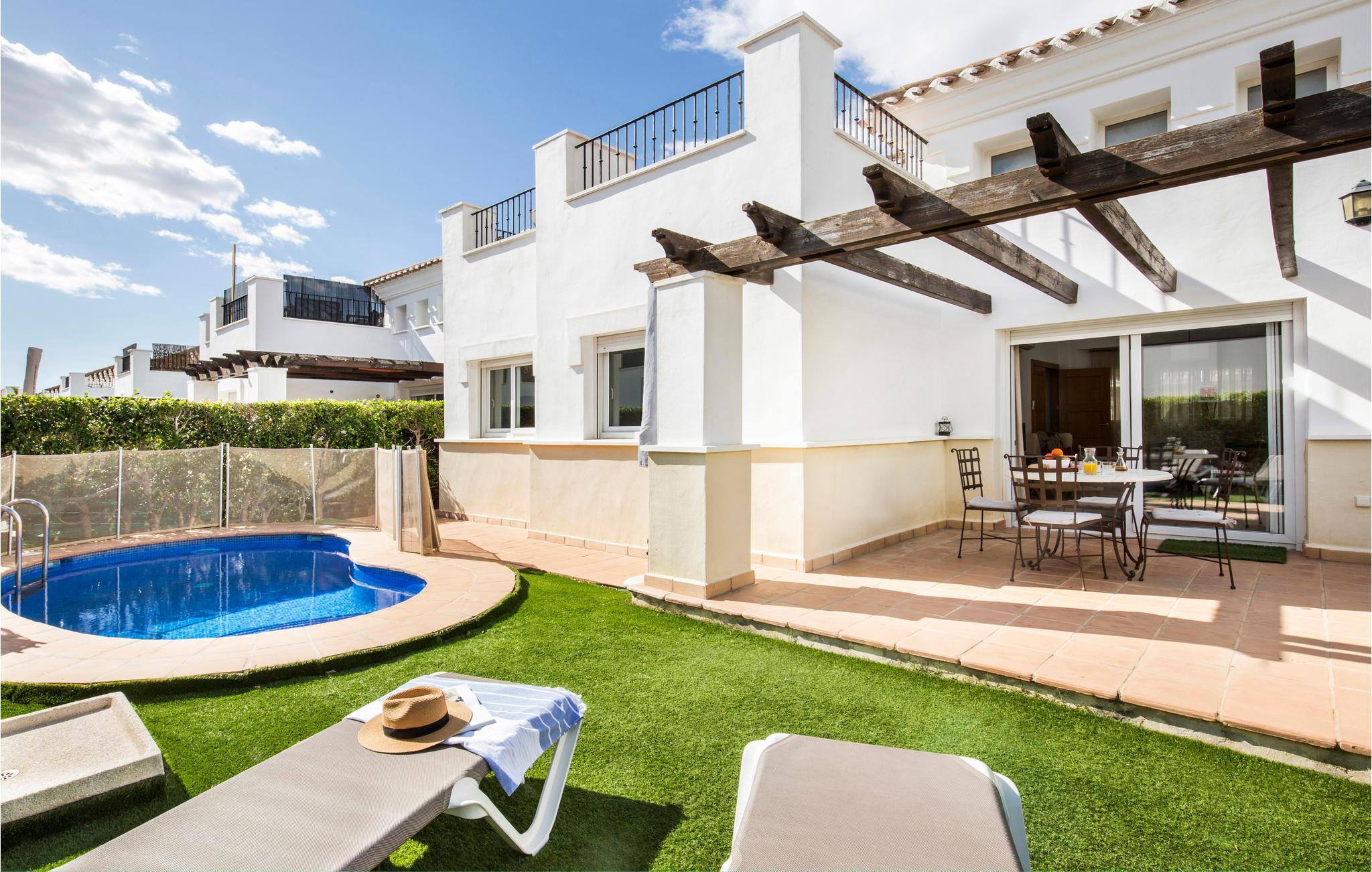 Et perfekt lille ferieparadis, med skøn terrasse og pool. Som noget helt specielt ligger huset på La Torre Golf Resort, hvis bane er designet af den legendariske golfspiller Jack Nicklaus. Hvis ikke poolen er lang nok til en energisk svømmetur, så er der mindre end 18 kilometer til stranden og middelhavet. De fælles faciliteter omfatter en italiensk restaurant, et supermarked og en irsk bar, hvor I kan hygge jer med vennerne. Der er to km til den nærmeste by Roldan og 15 km til nærmeste lufthavn.