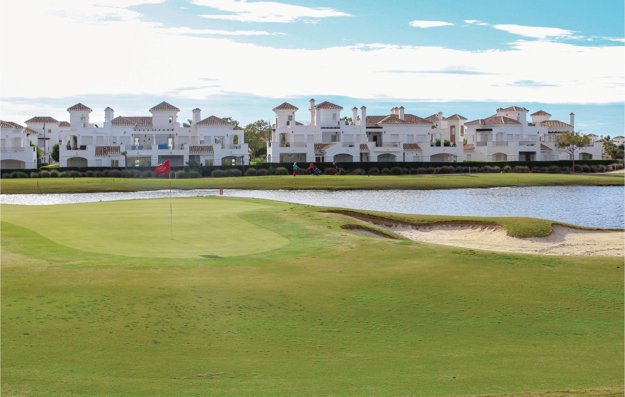 Pragtfuld ferielejlighed i stueplan i La Torre Golf Resort i Torre Pacheco, med to soveværelser, et badeværelser og plads til op til fire personer. I stuen er der endnu en soveplads. Fra den rummelige terrasse er der en fantastisk udsigt over golfbanens sø og fællesområdet med flere pools ligger kun 100 m væk. Lejligheden er udstyret smagfuld med kvalitetsmøbler, ligesom der også er skønne havemøbler på den 104 m stor grund. Der er 19 km til San Javier lufthavnen, der er 21 km til stranden og havet og både restauranter og supermarkeder ligger lige i nærheden. Resortet bliver overvåget 24/7. Torre Pacheco ligger i skønne omgivelser med marker og de karakteristiske vindmøller, her er der alle muligheder for en ferie fuld af afvekslende oplevelser.