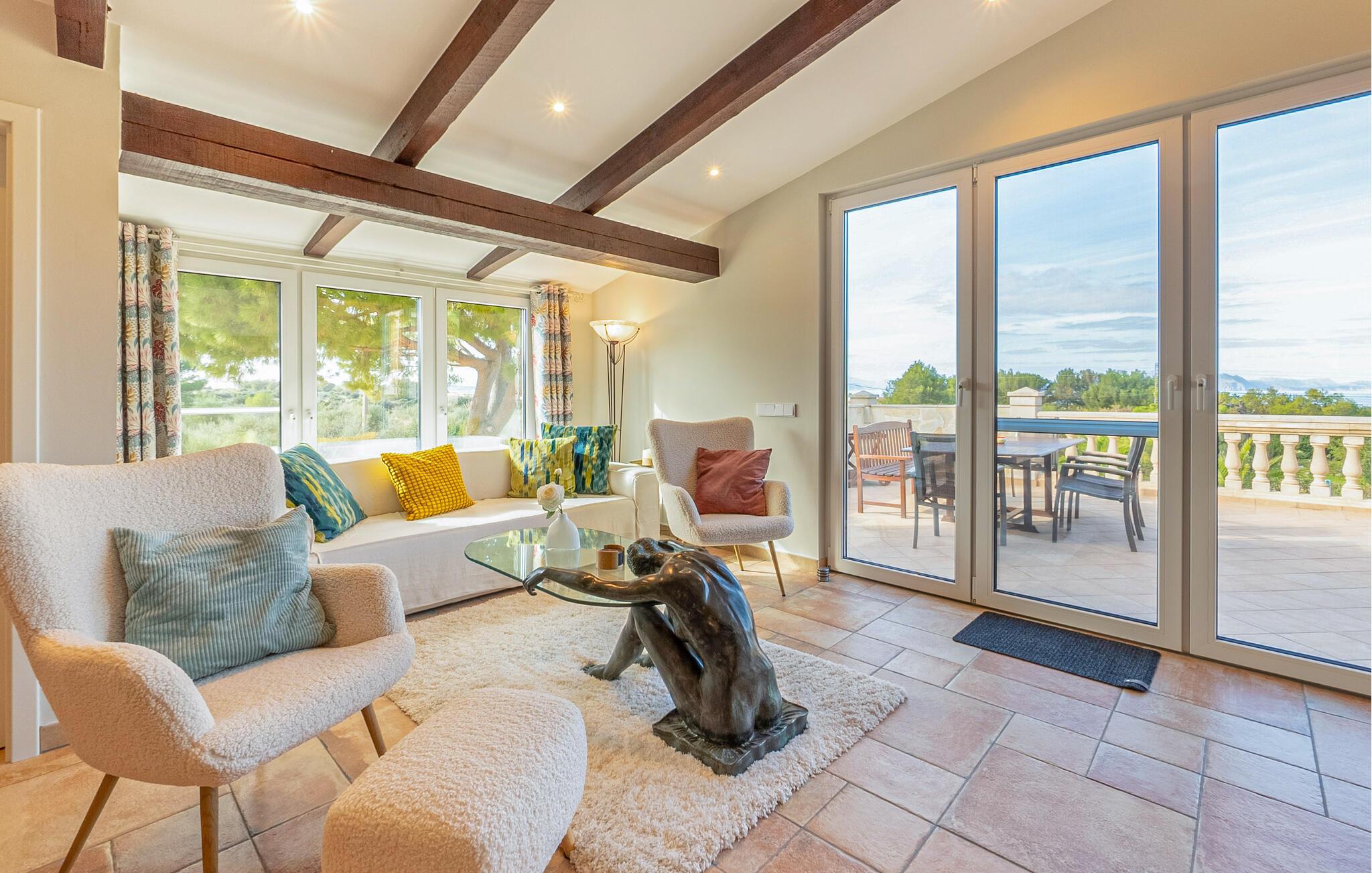 “Lara Colonia” er et charmerende feriehus på Mallorcas østkyst og byder på en betagende udsigt over bjergene og havet. Denne veludstyrede finca har en saltpool, liggestole og en dagseng på en afsondret solterrasse. En overdækket terrasse med udendørs varme tilbyder en perfekt spiseplads med udsigt over bjergene. Den øverste etage har en rummelig solterrasse med stilfulde loungemøbler, en udendørs spiseplads og en fantastisk havudsigt over Alcúdia-bugten, suppleret med en gasgrill af høj kvalitet. Indvendigt er huset fordelt på to etager med tre komfortable dobbeltværelser, tre badeværelser og en lys stue med pejs. Det moderne køkken er udstyret med førsteklasses hårde hvidevarer. Aircondition og varme sikrer komfort hele året rundt og gør "Lara Colonia" til et ideelt tilflugtssted for sol- og naturelskere. Villaen "Lara Colonia" ligger ved foden af Ferrutx-bjergene. Småstensstranden i Ca los Camps ligger kun 2 km væk. En 1 km gåtur tager jer til Colònia de Sant Pere, hvor I finder shopping, en livlig strandpromenade og et beskyttet badeområde. Betlem ligger 3,5 km væk og er udgangspunktet for adskillige smukke vandreture. Der er godt 12 km til maleriske Artà, hvor man kan slentre gennem gaderne eller nyde de mange caféer. Bemærk venligst, at denne ejendom ikke accepterer ungdomsgrupper eller polterabender. En ungdomsgruppe på denne ejendom består af personer på 27 år eller derunder. Book ikke denne ejendom, hvis I er en ungdomsgruppe eller polterabend, da jeres reservation vil blive afvist, når den er booket, hvilket også kan være tilfældet ved ankomst til ejendommen eller under jeres ophold, og I vil ikke modtage en refusion