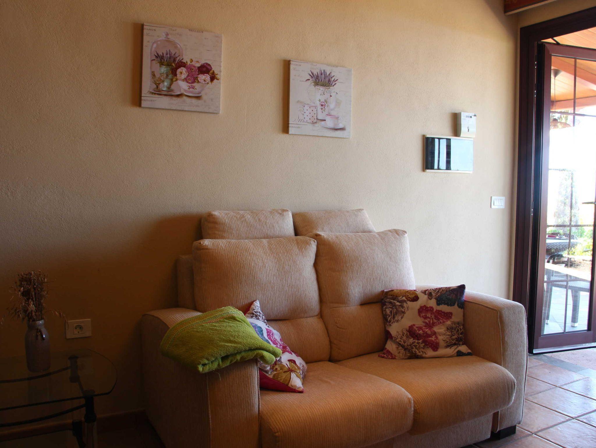 Das Haus ist dezent dekoriert und im spanischen Stil eingerichtet. Eine geflieste Theke trennt den Wohnbereich etwas von der Küche ab und dient gleichzeitig als Essplatz mit zwei Stühlen.