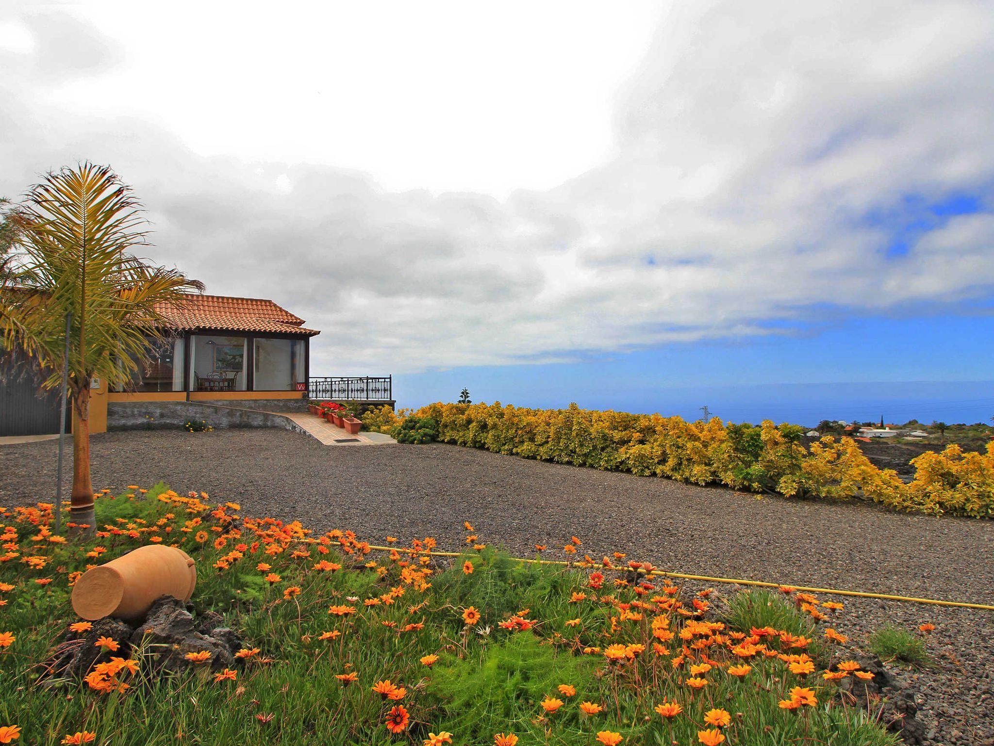 Dem Haus vorgelagert ist eine Art Wintergarten mit ca. 15qm, schön möbliert und das ganze Jahr mit angenehmen Temperaturen. Im Wintergarten steht ein großer Esstisch mit 4 Stühlen sowie ein Sofa. Vom Wintergarten aus kann man den Blick über die Lavalandschaft bis zum Meer schweifen lassen.