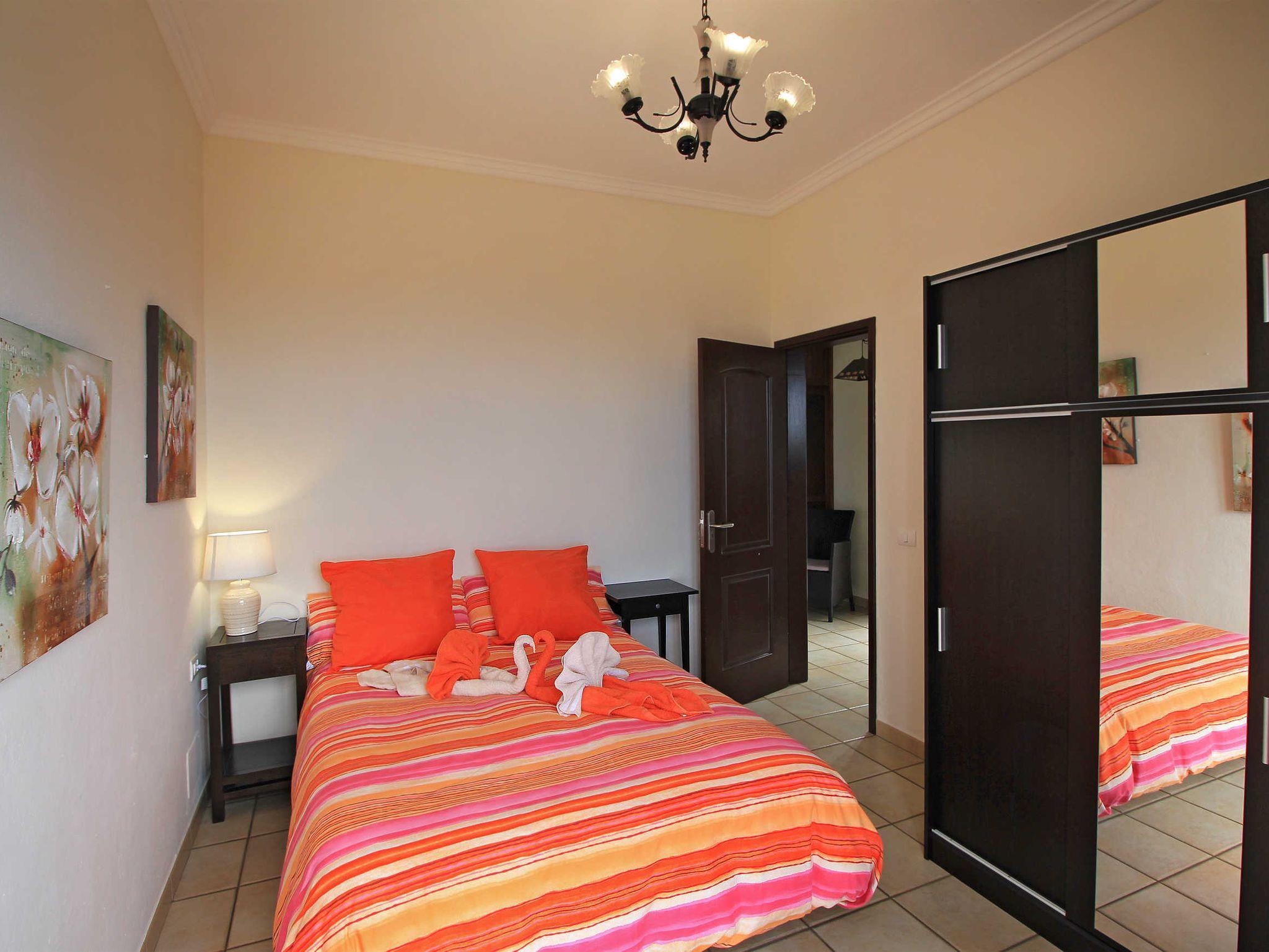 Das Schlafzimmer mit zwei Einzelbetten geht rechts vom Wohn/Essbereich ab. Beide Schlafzimmer sind zum Meer gerichtet und verfügen über einen großen Kleiderschrank. Vom Bett des Hauptschlafzimmers sieht man auf das Meer.