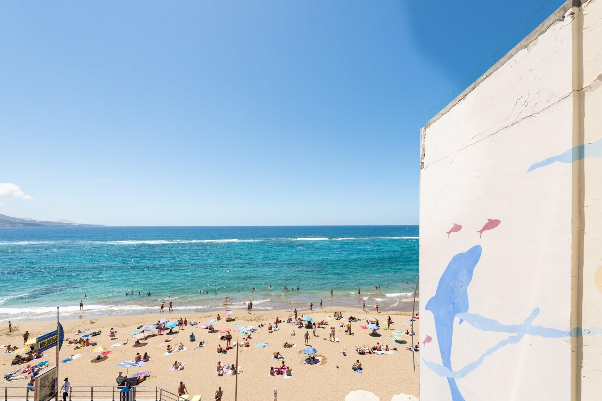 Velkommen til dette dejlige hus ved stranden i Las Palmas de Gran Canaria, ideelt for op til 3 gæster. Med 50 m² komfortabelt indvendigt rum har denne lyse og charmerende indkvartering både udsigt over havet og bjergene og tilbyder fredfyldte omgivelser for din ferie. Kun 5 meter fra det gyldne sand i Playa de Las Canteras og få skridt fra den naturskønne promenade er beliggenheden perfekt for både strandelskere og byens opdagelsesrejsende. Dette fuldt udstyrede hjem byder på et hyggeligt soveværelse, en privat terrasse på 4 m² og et indbydende opholdsområde. Køkkenet indeholder alt det nødvendige: keramisk glas kogeplader, køleskab, mikroovn, fryser, opvaskemaskine, kaffemaskine, brødrister, kedel, juicer og komplet køkkenudstyr. Nyd bekvemmeligheden ved aircondition, Wi-Fi, vaskemaskine, strygejern og hårtørrer. Et Smart TV og radio tilføjer til din hjemmeunderholdning. Ejendommen er beliggende i nærheden af ??fremragende restauranter som "O Sole Mio" (15m), et lokalt Spar-supermarked (55m) og Santa Catalina transportknudepunkt (500m), hvilket giver nem adgang til resten af ??øen. Populære destinationer som Roque Nublo, Aqualand Maspalomas og Las Palmas Golfbane er alle inden for kort køreafstand. Uanset om du er her for at slappe af, udforske naturen eller nyde bylivet, er dette hjem den ideelle base.