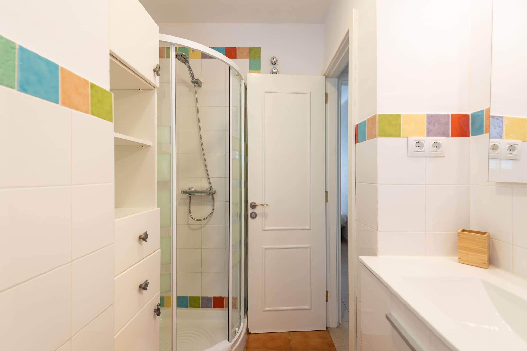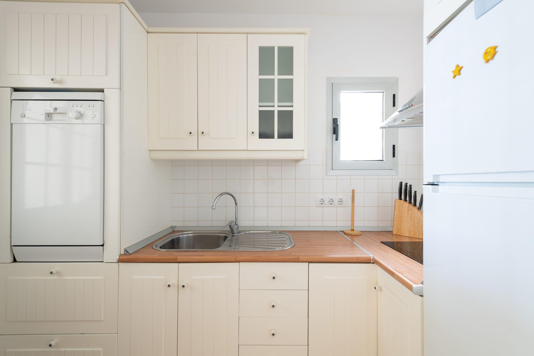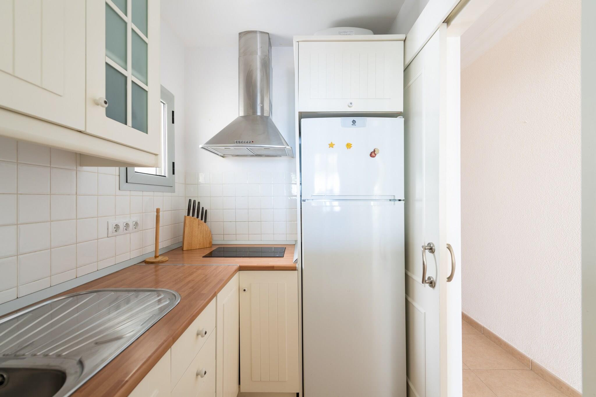 På 4. etage: (Køkken(elkedel, brødrister, kaffemaskine, mikrobølgeovn, opvaskemaskine , køleskab, fryser, Saftpresser, ), stue / spisestue(enkeltsovesofa, Fjernsyn, spisebord), soveværelse(enkeltseng, enkeltseng), badeværelse(bruser)) , radio, vaskemaskine, balkon, terrasse, solstole, strygebræt, strygejern, føntørrer, Wine glasses