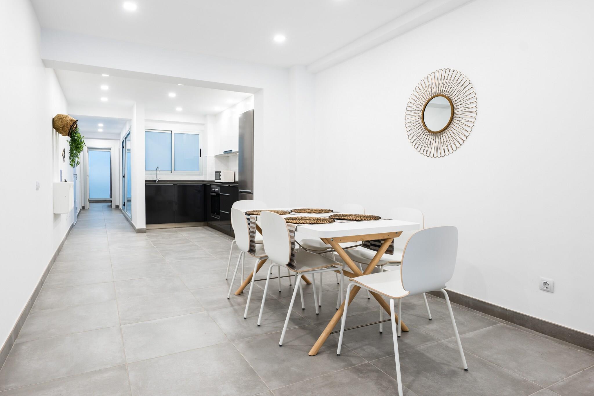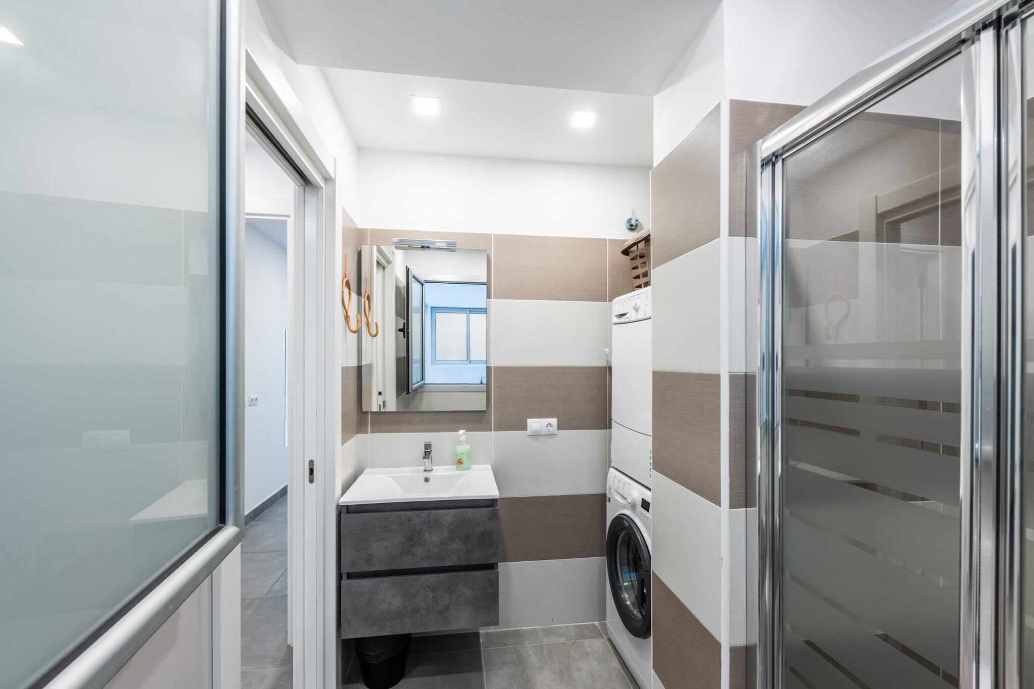 Dette stilfulde hus med 3 soveværelser i Las Palmas de Gran Canaria tilbyder moderne komfort kun få skridt fra Playa de Las Canteras. Med 97 m² smagfuldt møbleret boligareal kan det komfortabelt rumme op til 5 gæster, hvilket gør det ideelt for familier eller små grupper. Beliggende i et pulserende, familievenligt område, er boligen kun 140 meter fra den gyldne sandstrand og i gåafstand fra supermarkeder, restauranter og Santa Catalina Park. Nyd nem adgang til offentlig transport, sundhedstjenester og fritidsaktiviteter, herunder golf, vandreture langs kysten og vandlande. Indenfor byder den lyse og rummelige bolig på et veludstyret køkken i åbent plan med moderne hårde hvidevarer såsom induktionskogeplade, opvaskemaskine og kaffemaskine. Huset inkluderer også tre tv'er, højhastigheds-Wi-Fi, en vaskemaskine, tørretumbler, myggenet i soveværelserne og en privat balkon til at slappe af i havbrisen. Uanset om du planlægger en afslappet strandferie eller udforsker øen, er dette centralt beliggende oase en perfekt base for dit ophold på Gran Canaria.