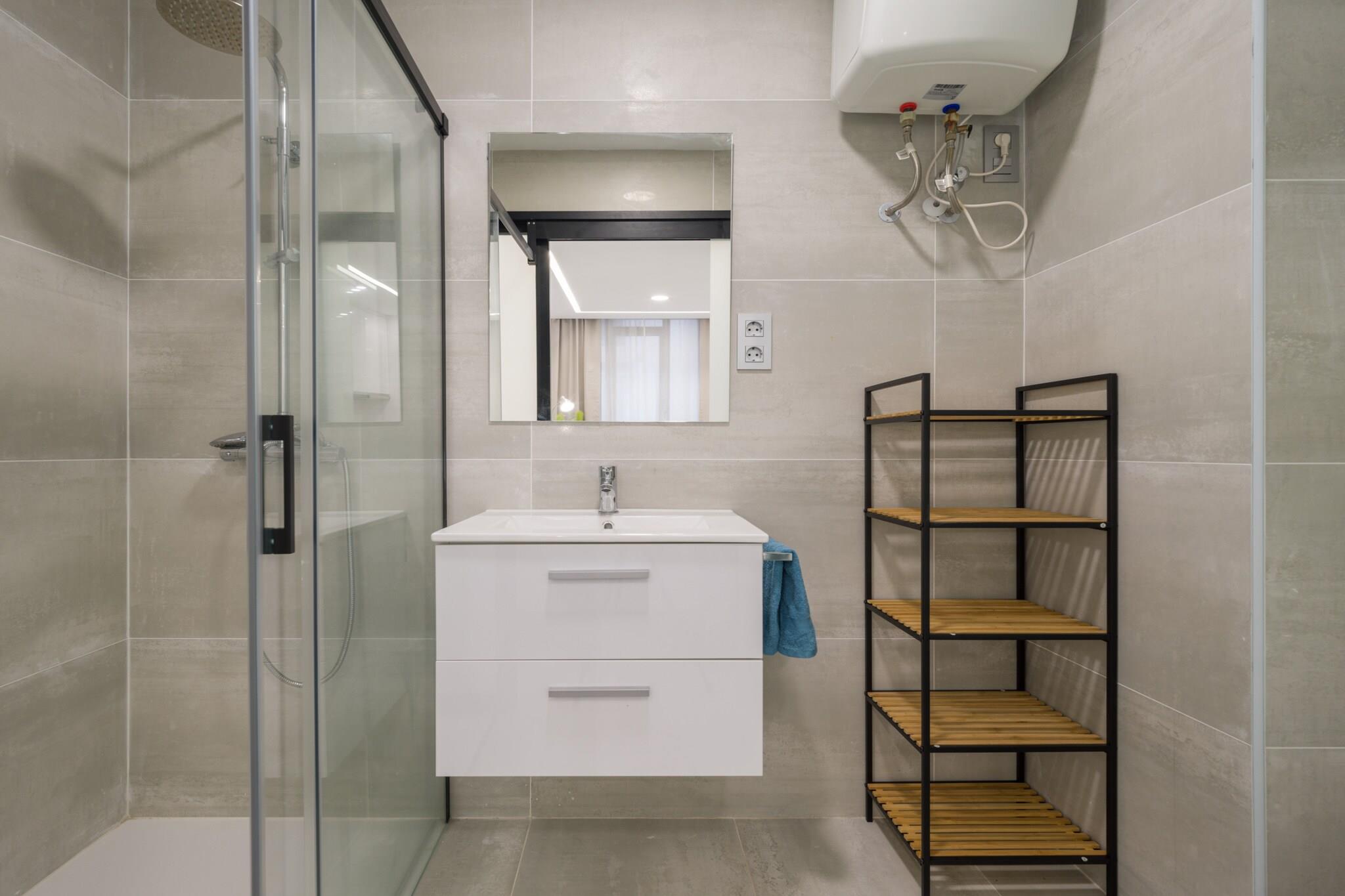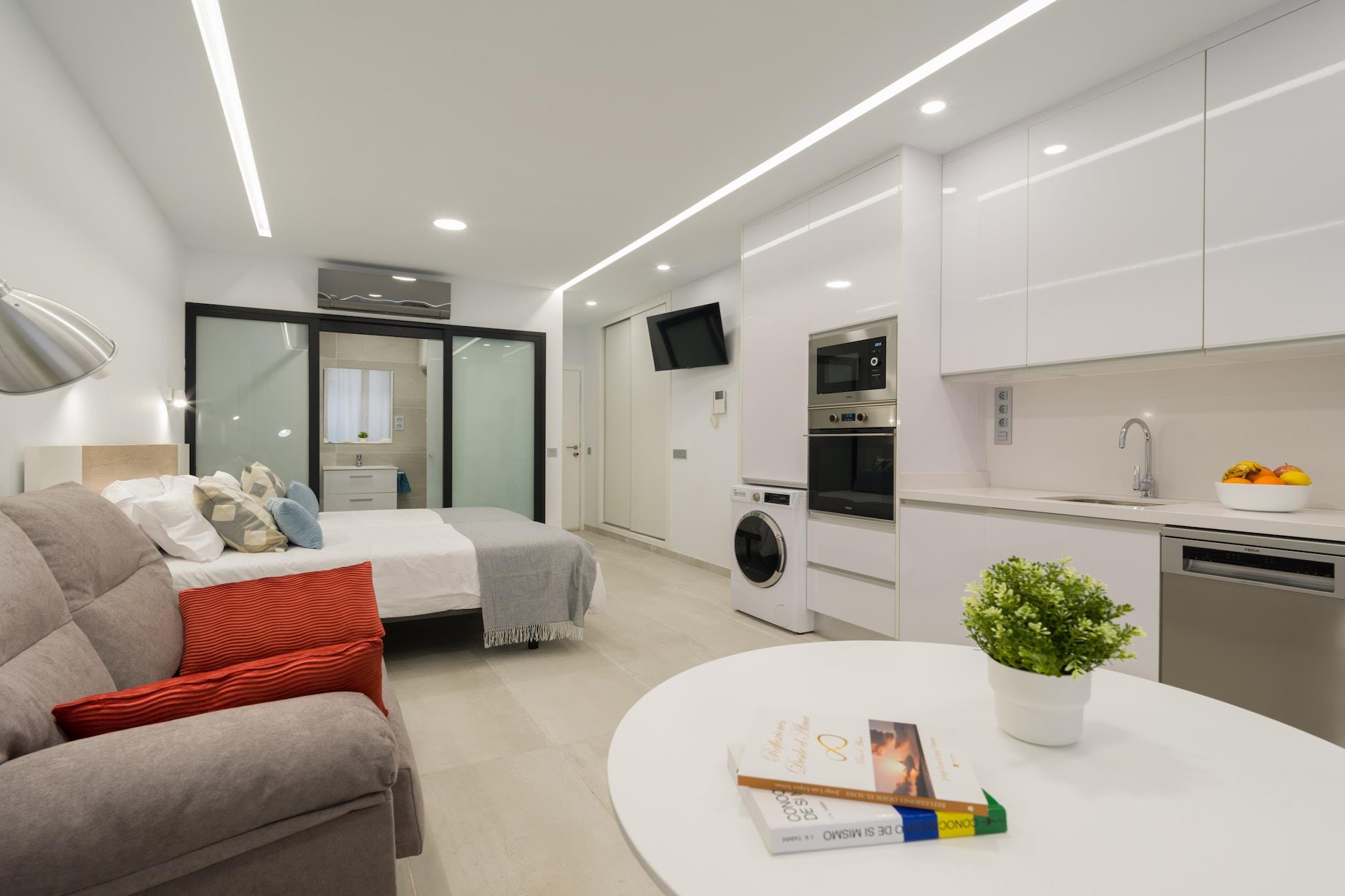Dette stilfulde og moderne studie på 35 m² er det perfekte feriested ved havet for to gæster i Las Palmas de Gran Canaria. Kun 20 meter fra det gyldne sand i Playa de Las Canteras tilbyder lejligheden en fredelig flugt med øjeblikkelig adgang til den pulserende strandpromenade, charmerende caféer og lokale butikker. Uanset om du rejser efter afslapning eller eventyr, placerer dette hyggelige studie dig i hjertet af det hele. Indkvarteringen er fuldt udstyret til et behageligt ophold og inkluderer en dobbeltseng, et moderne badeværelse og et selvstændigt køkken med keramisk kogeplade, ovn, opvaskemaskine og kaffemaskine. Nyd tankevækkende ekstraudstyr som en vaskemaskine, tørretumbler, strygejern, hårtørrer, Wi-Fi, aircondition og et tv - alt hvad du behøver for at føle dig hjemme ved havet. Beliggende i et livligt, men charmerende område, er studiet bekvemt placeret i nærheden af ??restauranter som El Basal og Casa Carmelo, busstationen Intercambiador de Santa Catalina og de naturlige vidundere i El Confital. Udforsk nærliggende byer som Teror og Agaete, eller planlæg en dagstur til Maspalomas' forlystelsesparker og golfbaner. Med stranden lige ved dit dørtrin og byens højdepunkter inden for rækkevidde, er dette en ideel base for at opdage det bedste af Gran Canaria.