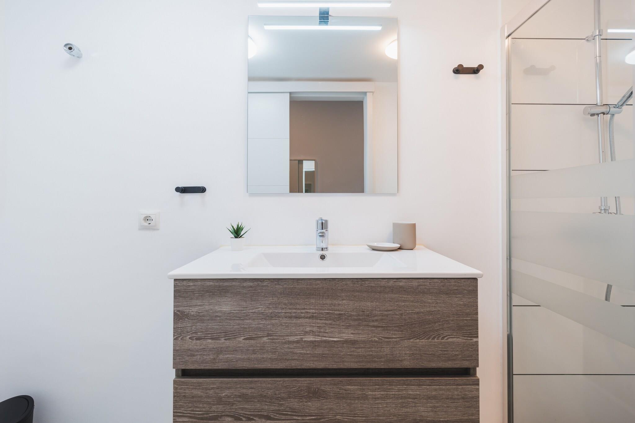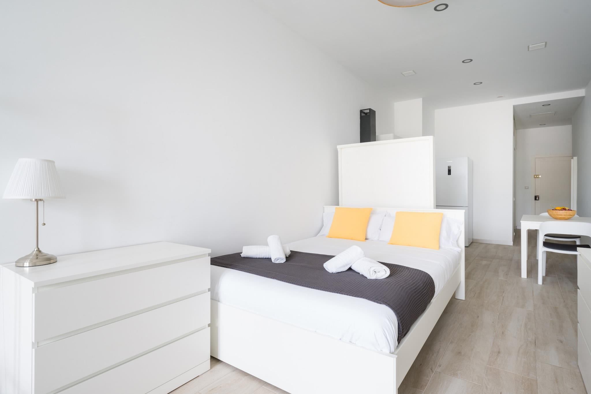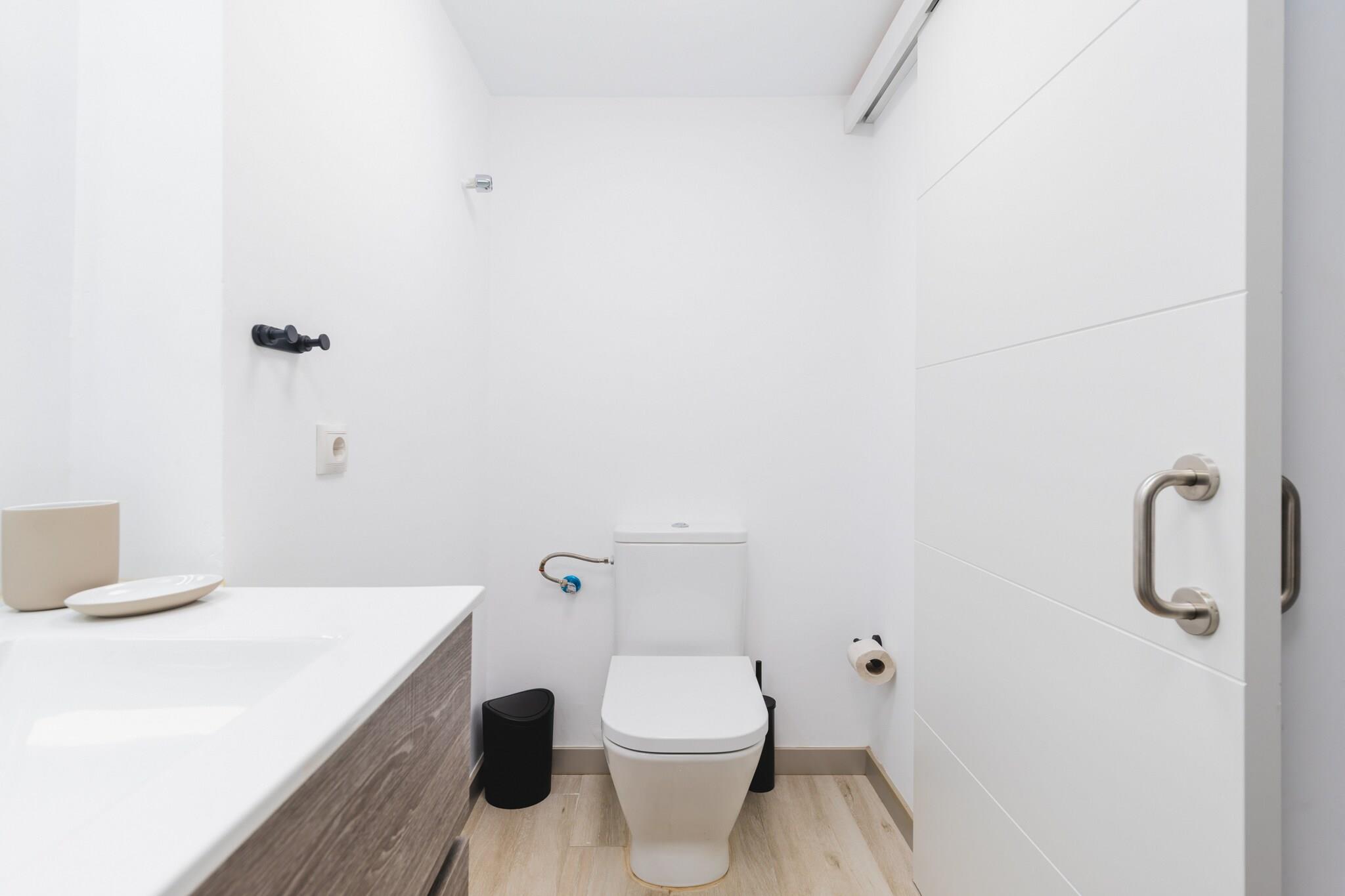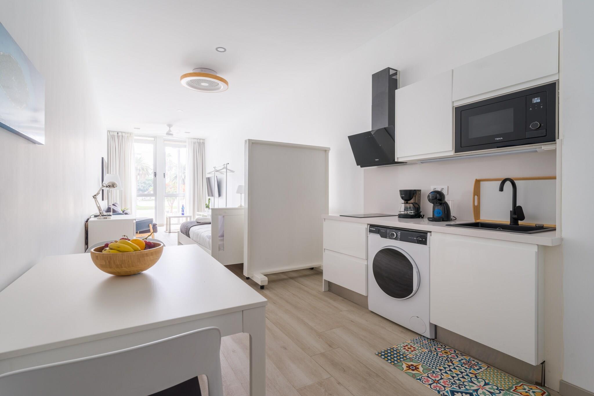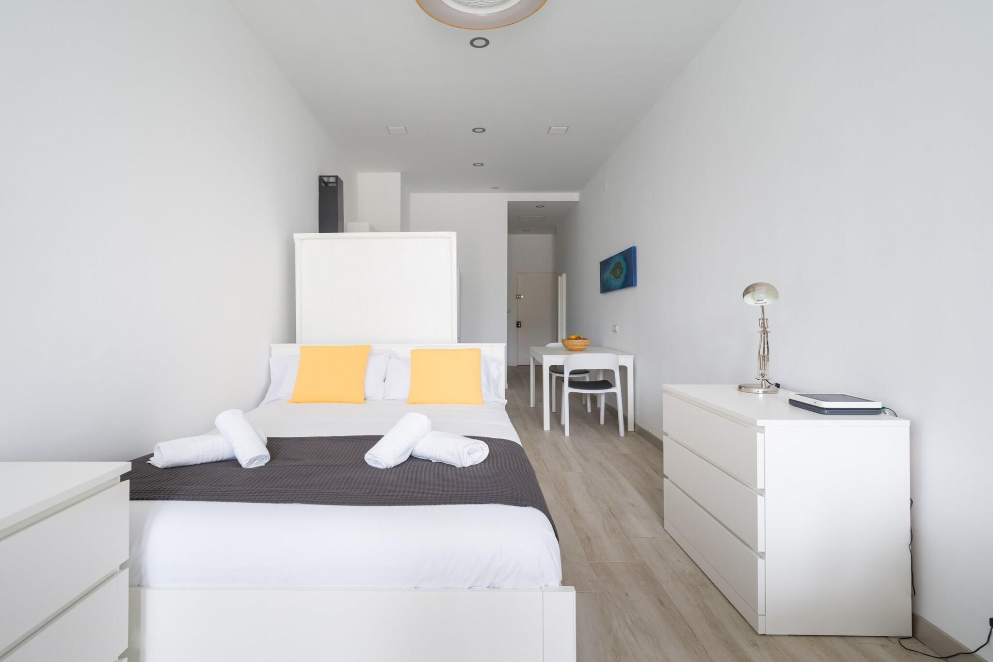 Oplev denne charmerende og moderne 1-værelses lejlighed beliggende i det pulserende hjerte af Las Palmas de Gran Canaria, kun få skridt fra Santa Catalina Park og Playa de Las Canteras gyldne sand. Perfekt til par eller solorejsende, denne hyggelige 35 m² store bolig tilbyder et komfortabelt tilflugtssted tæt på alt, hvad byen har at byde på. Indvendigt byder lejligheden på et lyst og smagfuldt indrettet opholdsrum med et veludstyret selvstændigt køkken med køleskab, mikroovn, ovn, fryser, kaffemaskine, elkedel, juicer, brødrister og alt det køkkenudstyr, du har brug for til et bekvemt ophold. Du vil også finde en vaskemaskine, strygejern, hårtørrer og gratis Wi-Fi for at gøre dit ophold så behageligt som muligt. For underholdning kan du nyde et fladskærms-tv og radio. Træd udenfor, og du er omgivet af fremragende spisemuligheder såsom Restaurante Casa Fataga og Little Italy, samt lokale caféer og butikker. Busstationen Intercambiador Santa Catalina ligger kun 100 meter væk, hvilket giver dig nem adgang til at udforske byen og videre. Inden for en kort gåtur kan du nå Las Alcaravaneras-stranden, Hiperdino-supermarkedet og kulturelle hotspots. Uanset om du er her for at slappe af ved havet, udforske byens charme eller besøge nærliggende golfbaner, naturreservater eller forlystelsesparker, er denne lejlighed den ideelle base. Book dit ophold og nyd det bedste af urban livsstil lige ved kysten!