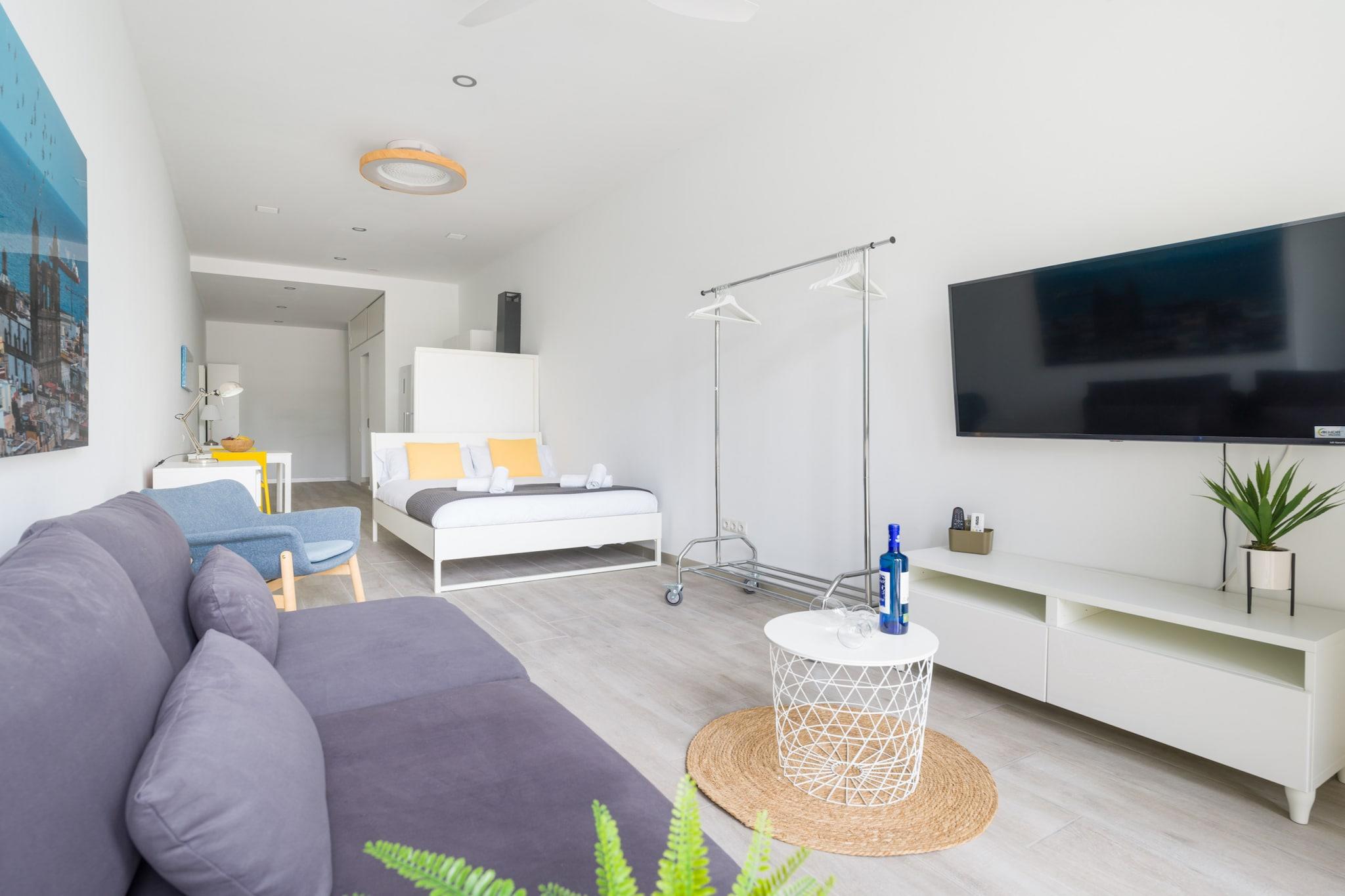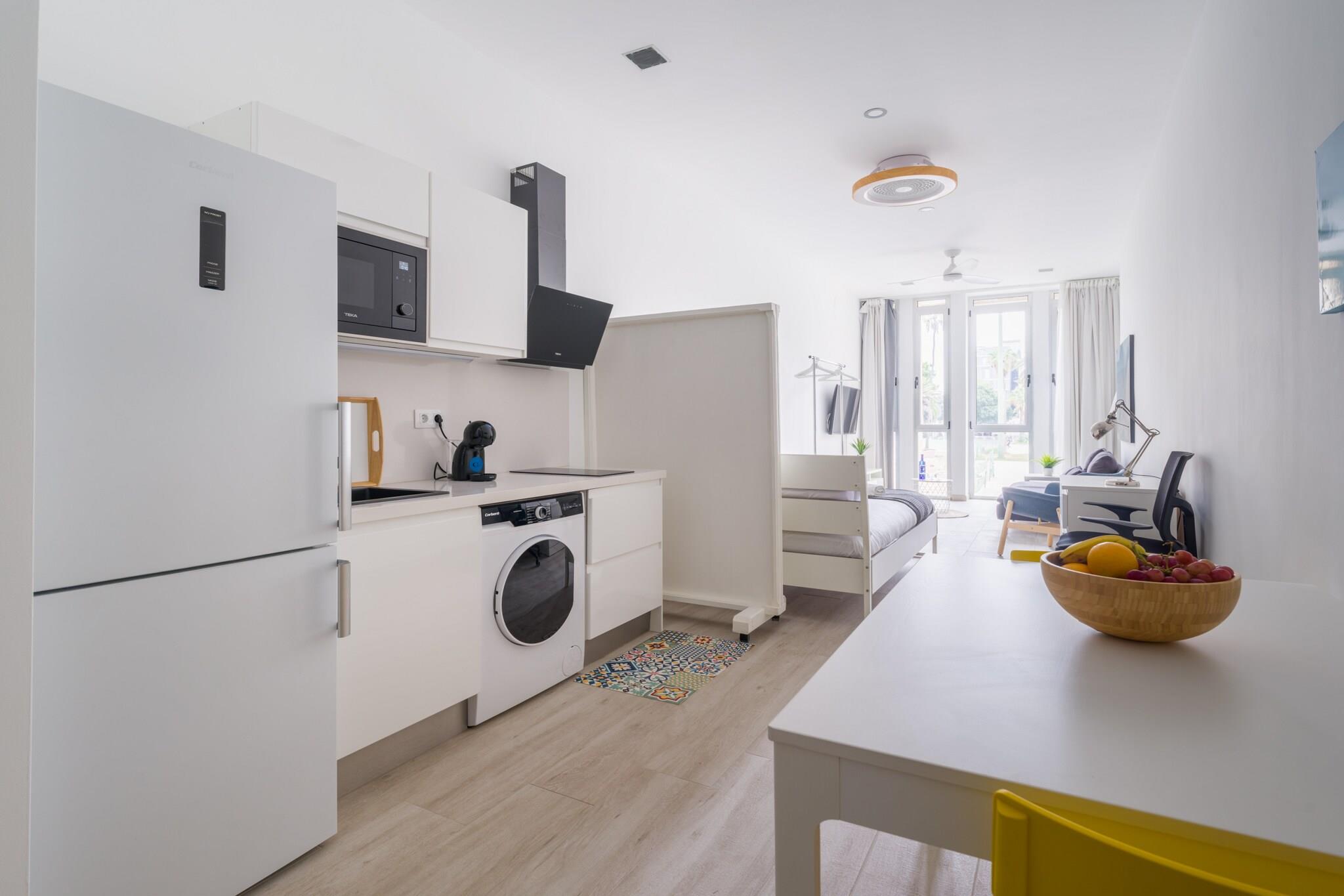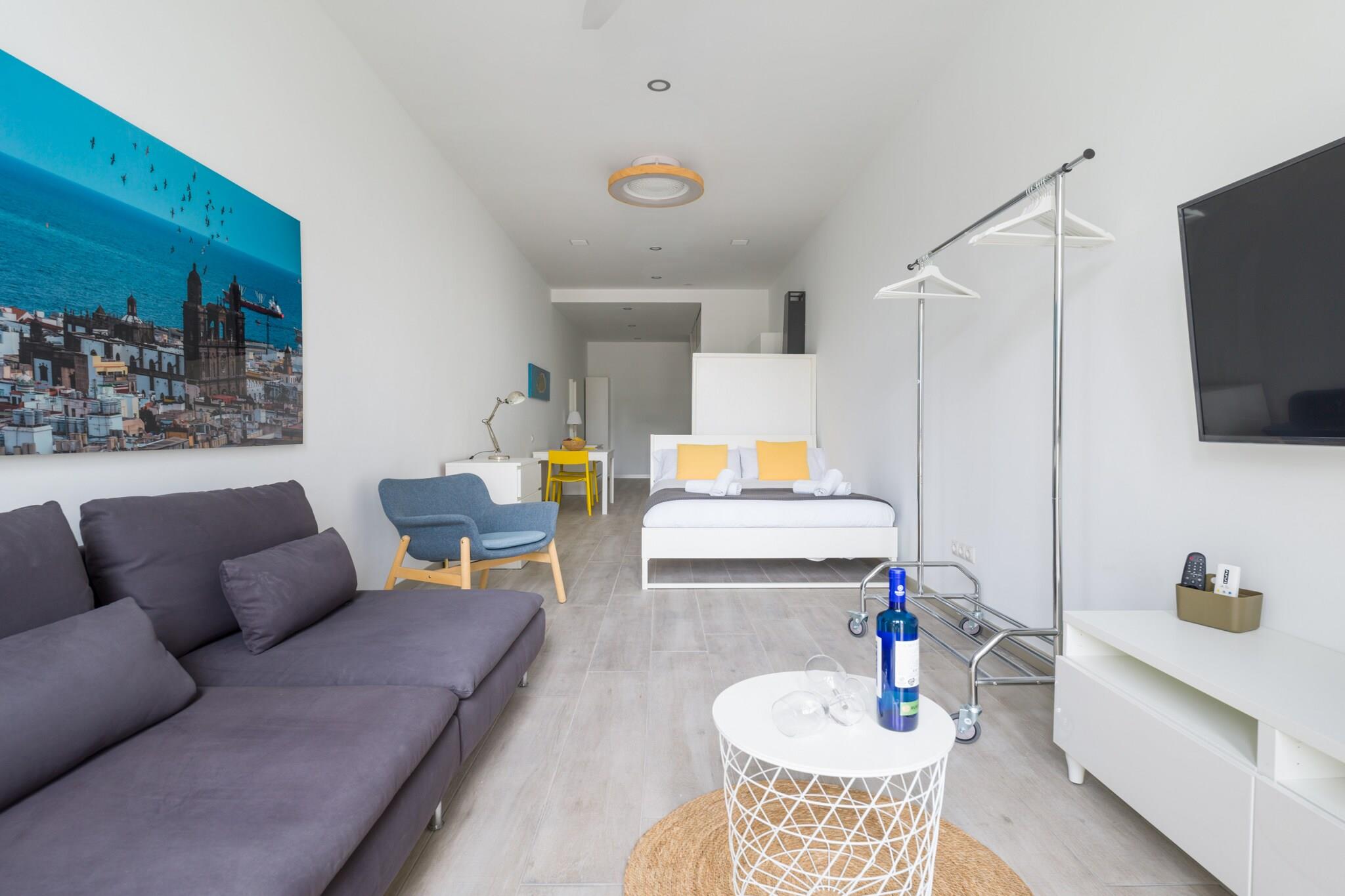 Nyd et charmerende og moderne ophold i hjertet af Las Palmas de Gran Canaria. Dette 35 m² store 1-værelses hjem er perfekt til 2 gæster og er ideelt beliggende i et livligt, godt forbundet område kun få skridt fra stranden og byens attraktioner. Beliggende nær den smukke Parque Santa Catalina og kun 500 m fra den berømte Playa de Las Canteras, tilbyder denne hyggelige lejlighed bekvemmelighed og komfort i lige grad. Indenfor finder du et omhyggeligt udstyret køkken med keramisk kogeplade, køleskab, mikroovn, ovn, fryser, opvaskemaskine, kaffemaskine, kedel, brødrister, juicer og komplet køkkenudstyr - ideel til at tilberede måltider derhjemme. Indkvarteringen inkluderer Wi-Fi, vaskemaskine, strygejern, hårtørrer og 1 tv med radio til afslapning efter en dag med sightseeing. Gå en tur til caféer, parker, supermarkeder og restauranter som Casa Fataga og Little Italy - alt sammen inden for 5 minutters gang. Store transportforbindelser er i nærheden, med busstationen Santa Catalina kun 100 m væk. Du er også inden for rækkevidde af Las Alcaravaneras-stranden (900 m), Las Palmeras-golfbanen (3 km) og de bedste naturlige attraktioner såsom Caldera de Bandama og Roque Nublo. Uanset om du er her for fritid eller forretning, er denne centralt beliggende lejlighed en fremragende base for at udforske byen og øen. Oplev den pulserende energi i Las Palmas med komforten ved et fredeligt, privat tilflugtssted.