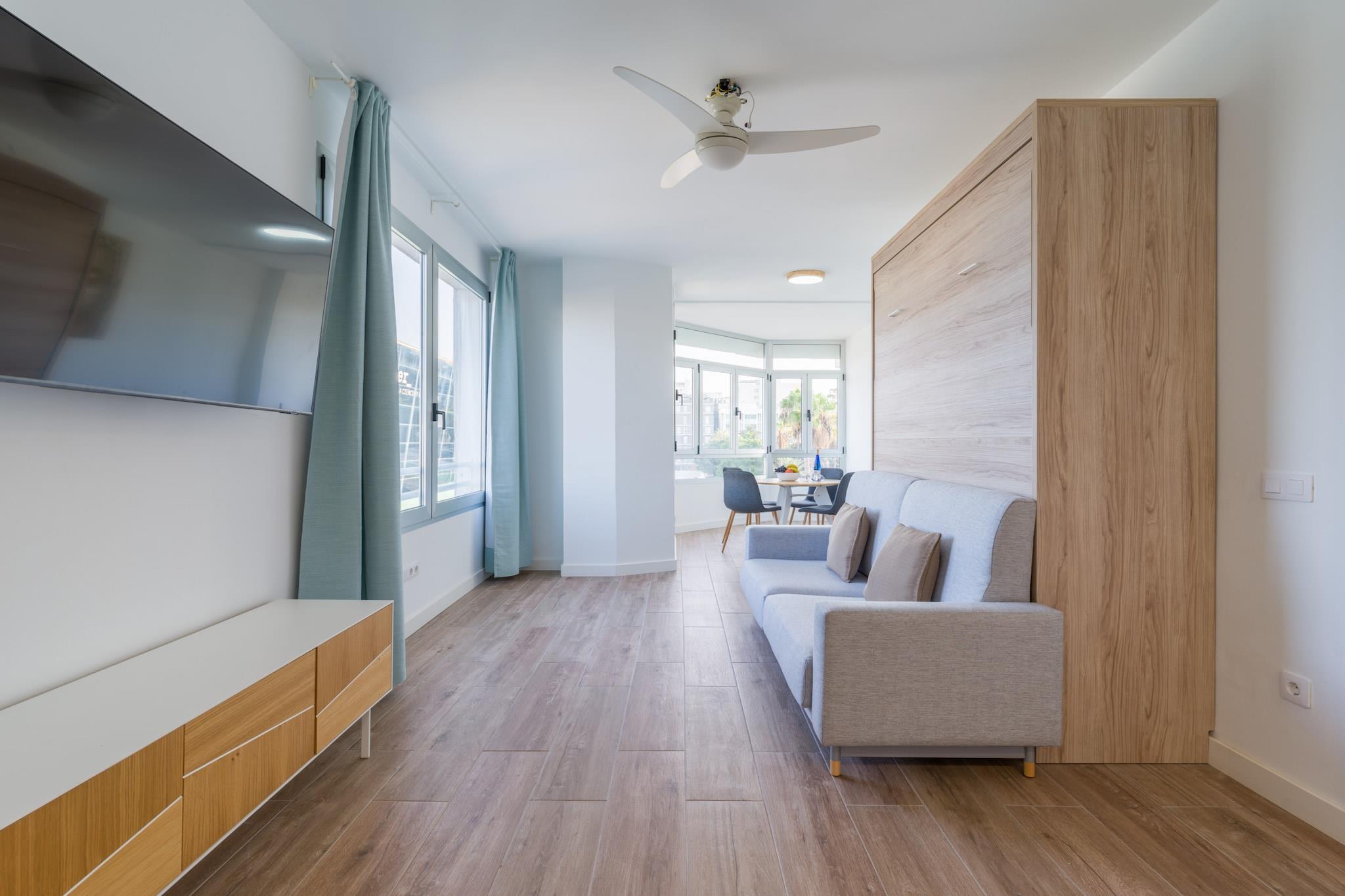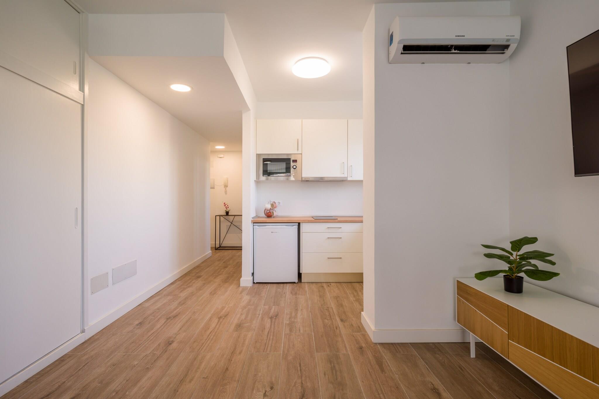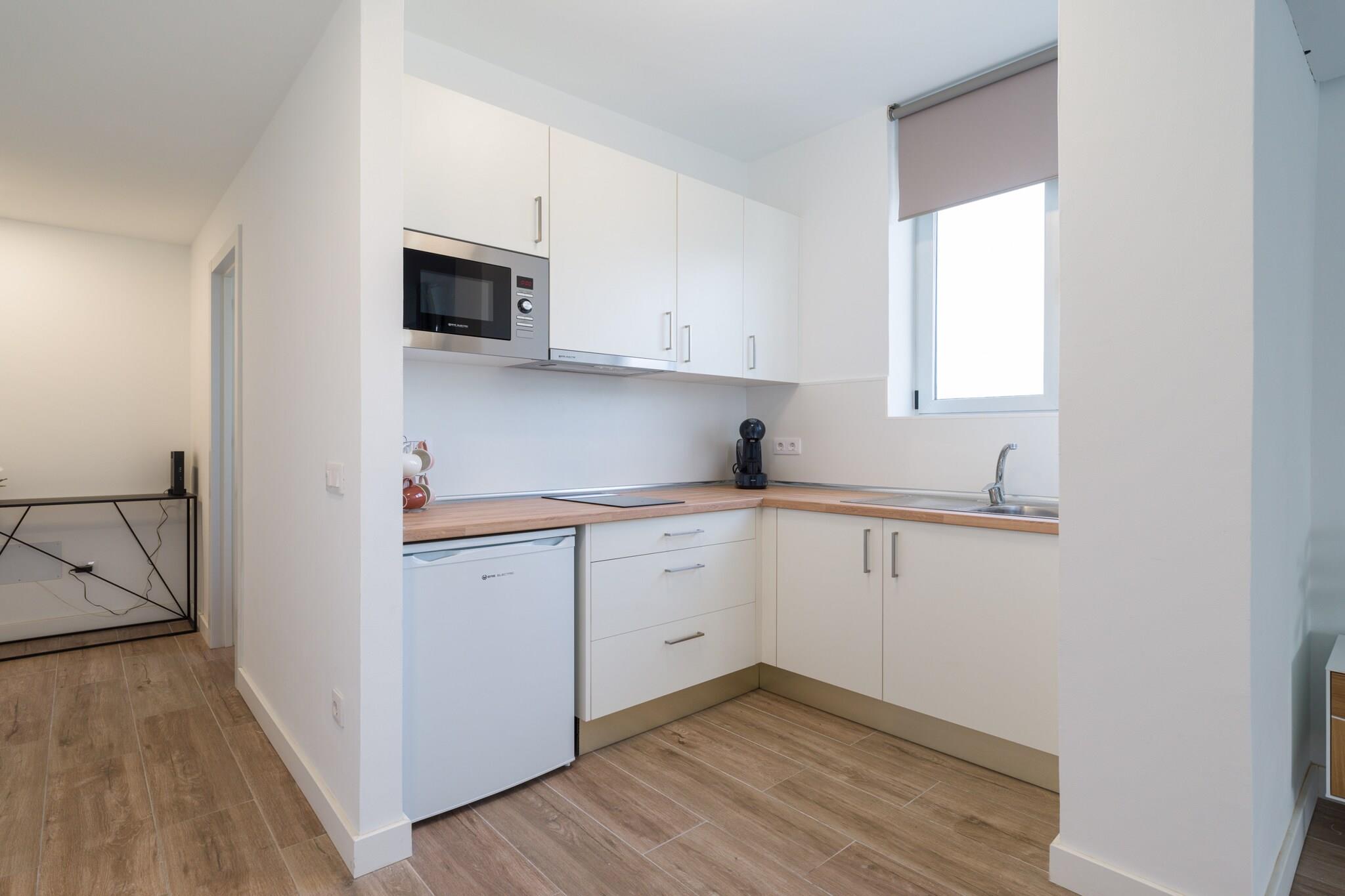 Beliggende i det pulserende hjerte af Las Palmas de Gran Canaria, tilbyder denne stilfulde 1-værelses lejlighed en perfekt blanding af urban bekvemmelighed og kystcharme. Det 35 m² store rum er designet til 2 gæster og er moderne, lyst og omhyggeligt udstyret til et behageligt ophold kun 500 meter fra Playa de Las Canteras gyldne sand. Omgivet af restauranter som Casa Fataga og Little Italy, og få skridt fra Santa Catalina-busudvekslingen, placerer det dig inden for rækkevidde af alt fra strande og butikker til dagsture ind i øens indre. Lejlighedens interiør har et rent, moderne design med smart udnyttelse af pladsen. Det fuldt udstyrede køkken inkluderer en keramisk kogeplade, ovn, mikroovn, køleskab, fryser, kaffemaskine, brødrister, juicer og komplet køkkenudstyr - hvilket gør det ideelt til at tilberede alt fra en morgenespresso til et stille aftenmåltid. Andre bekvemmeligheder inkluderer Wi-Fi, et tv, vaskemaskine, strygejern og hårtørrer, der sikrer, at du vil føle dig hjemme, uanset om du er her for en hurtig storbyferie eller en længere ferie på Gran Canaria. Dens beliggenhed er en af ??de bedste på øen. Herfra kan du gå til Las Alcaravaneras-stranden eller nyde udsigten over lystbådehavnen, udforske historiske steder i Arucas og Teror eller tage en kort tur til den vulkanske skønhed Caldera de Bandama. For golfelskere ligger Las Palmeras Golf kun 3 km væk. Uanset om du er i byen for at arbejde, lege eller slappe af ved kysten, leverer denne charmerende og moderne lejlighed komfort og forbindelse i lige grad.