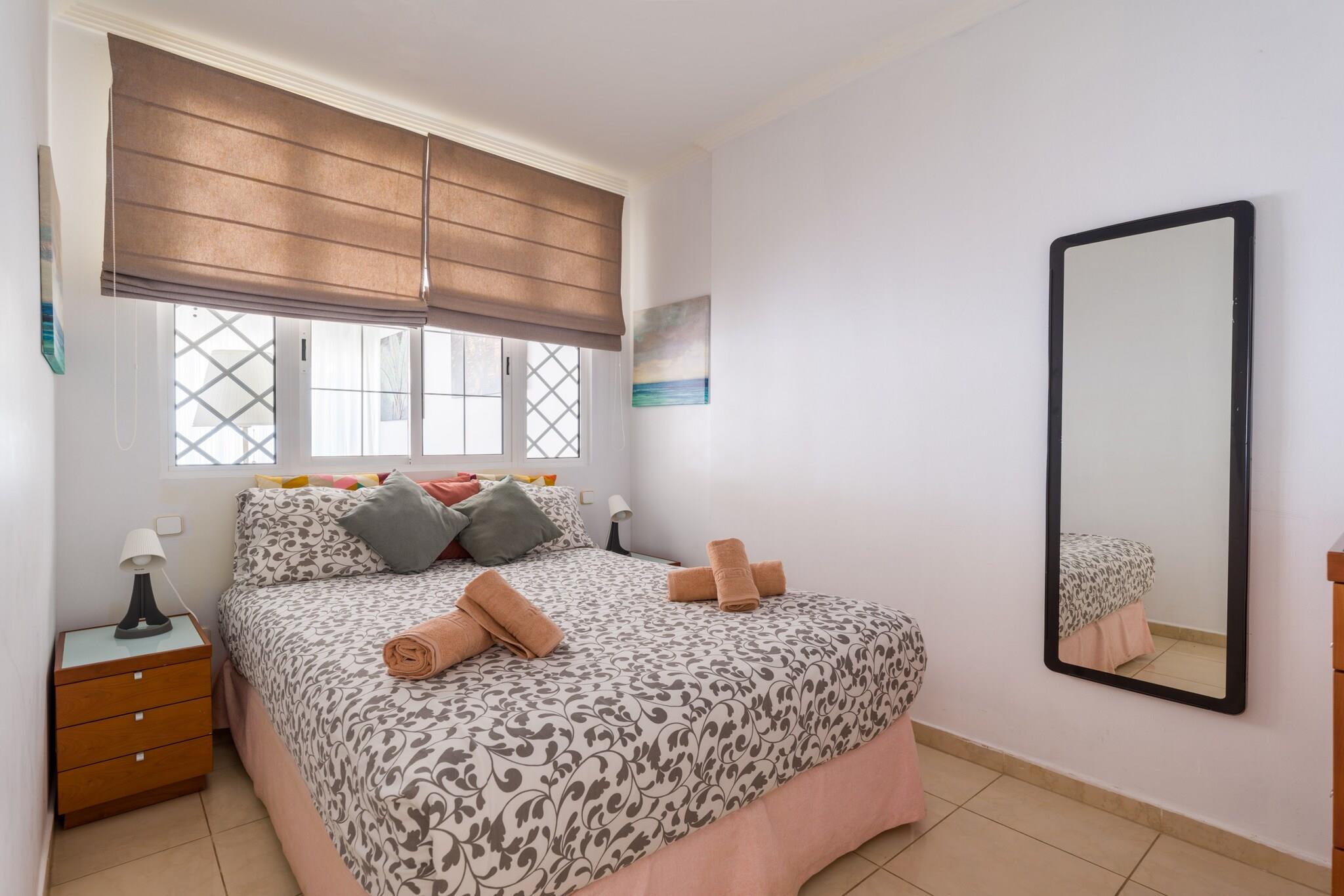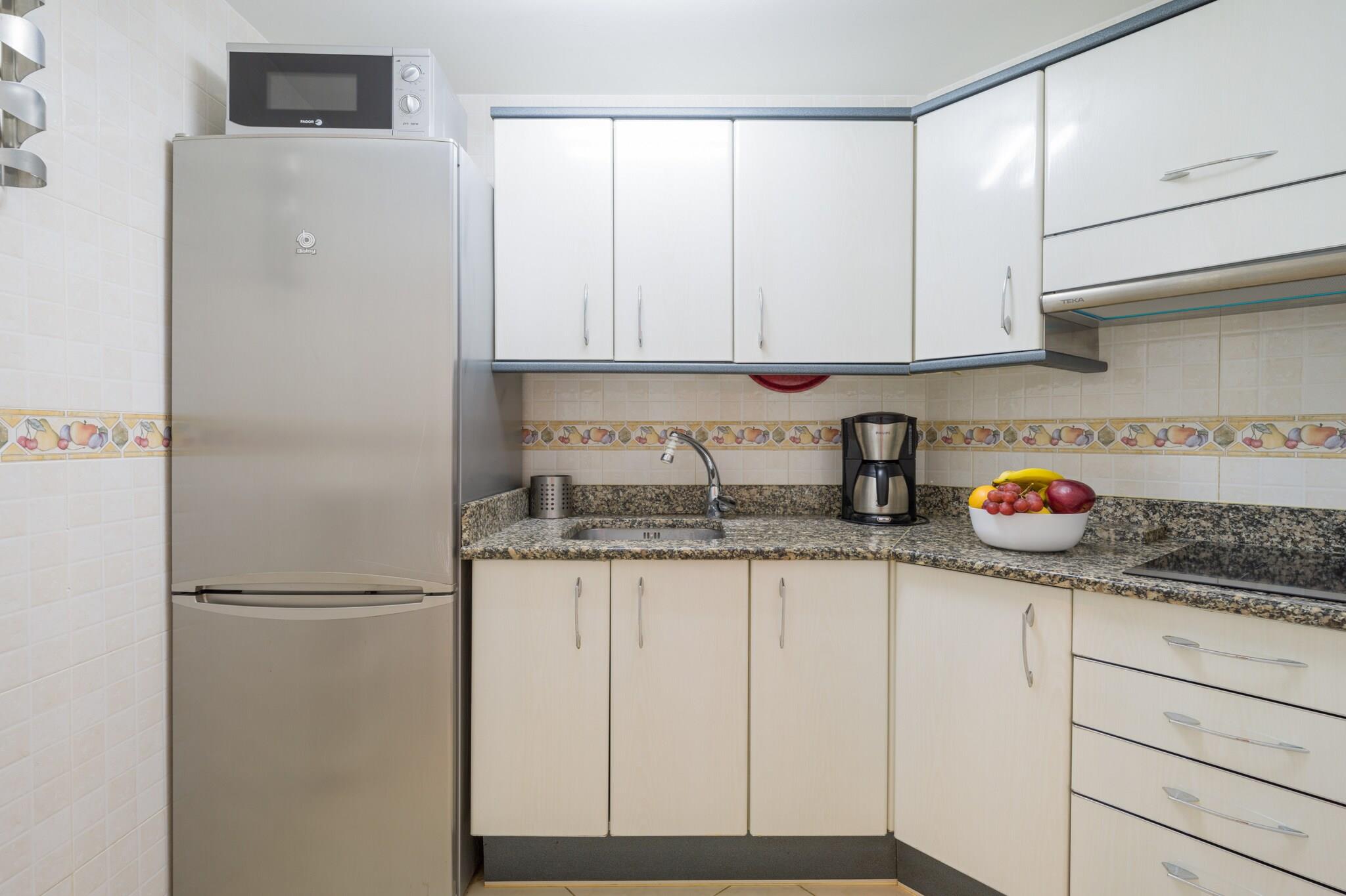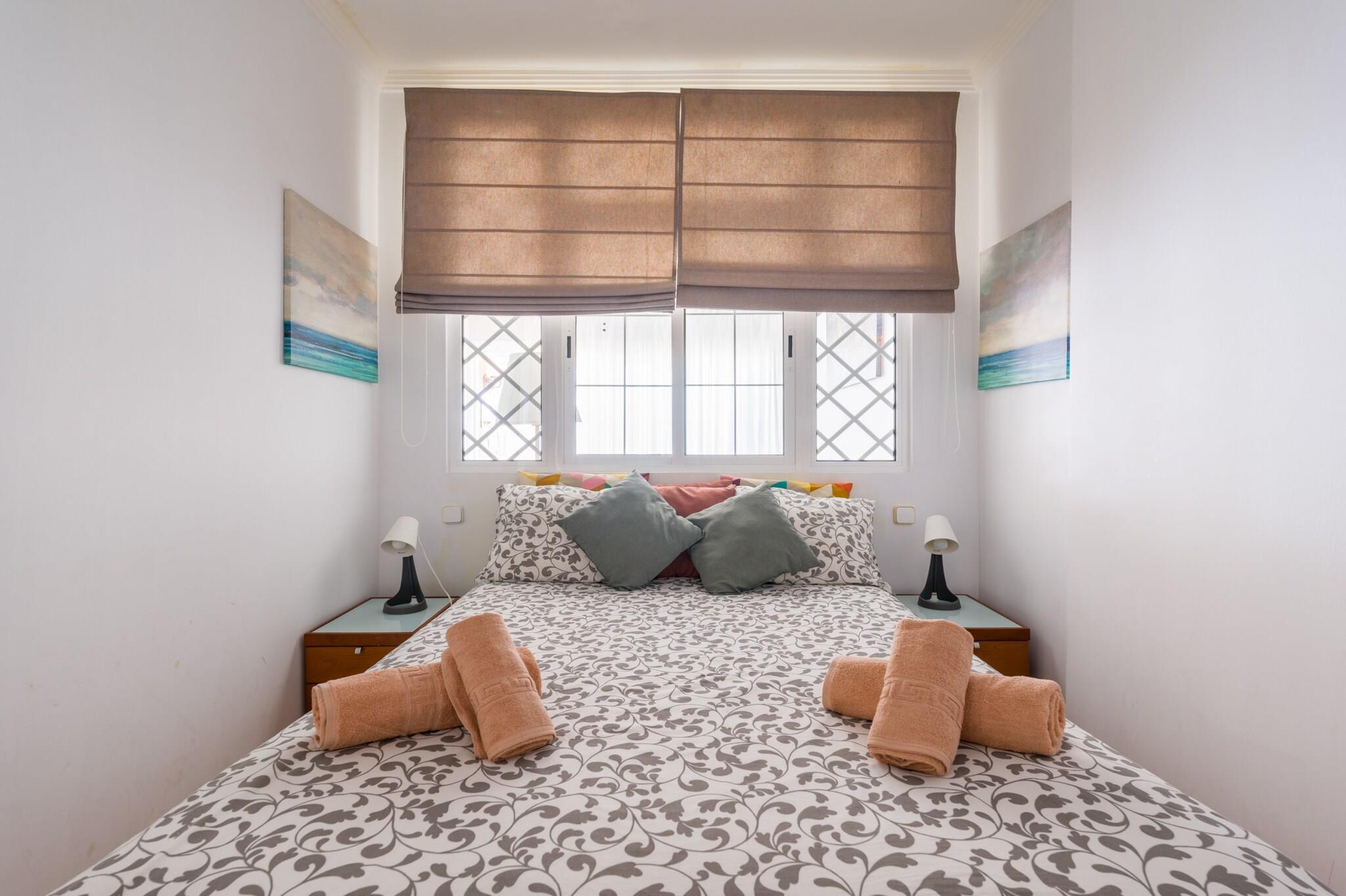 Træd ind i kystluksus med dette elegante 1-værelses tilflugtssted, ideelt beliggende lige ved det gyldne sand ved Playa de Las Canteras i Las Palmas de Gran Canaria. Dette 50 m² store hus ved stranden er et perfekt tilflugtssted for to, og tilbyder en unik blanding af komfort, stil og fantastiske naturlige omgivelser, herunder både bjerg- og havudsigt. Vågn op til den beroligende lyd fra bølgerne og nyd din morgenkaffe på den private 9 m² store terrasse kun få skridt fra havet. Ejendommen er gennemtænkt designet og fuldt udstyret og byder på et lyst og hyggeligt interiør med kvalitetsmøbler. Det uafhængige køkken leveres komplet med alle moderne bekvemmeligheder - glaskeramisk kogeplader, køleskab, mikroovn, kaffemaskine, brødrister og mere - ideelt til at tilberede dine yndlingsmåltider. Hold forbindelsen med højhastigheds-Wi-Fi, slap af med underholdning på fladskærms-tv'et, og slap af efter strandture med et varmt brusebad og blød belysning. Beliggende i en familievenlig zone med direkte adgang til stranden tilbyder beliggenheden alt, hvad du har brug for i gåafstand - fra lokale supermarkeder og autentiske restauranter til naturskønne parker og bybusforbindelser. Uanset om du planlægger en romantisk flugt eller et fredeligt arbejde fra paradis, tilbyder dette luksuriøse gemmested ved havet en enestående Gran Canaria-oplevelse.