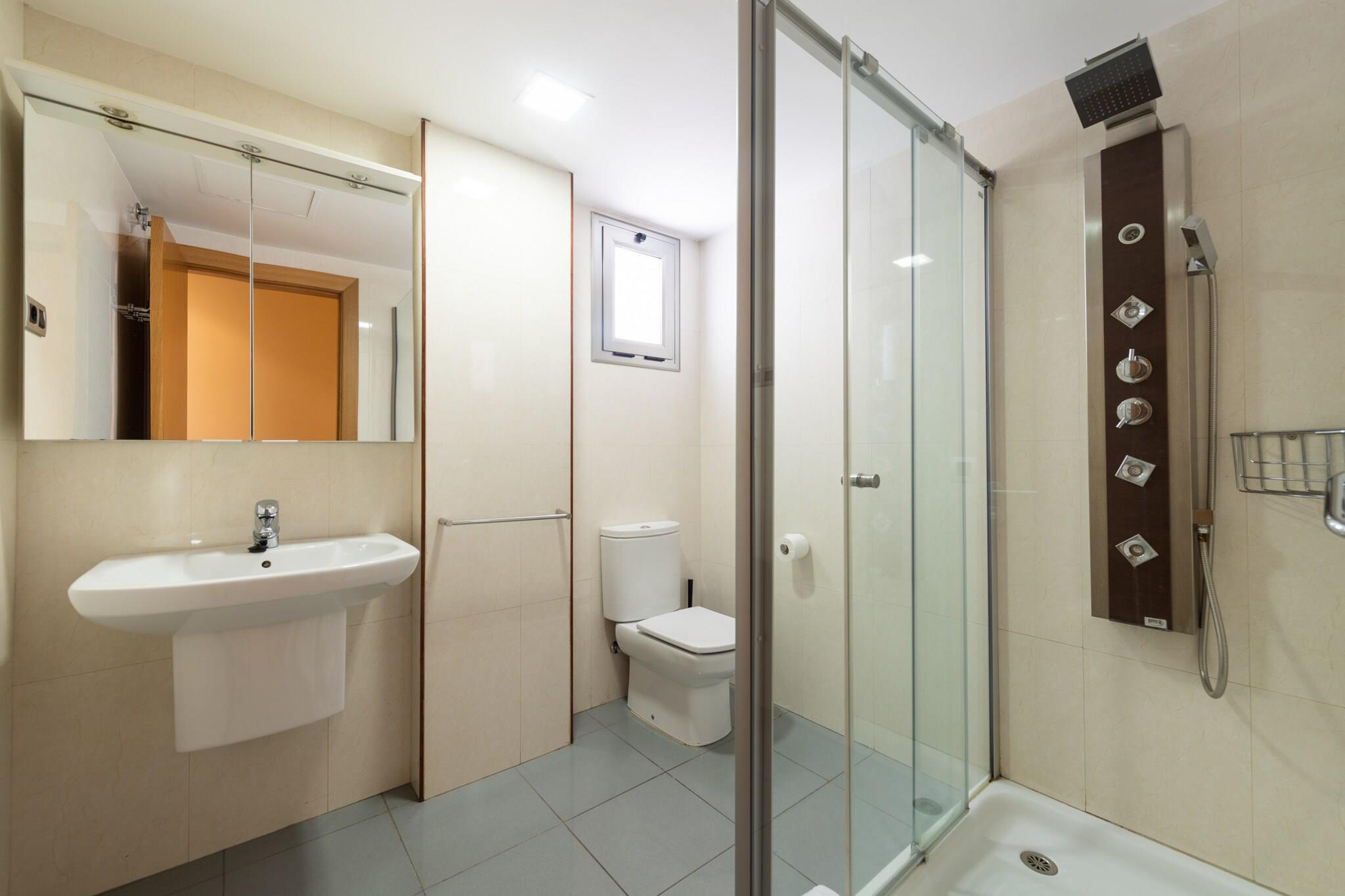 På 6. etage: (åbent køkken(elkedel, brødrister, kaffemaskine, ovn, mikrobølgeovn, opvaskemaskine , køle-fryseskab, ), stue / spisestue(dobbeltsovesofa, Fjernsyn(Smart-TV), spisebord, sofahjørne, radio), soveværelse(enkeltseng), soveværelse(dobbeltseng), badeværelse(bruser), badeværelse(bruser)) , Internetadgang, Havemøbler, Fjernsyn, vaskemaskine, balkon, terrasse, strygebræt, strygejern, føntørrer, , Wine glasses