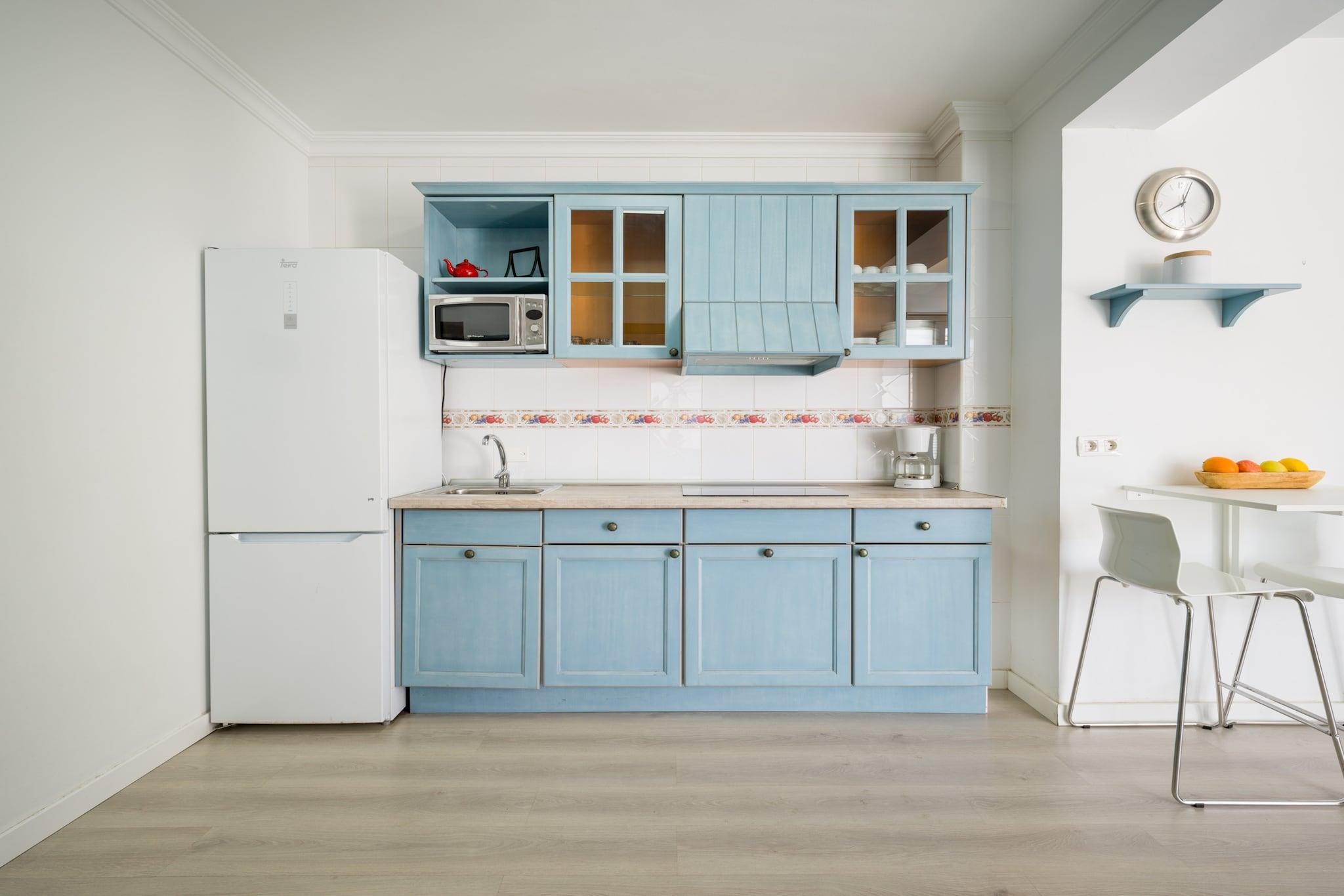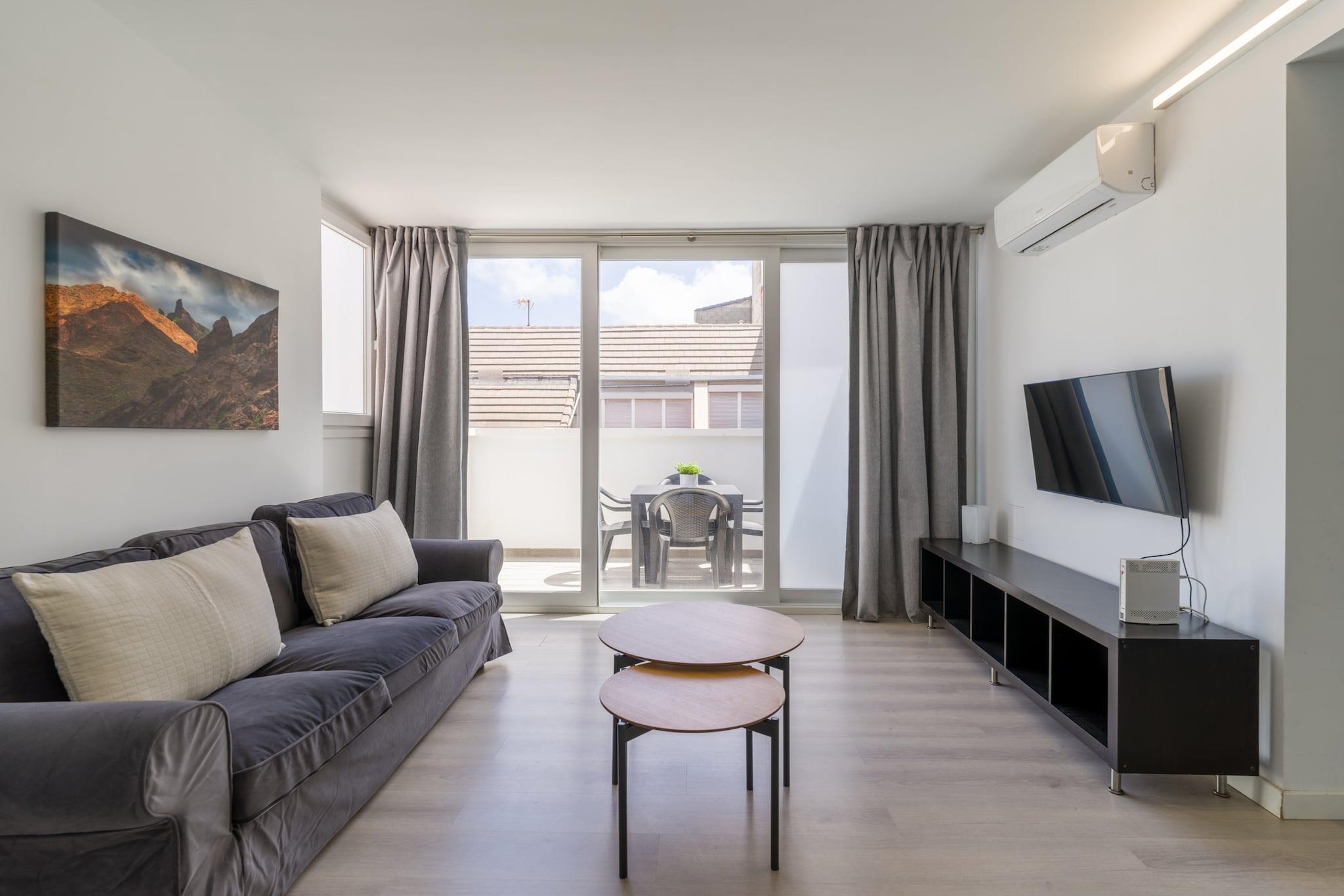 Dette hjemlige 2-værelses hus i Las Palmas de Gran Canaria er det perfekte valg for op til 4 gæster, der ønsker at nyde både naturen og bylivet. Med 70 m² komfortabelt boligareal og udsigt over bjergene tilbyder huset et fredeligt tilflugtssted i hjertet af byen, kun 500 m fra Playa de Las Canteras gyldne sand. Indenfor har ejendommen to gode soveværelser, et lyst opholdsområde med aircondition og en privat terrasse på 6 m² - ideel til morgenkaffe eller afslapning efter en stranddag. Det åbne køkken er fuldt udstyret med en keramisk kogeplade, køleskab, mikroovn, fryser, kaffemaskine, brødrister, kedel, juicer og komplet køkkenudstyr, perfekt til at tilberede hjemmelavede måltider. Moderne faciliteter inkluderer højhastigheds-Wi-Fi, en vaskemaskine, strygejern, hårtørrer, pengeskab, 1 tv og radio. En privat garage tilføjer bekvemmelighed for dem, der rejser i bil. Bygningen har en elevator for nem adgang. Boligen er centralt beliggende kun 10 m fra det nærmeste supermarked og i gåafstand fra både sandstranden Las Canteras og klippestrande La Puntilla. Naturelskere vil nyde El Confital naturreservat (800 m), mens familier kan udforske nærliggende forlystelsesparker som HolidayWorld Maspalomas og Aqualand. Uanset om du planlægger en afslappende strandferie eller et øeventyr, tilbyder denne ejendom den ideelle base for dit ophold.