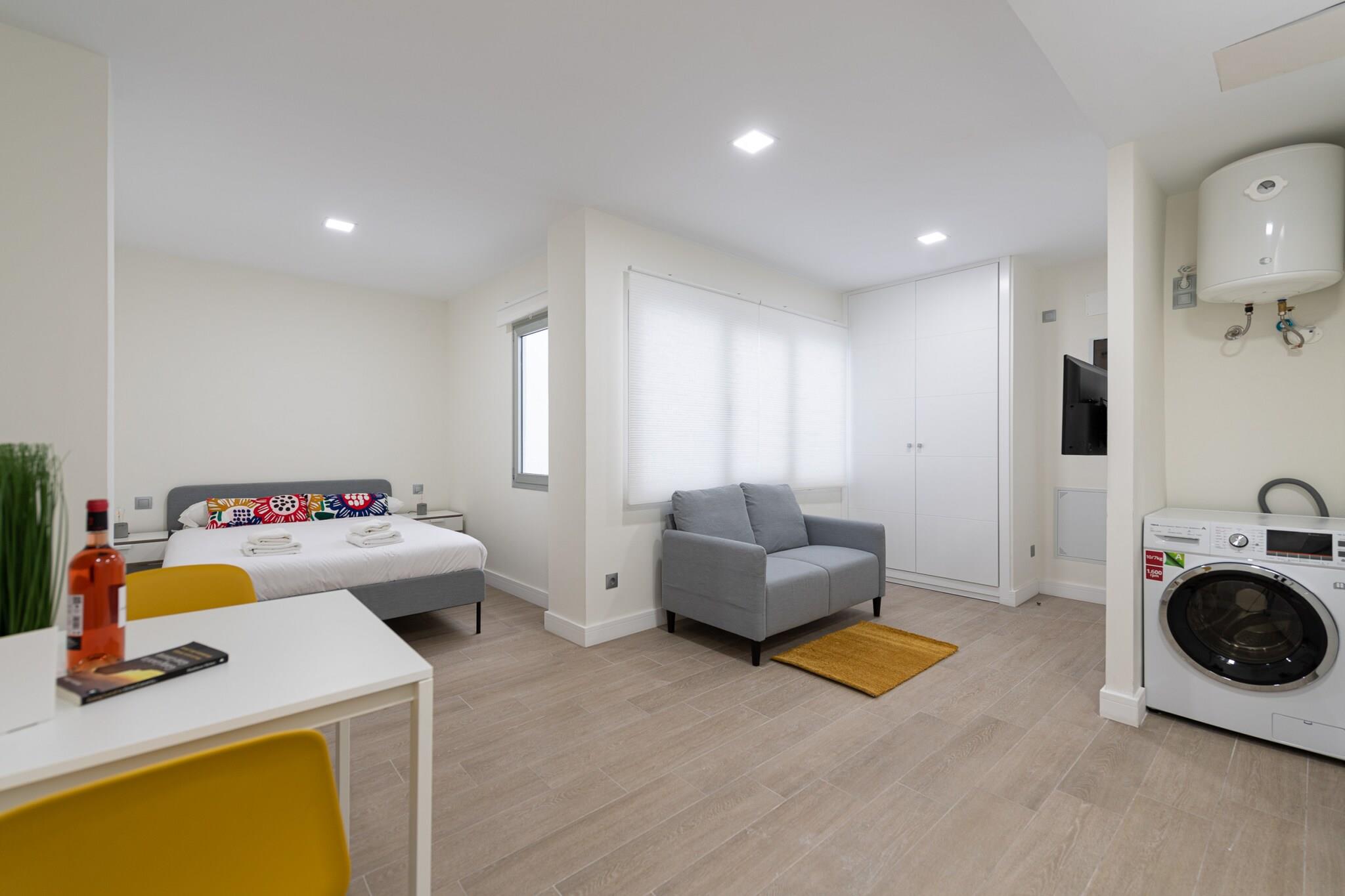Nyd den perfekte flugt ved havet i dette charmerende og moderne 1-værelses hjem, kun få skridt fra den berømte Playa de Las Canteras. Beliggende i et fredeligt beboelsesområde tilbyder denne nybygning på 29 m² en ideel ramme for to gæster, der blander komfort og bekvemmelighed med roen ved at leve ved havet. Uanset om du er her for at slappe af ved kysten, udforske øen eller arbejde på afstand, placerer denne ejendom dig i hjertet af det hele. Interiøret er smagfuldt indrettet med alt hvad du behøver for et ubekymret ophold. Fra den lyse opholdsstue med et fladskærms-tv og Wi-Fi til det fuldt udstyrede køkken i åbent plan - inklusive en induktionskogeplader, mikroovn, ovn, kaffemaskine og mere - vil du finde tankevækkende detaljer overalt. Yderligere faciliteter såsom en vaskemaskine, tørretumbler og hårtørrer sikrer en stressfri oplevelse under længere ophold. Træd udenfor og opdag Las Canteras-stranden kun 30 meter væk, med charmerende lokale steder som restauranten "Típico Español" og supermarkeder lige rundt om hjørnet. Offentlig transport er let tilgængelig via busstationen Santa Catalina 550 meter væk, hvilket gør dagsture til El Confital naturreservat, Las Palmeras Golf eller endda Maspalomas' forlystelsesparker til en leg. Perfekt til par eller solorejsende, denne kystperle er din port til Gran Canarias livlige livsstil og naturlige skønhed.