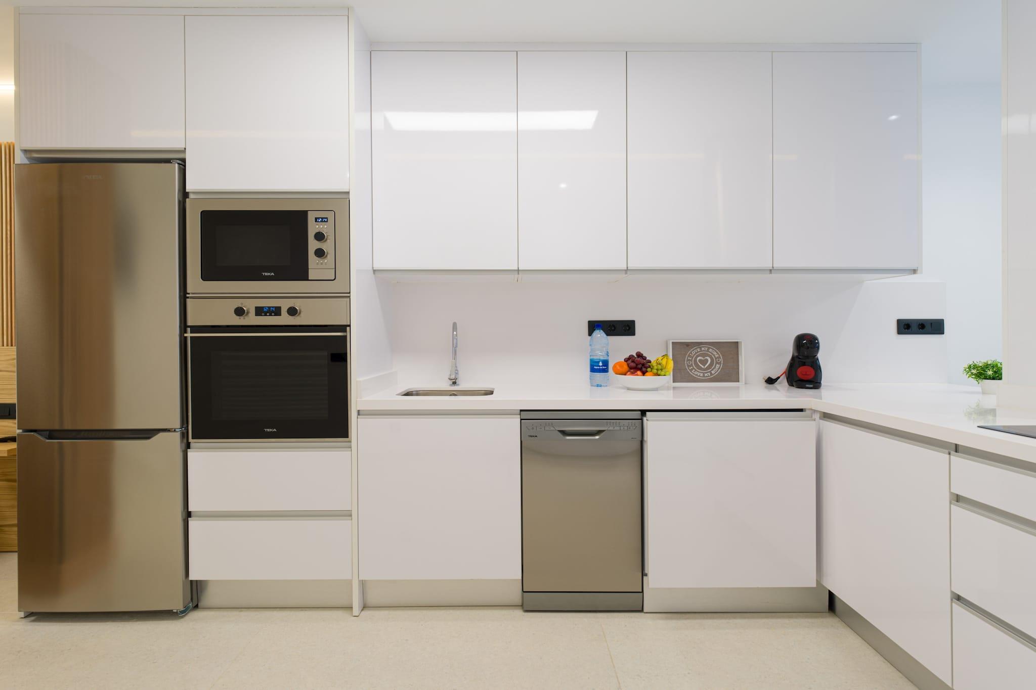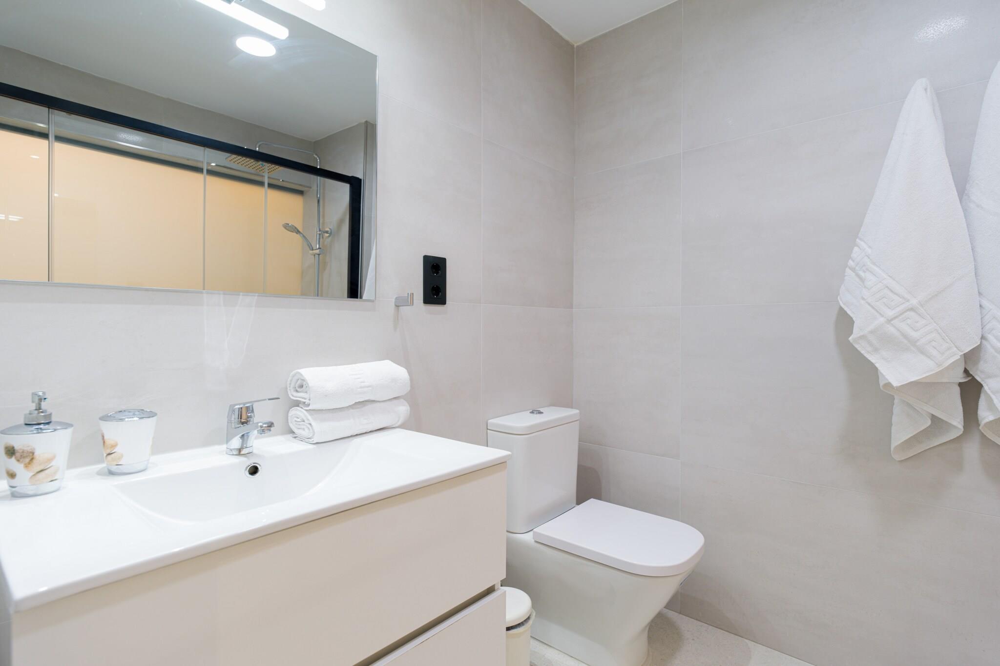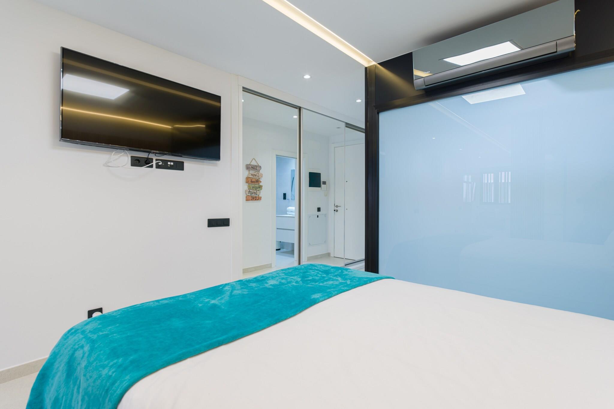 Oplev moderne komfort kun få øjeblikke fra Playa de Las Canteras gyldne sand i denne nybyggede 1-værelses lejlighed i Las Palmas de Gran Canaria. Med 43 m² smagfuldt møbleret indvendigt rum er dette hyggelige tilflugtssted perfekt for to gæster, der søger et stilfuldt ophold i hjertet af byen. Omgivet af supermarkeder, caféer og lokale restauranter, er alt hvad du behøver lige uden for din dør - inklusive nem adgang til stranden og nærliggende offentlig transport. Lejligheden er omhyggeligt udstyret med alt for et afslappet, bekymringsfrit ophold: hurtig Wi-Fi, aircondition overalt, to smart-tv'er, en vaskemaskine og tørretumbler og et fuldt udstyret åbent køkken. Nyd hjemmelavede måltider med apparater såsom en keramisk kogeplade, mikroovn, ovn, køleskab, fryser, opvaskemaskine, kaffemaskine, brødrister og kedel - alt sammen for din bekvemmelighed. Lejligheden indeholder desuden et moderne badeværelse og god opbevaringsplads. Uanset om du udforsker byens centrum, slapper af ved de nærliggende strande eller planlægger dagsture rundt på Gran Canaria, gør denne hjemmebase det nemt at blande komfort med eventyr. Fra de rolige kystnære omgivelser til dens velforbundne beliggenhed nær busstationer og populære seværdigheder, er denne charmerende og kompakte lejlighed ideel til par, solorejsende eller fjernarbejdere, der ønsker at nyde øens livsstil med stil.