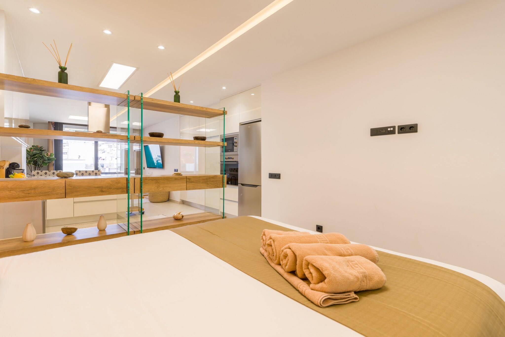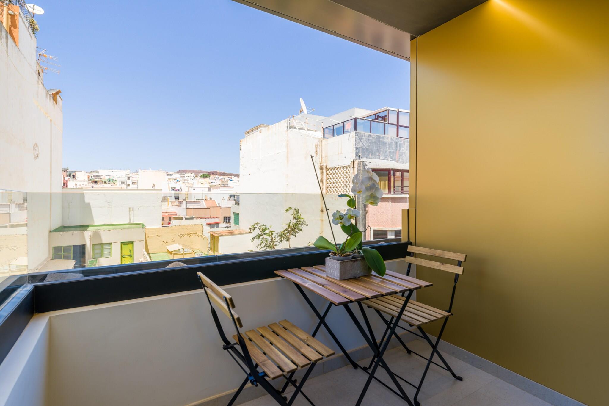 Nyd et hyggeligt ophold i hjertet af Las Palmas de Gran Canaria i denne fuldt udstyrede 1-værelses lejlighed, kun 400 meter fra Las Canteras-strandens gyldne sand. Med 47 m² lyst, komfortabelt boligareal er det ideelt for et par, der søger en afslappende ferie ved stranden med moderne bekvemmeligheder. Træd ud på den private balkon eller slap af indendørs med aircondition, højhastigheds-Wi-Fi og et fladskærms-tv. Det åbne køkken indeholder alt, hvad du har brug for - fra en keramisk kogeplade og ovn til en kaffemaskine og opvaskemaskine - perfekt til madlavning derhjemme efter en dag i solen. Beliggende i et charmerende centralt kvarter finder du supermarkeder, restauranter og parker inden for gåafstand. Med hurtig adgang til El Confital-klippestranden, Santa Catalina busstation og endda Aqualand Maspalomas en kort køretur væk, tilbyder denne lejlighed bekvemmelighed, komfort og et strejf af lokalt liv.
