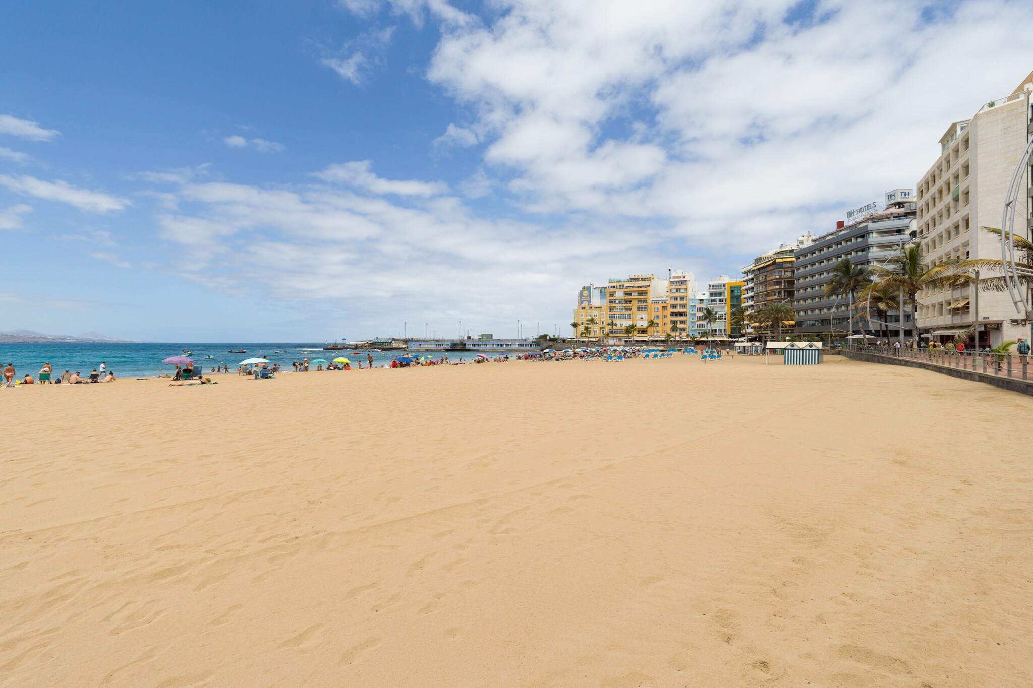 Dette moderne og hyggelige hjem på 52 m² er perfekt beliggende kun 30 meter fra det gyldne sand i Playa de Las Canteras, og tilbyder en afslappende ferie ved havet for to. Beliggende i et livligt område i Las Palmas, vil du være omgivet af lokale butikker, spisemuligheder og i gåafstand til både sand- og klippestrande. Indenfor er hjemmet lyst og indbydende, med aircondition, Wi-Fi, et tv og en privat balkon, hvor du kan nyde havbrisen. Køkkenet er fuldt udstyret med induktionskogeplader, ovn, mikroovn, køleskab, fryser, kaffemaskine, brødrister og kedel - ideel til at tilberede måltider derhjemme. En vaskemaskine, strygejern og hårtørrer er også til rådighed for din bekvemmelighed. Uanset om du bruger dine dage på at udforske El Confital, slapper af på stranden eller nyder den nærliggende golfbane, giver denne beliggenhed nem adgang til både byens attraktioner og naturen. Med busstationen Santa Catalina kun 670 meter væk og lufthavnen en kort køretur ud, er dette velforbundne hjem en god base for en ferie på Gran Canaria.