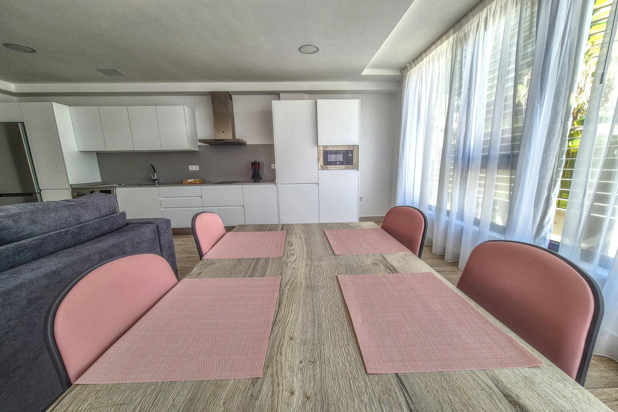 Nyd en moderne kystflugt i dette nybyggede, stilfulde 1-værelses hjem kun få skridt fra Playa de Las Canteras gyldne sand. Med 65 m² lyst indvendigt rum og moderne finish overalt tilbyder huset komfort og alsidighed for op til 4 gæster - ideel til par, små familier eller fjernarbejdende rejsende, der søger både sindsro og en central beliggenhed. Beliggende i et familievenligt kystområde, vil du være omgivet af toprestauranter som Origen SteakHouse, Casa Carmelo og La Marinera samt lokale butikker og fremragende offentlige transportforbindelser. Indvendigt er boligen gennemtænkt designet til at balancere afslapning og funktionalitet. Det åbne køkken er udstyret med en elegant induktionskogeplader, køleskab, ovn, mikroovn, fryser, kaffemaskine, brødrister, kedel og alt nødvendigt køkkenudstyr - perfekt til madlavning derhjemme efter en dag på stranden. Boligen har to tv'er, en radio og højhastigheds-Wi-Fi, mens en vaskemaskine, strygejern og hårtørrer tilføjer bekvemmelighed til længere ophold. Med frisk indretning og en ren, moderne indretning føles rummet både hyggeligt og ubesværet beboeligt. Træd udenfor, og du vil finde dig selv kun 30 meter fra Las Canteras-stranden, en af ??de mest ikoniske sandstrækninger på De Kanariske Øer. Santa Catalina-busstationen ligger kun 800 meter væk, og giver nem adgang til øens højdepunkter såsom Teror, Tejeda og Tamadaba-naturreservatet. Med klippestrande, golfbaner og forlystelsesparker inden for rækkevidde tilbyder dette hjem en perfekt balance mellem kystafslapning og urbant eventyr - alt sammen i hjertet af Las Palmas de Gran Canaria.