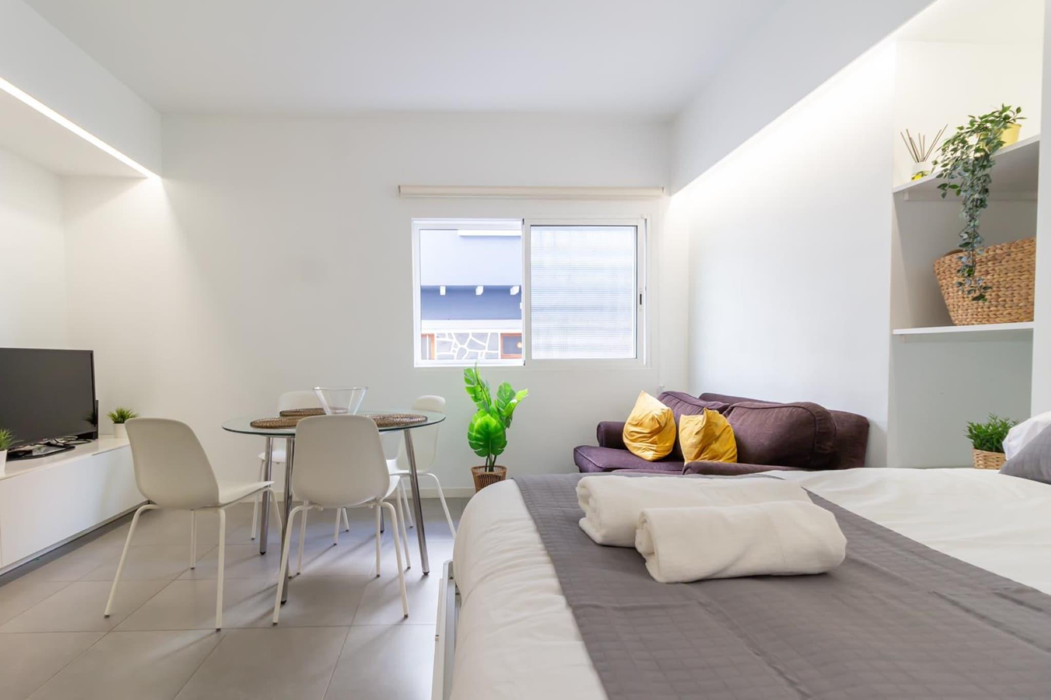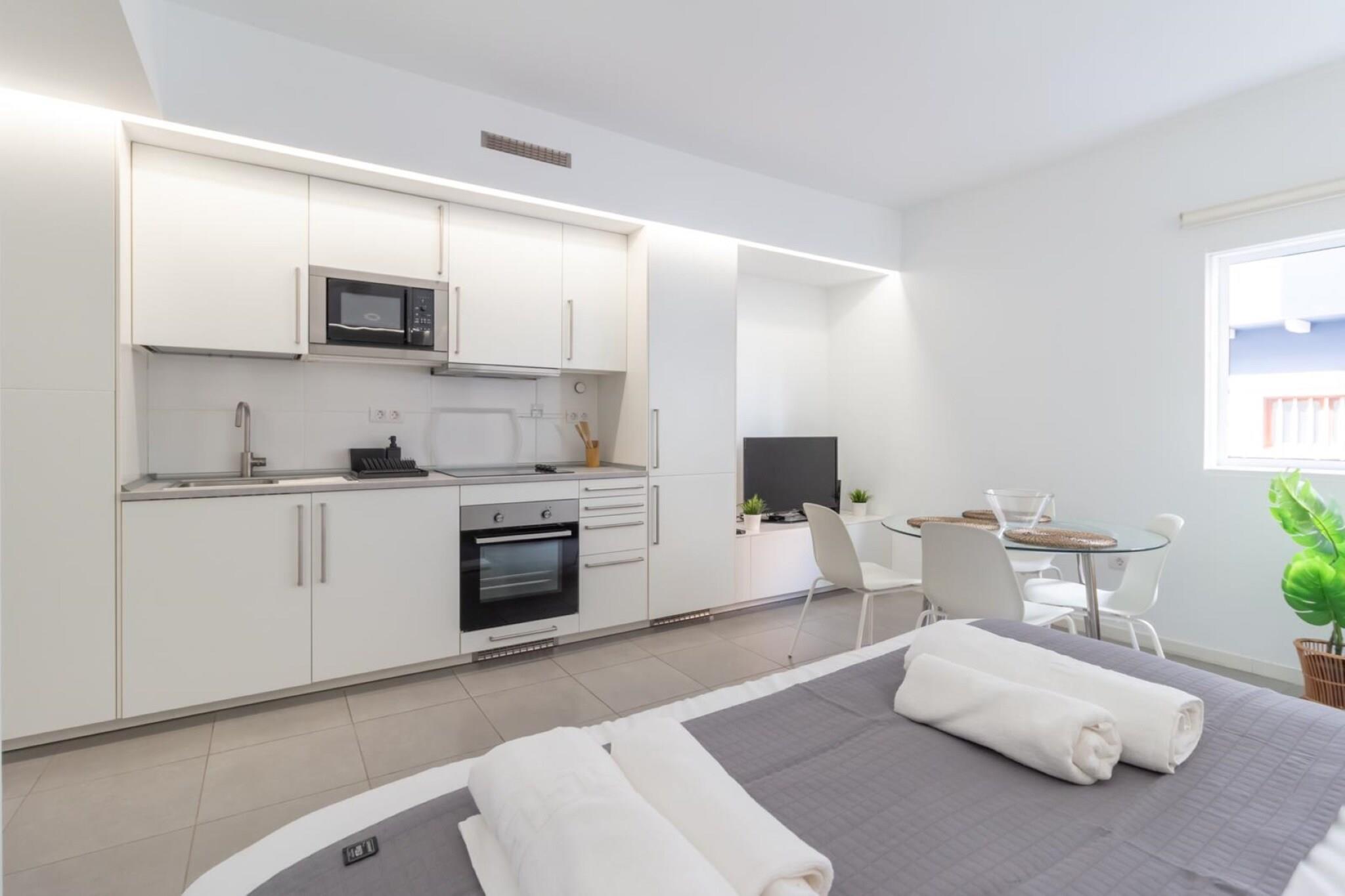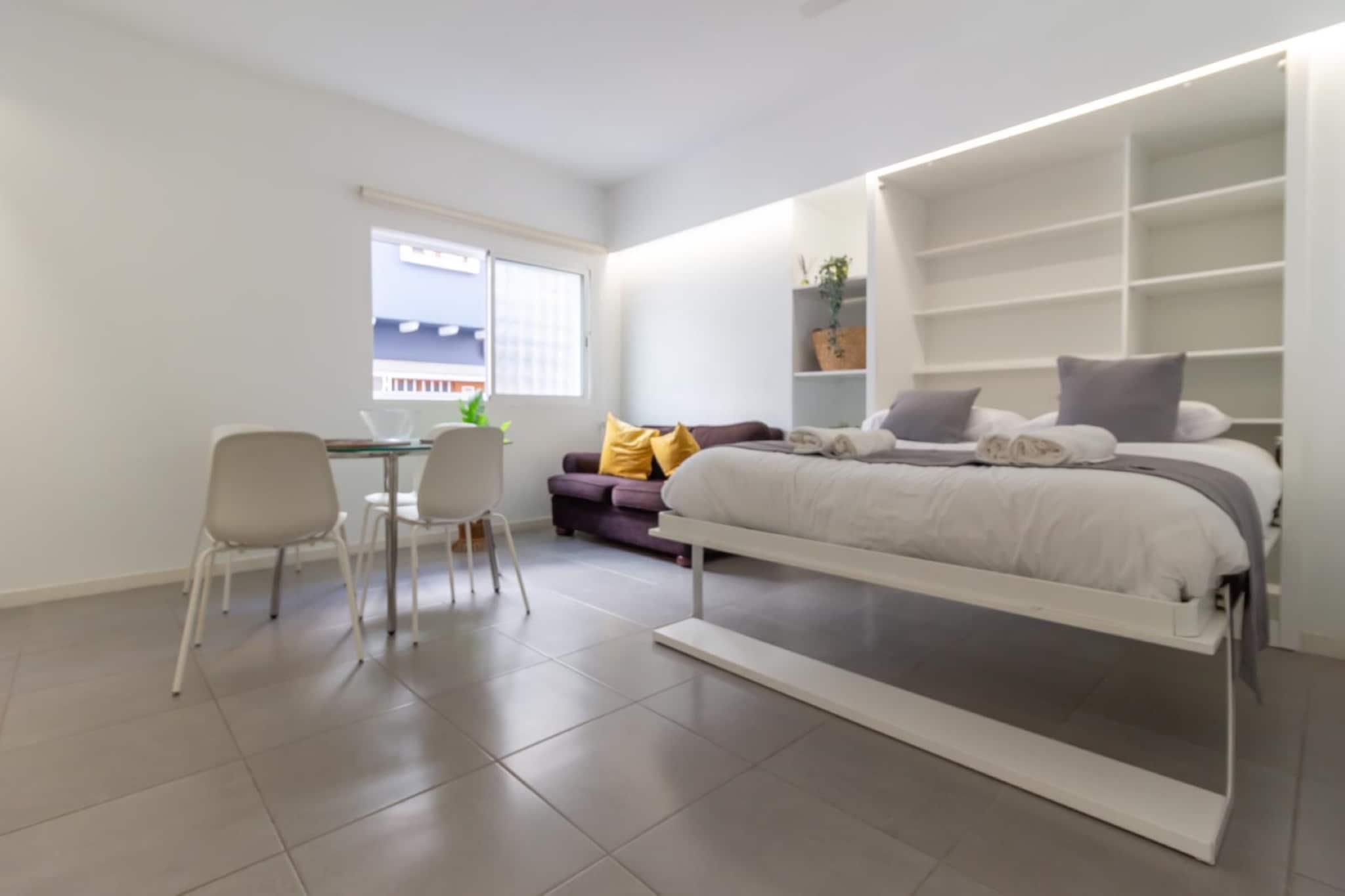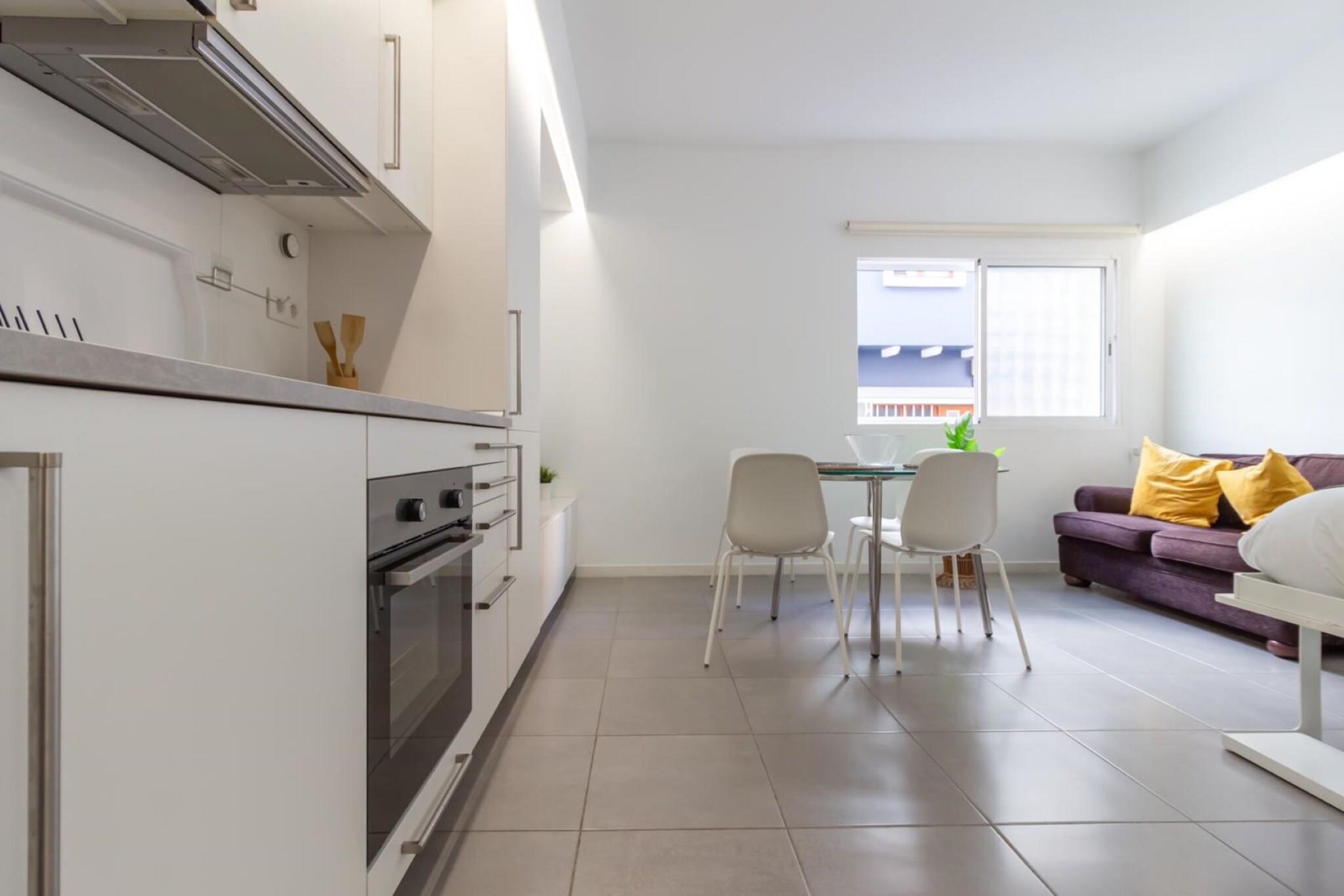 Denne hyggelige og solbelyste 1-værelses lejlighed tilbyder et raffineret tilflugtssted kun få skridt fra Playa de Las Canteras gyldne sand. Perfekt designet til to gæster, den 40 m² store plads blander komfort og funktionalitet i et af Las Palmas de Gran Canarias mest pulserende kystdistrikter. Omgivet af anerkendte restauranter som La Oliva, La Marinera og Casa Carmelo, og med stranden kun 50 meter væk, placerer dette stilfulde hjem dig lige i hjertet af byens kystcharme - ideel til par eller solorejsende, der søger et afslappende og kulturelt rigt ophold. Indvendigt har lejligheden lyst interiør og omhyggeligt udvalgte faciliteter for at sikre et behageligt ophold. Det fuldt udstyrede uafhængige køkken inkluderer en glaskeramisk kogeplade, ovn, mikroovn, køleskab, fryser, kaffemaskine og brødrister - ideel til at tilberede enkle måltider eller en frisk morgenmorgenmad. Slap af i den hyggelige lounge med tv og radio, hold forbindelsen med Wi-Fi, og nyd den ekstra bekvemmelighed ved en vaskemaskine, tørretumbler, strygejern, ventilator og hårtørrer. Med elevatoradgang og veltilrettelagte rum er alt designet til ubesværet bolig. Placeringen er uden sidestykke. Gå en tur til El Confitals dramatiske kystlinje eller nyd den livlige summen af ??Santa Catalina Park og nærliggende butikker. Offentlig transport er tæt på, med den centrale busstation kun 1 km væk, som giver adgang til øens højdepunkter som landsbyen Teror eller naturstier i Santa María de Guía. Uanset om du planlægger dovne stranddage eller dagsture på tværs af Gran Canaria, er denne velbeliggende lejlighed en perfekt base for at nyde øens skønhed, kultur og kystenergi.