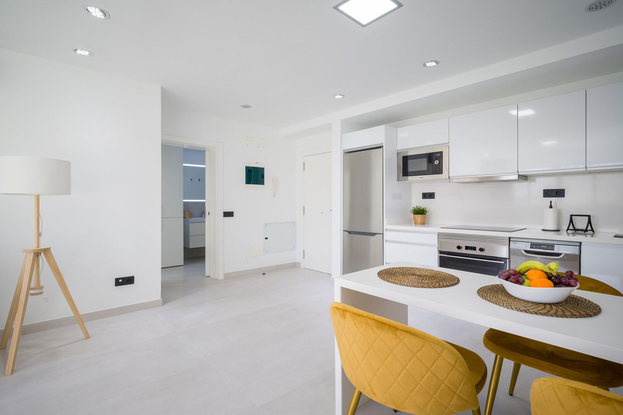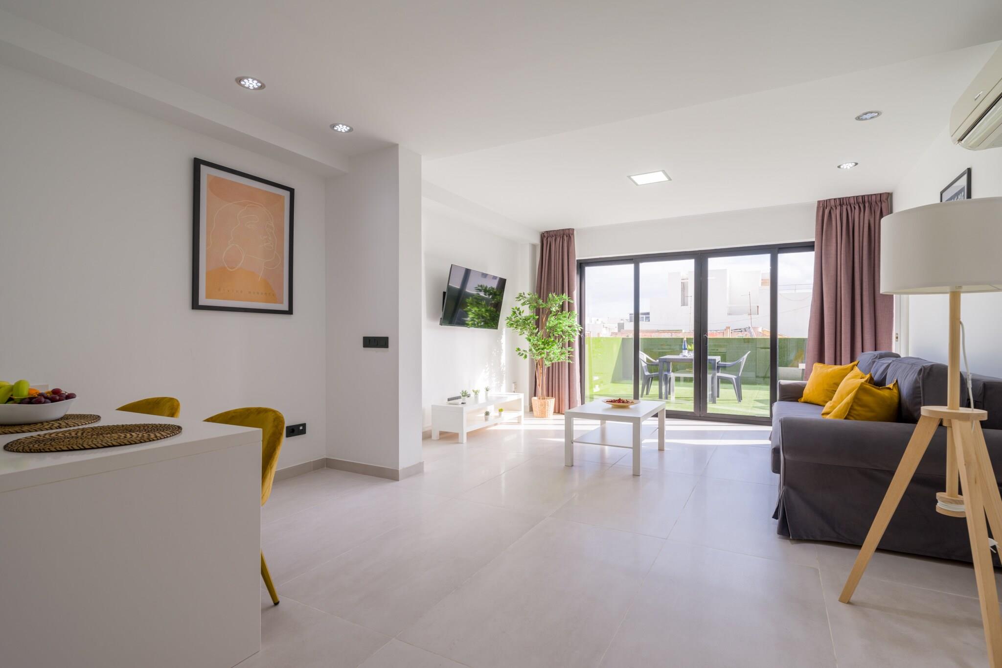 Nyd en behagelig storbyferie i denne hjemlige 1-værelses lejlighed i hjertet af Las Palmas de Gran Canaria, ideel til op til 3 gæster. Beliggende i et livligt centralt kvarter tilbyder denne lejlighed på 48 m² den perfekte blanding af bekvemmelighed og afslapning kun få skridt fra butikker, restauranter og offentlig transport. Lejligheden har en rummelig 20 m² stor terrasse, perfekt til at nyde morgenmaden udendørs eller slappe af efter en dag med udforskning af byen. Indenfor finder du et lyst og funktionelt opholdsrum udstyret med Wi-Fi, aircondition med varmepumpe, TV, radio og vaskemaskine. Det åbne køkken er fuldt udstyret med en keramisk kogeplade, køleskab, fryser, mikroovn, opvaskemaskine og alle nødvendige køkkenredskaber - inklusive en kaffemaskine, kedel, brødrister og juicer - hvilket gør tilberedningen af ??måltider enkel og behagelig. Uanset om du besøger for forretning eller fritid, tilbyder denne centralt beliggende lejlighed en komfortabel base med alt hvad du behøver for et behageligt og praktisk ophold i Las Palmas.