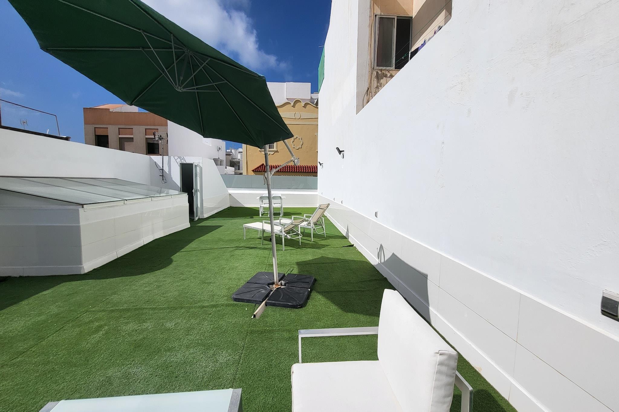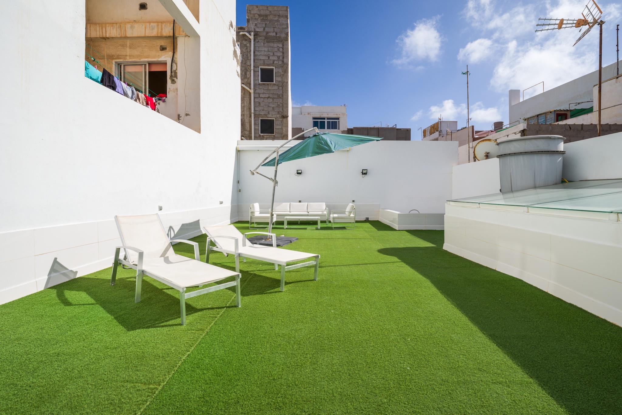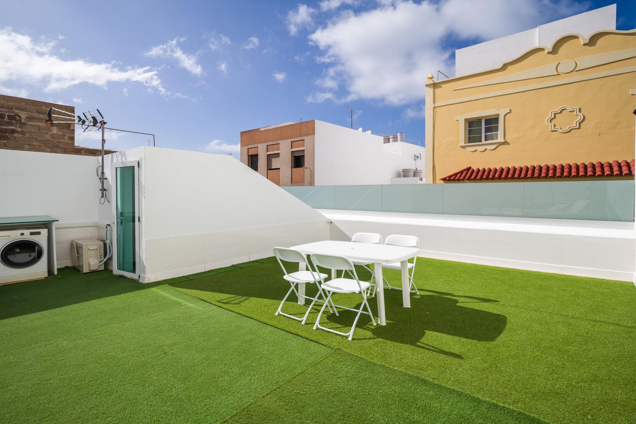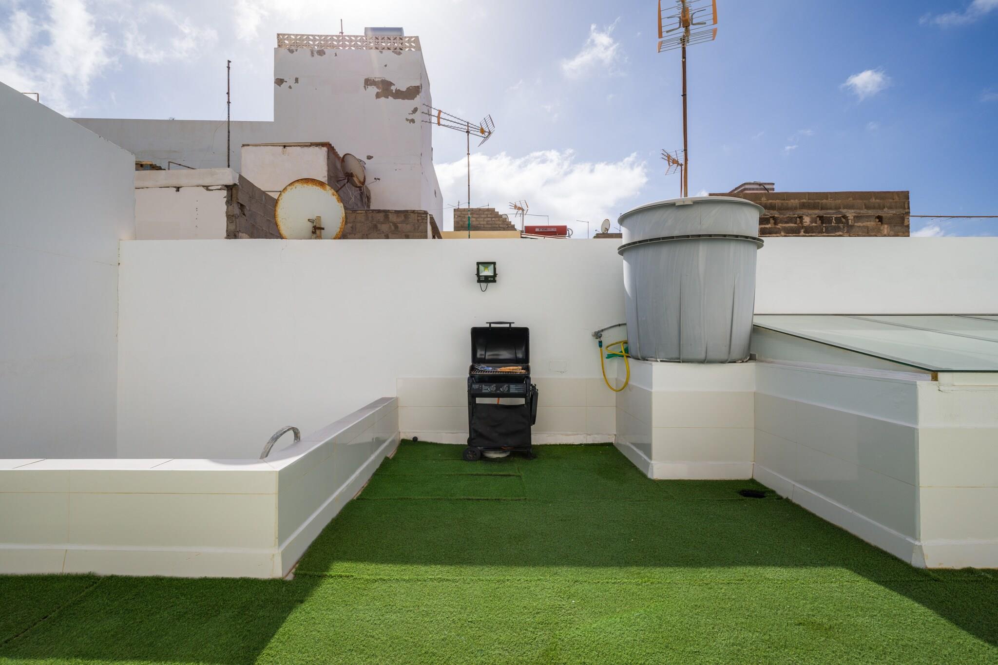 Nyd komforten og rummet i dette 3-værelses hus i Las Palmas de Gran Canaria, designet til op til 4 gæster og perfekt til en afslappende familieferie ved havet. Med 118 m² indvendigt rum og en ekspansiv 118 m² privat terrasse tilbyder dette hjem en sjælden kombination af privatliv, indendørs komfort og udendørsliv - kun få skridt fra havet. Beliggende i et roligt, børnevenligt område, giver det en ideel base for stranddage, familiehygge og rolige aftener. Indenfor er huset varmt og indbydende, med rigelig plads til at slappe af. Opholdsområdet omfatter aircondition, to tv'er og højhastigheds-Wi-Fi, mens det veludstyrede køkken har alt det nødvendige til hjemmelavede måltider - fra en ovn og mikroovn til en kaffemaskine og brødrister. En vaskemaskine, strygejern og hårtørrer er også tilgængelige for lange, komfortable ophold, og to ventilatorer giver ekstra ventilation til varme dage. Træd udenfor til et sandt højdepunkt i hjemmet: den store private terrasse, hvor du kan nyde solrig morgenmad, afslappede eftermiddage og aftengrill under stjernerne. Uanset om du planlægger et roligt tilbagetog ved kysten eller en bekvem base for at udforske øen, tilbyder denne rummelige strandejendom alt det væsentlige og mere til en uforglemmelig ferie på Gran Canaria.