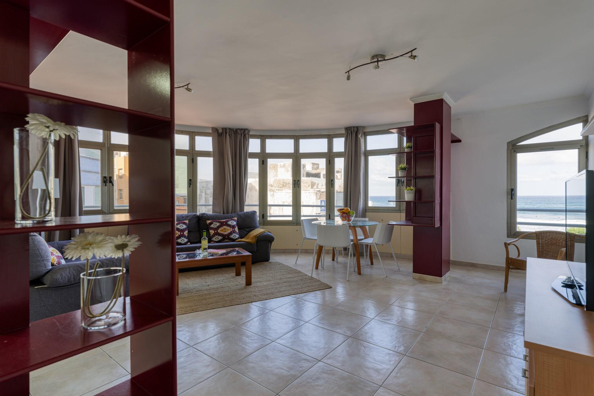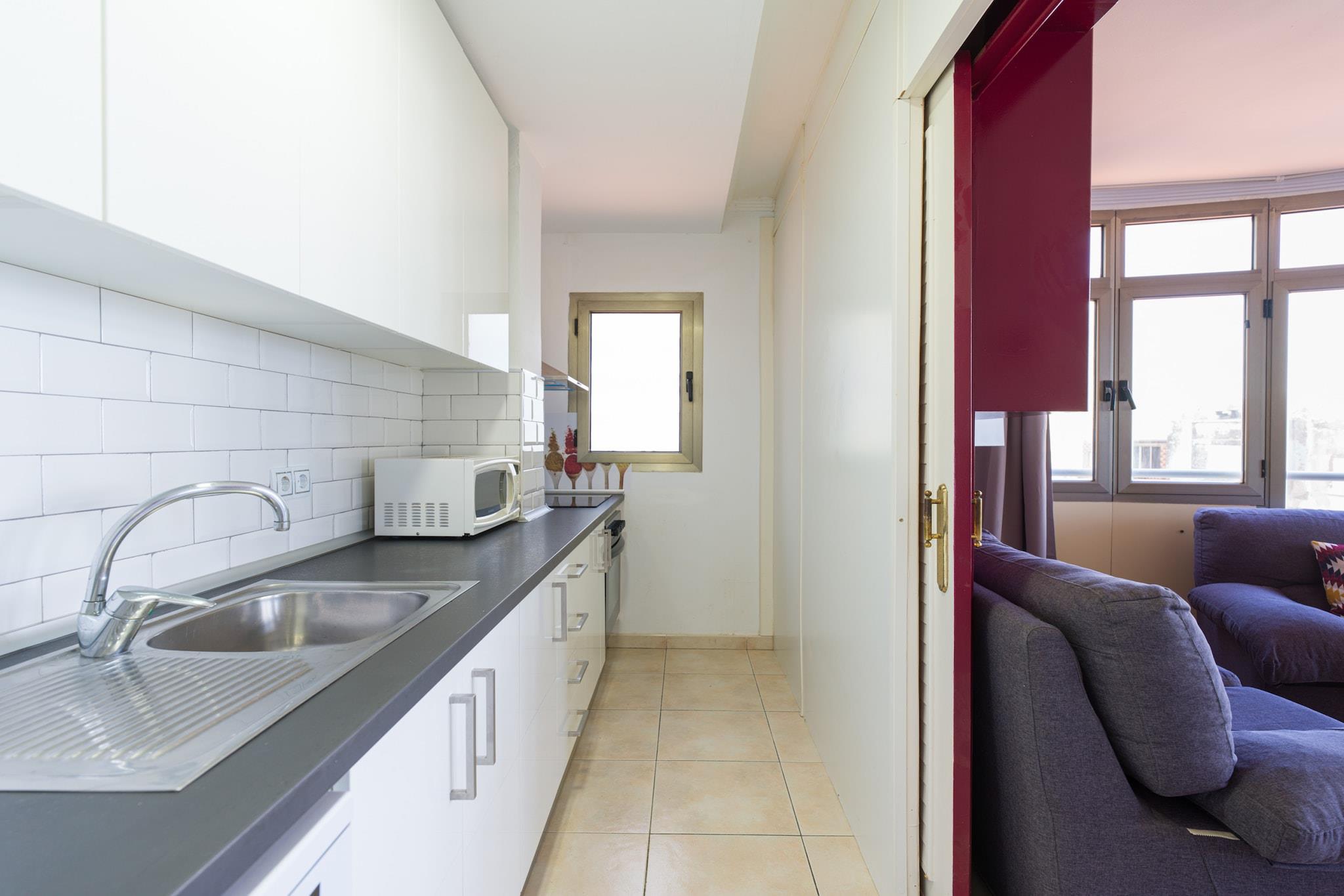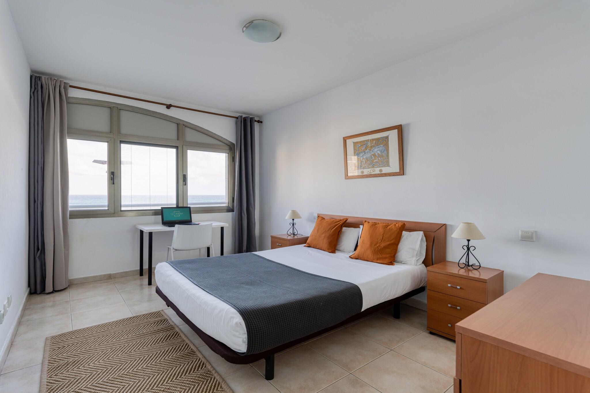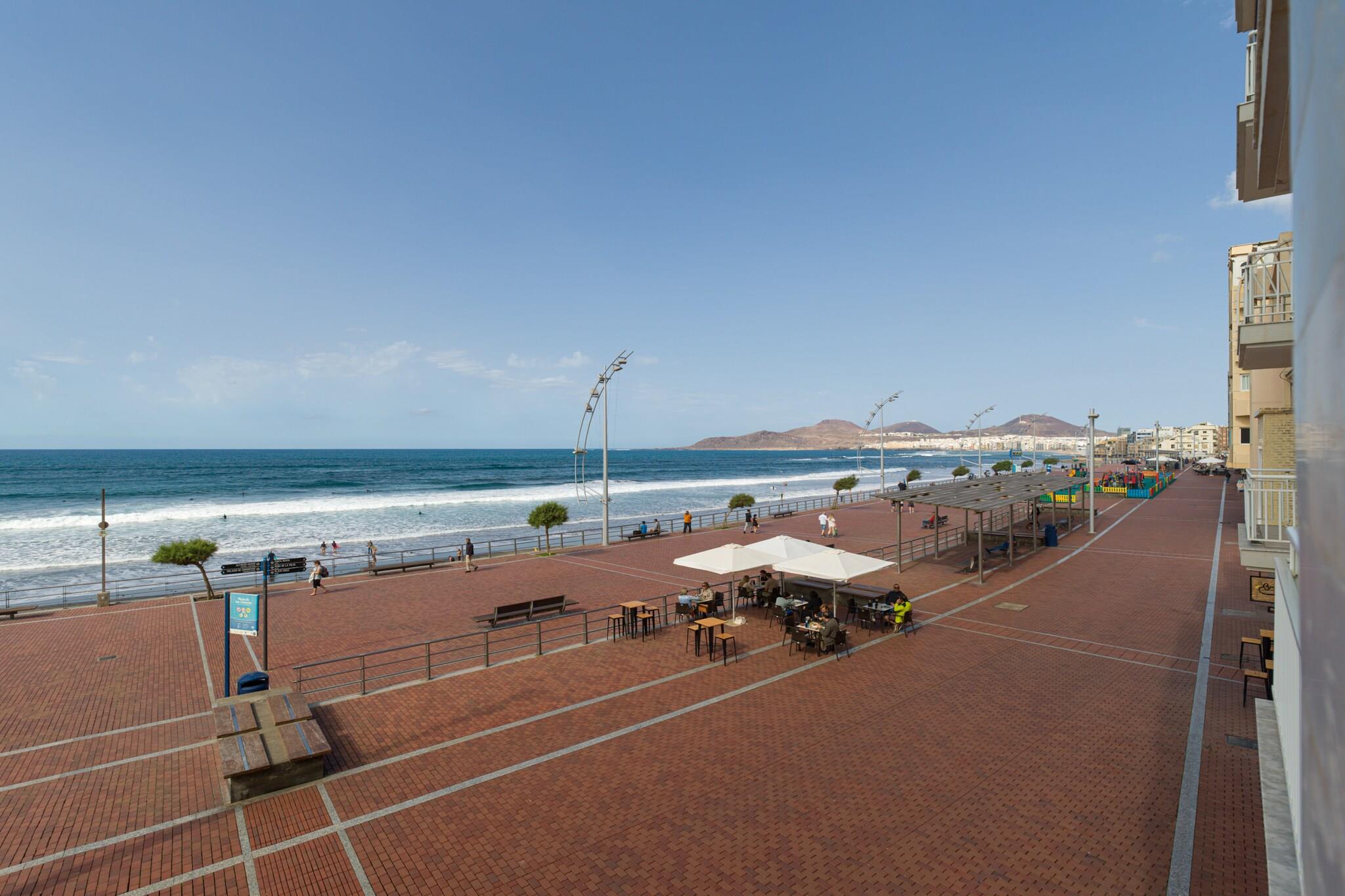 Oplev livet ved stranden, når det er bedst i dette fuldt udstyrede 2-værelses hjem beliggende direkte på den gyldne strækning af Playa de Las Canteras. Tilbyder 100 m² rummelig komfort, huset er ideelt til op til 4 gæster og ligger i skæringspunktet mellem hav, natur og bekvemmelighed. Med direkte adgang til både stranden og det tilstødende El Confital naturreservat er dette tilflugtssted perfekt for familier, naturelskere eller enhver, der søger en fredfyldt, men central flugt i Las Palmas de Gran Canaria. Det indre af hjemmet er gennemtænkt designet til komfort og funktionalitet. Det uafhængige køkken er fuldt udstyret med en keramisk kogeplade, køleskab, ovn, mikroovn, opvaskemaskine, kaffemaskine, kedel, juicer og komplet køkkenudstyr - ideel til alt fra hurtig morgenmad til afslappede middage ved havet. En vaskemaskine, tørretumbler, strygejern og hårtørrer sikrer praktisk, mens boligarealet er komplet med et tv, Wi-Fi og garageparkering i samme bygning for ekstra bekvemmelighed. Uanset om du tilbringer dine dage udendørs eller slapper af indeni, understøtter hver detalje et behageligt og ubekymret ophold. Med Playa de Las Canteras kun 10 meter væk og El Confitals dramatiske kyst lige uden for døren, har du adgang til en af ??øens mest ikoniske omgivelser. Restauranter som El Dorado ligger kun få skridt væk, og Carrefour-supermarkedet ligger kun 300 m fra ejendommen. Udforsk nærliggende golfbaner, nyd dagsture til Telde eller Maspalomas, eller nyd blot udsigten over havet og bjergene fra din base. Denne oase ved vandet tilbyder det bedste fra Gran Canaria – natur, by og strand – alt sammen på ét sted.