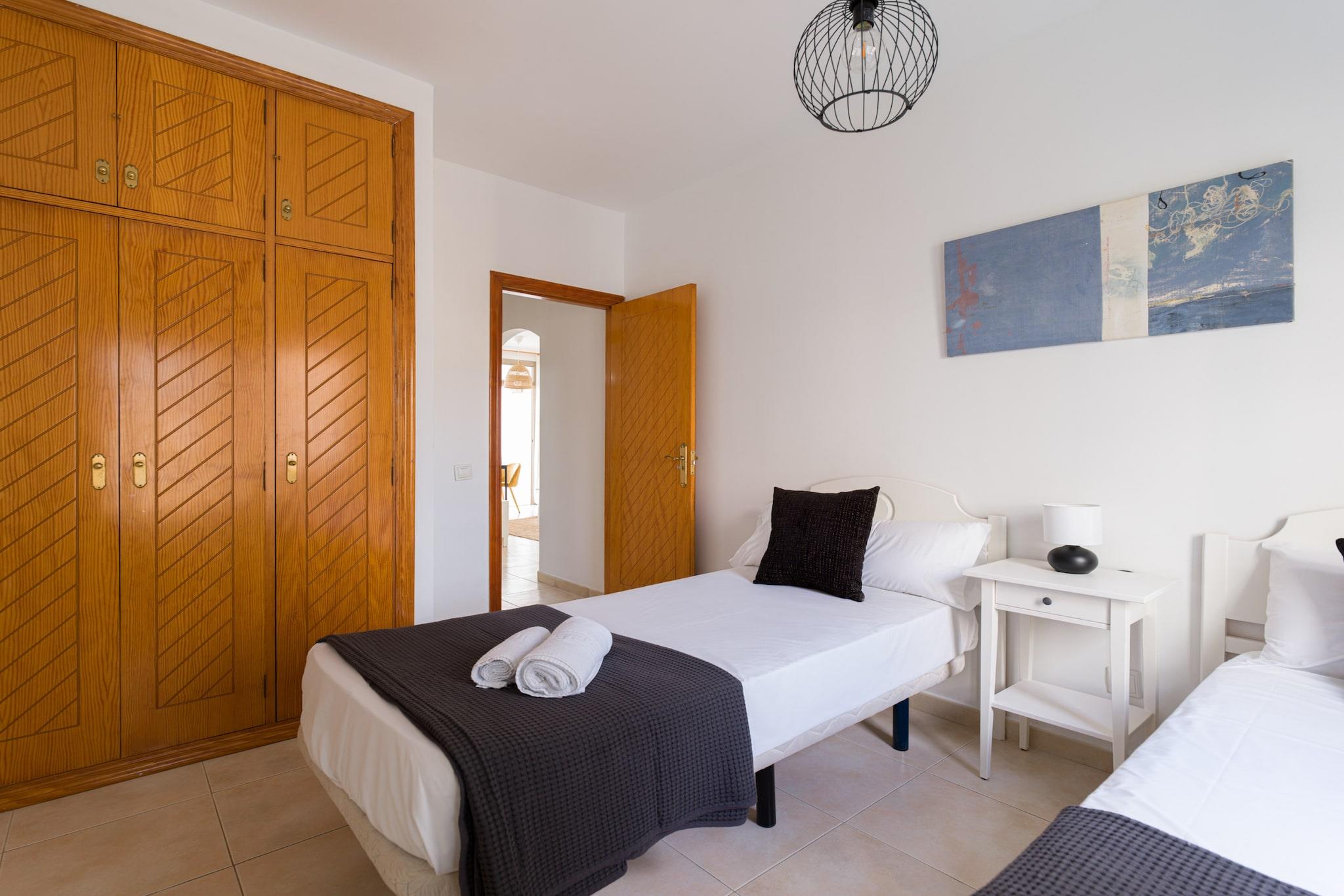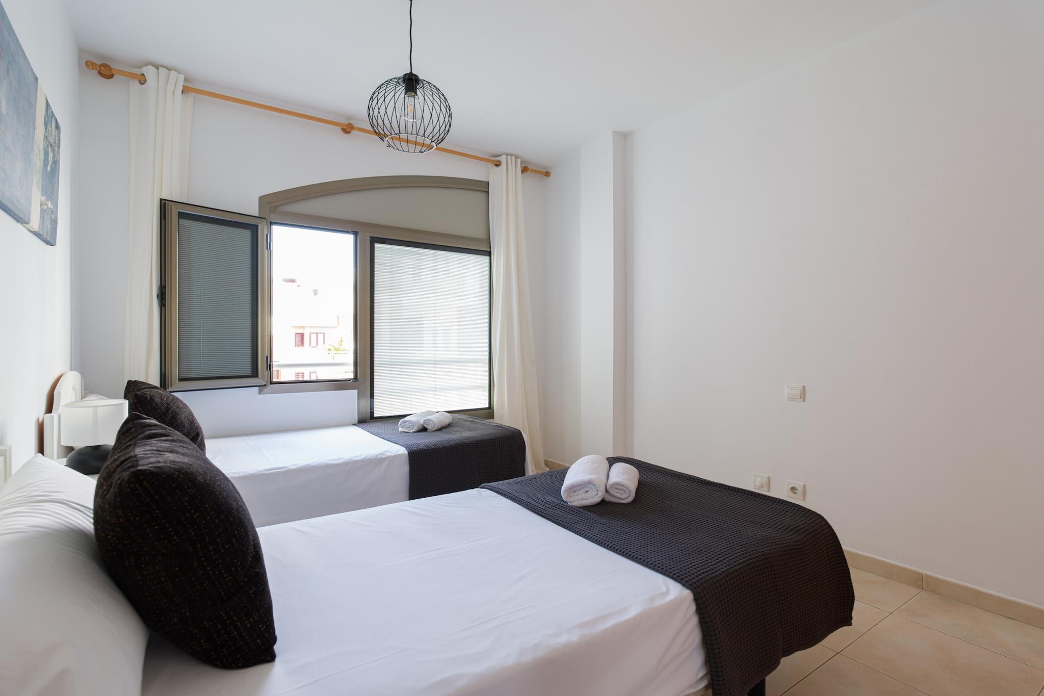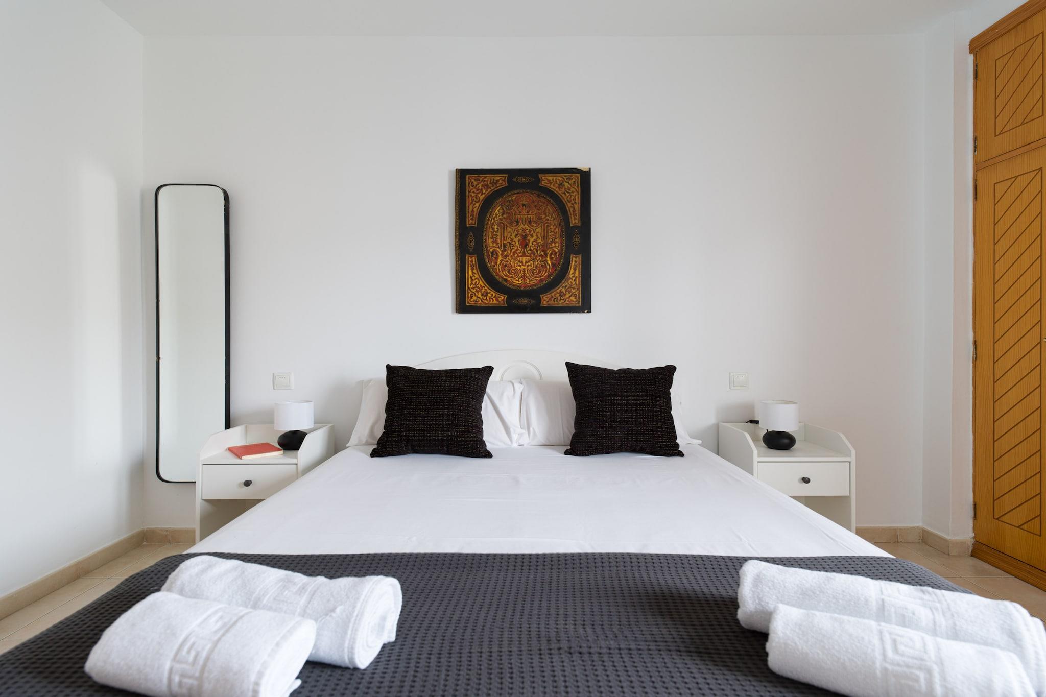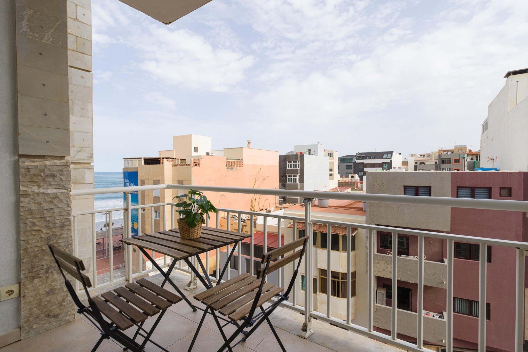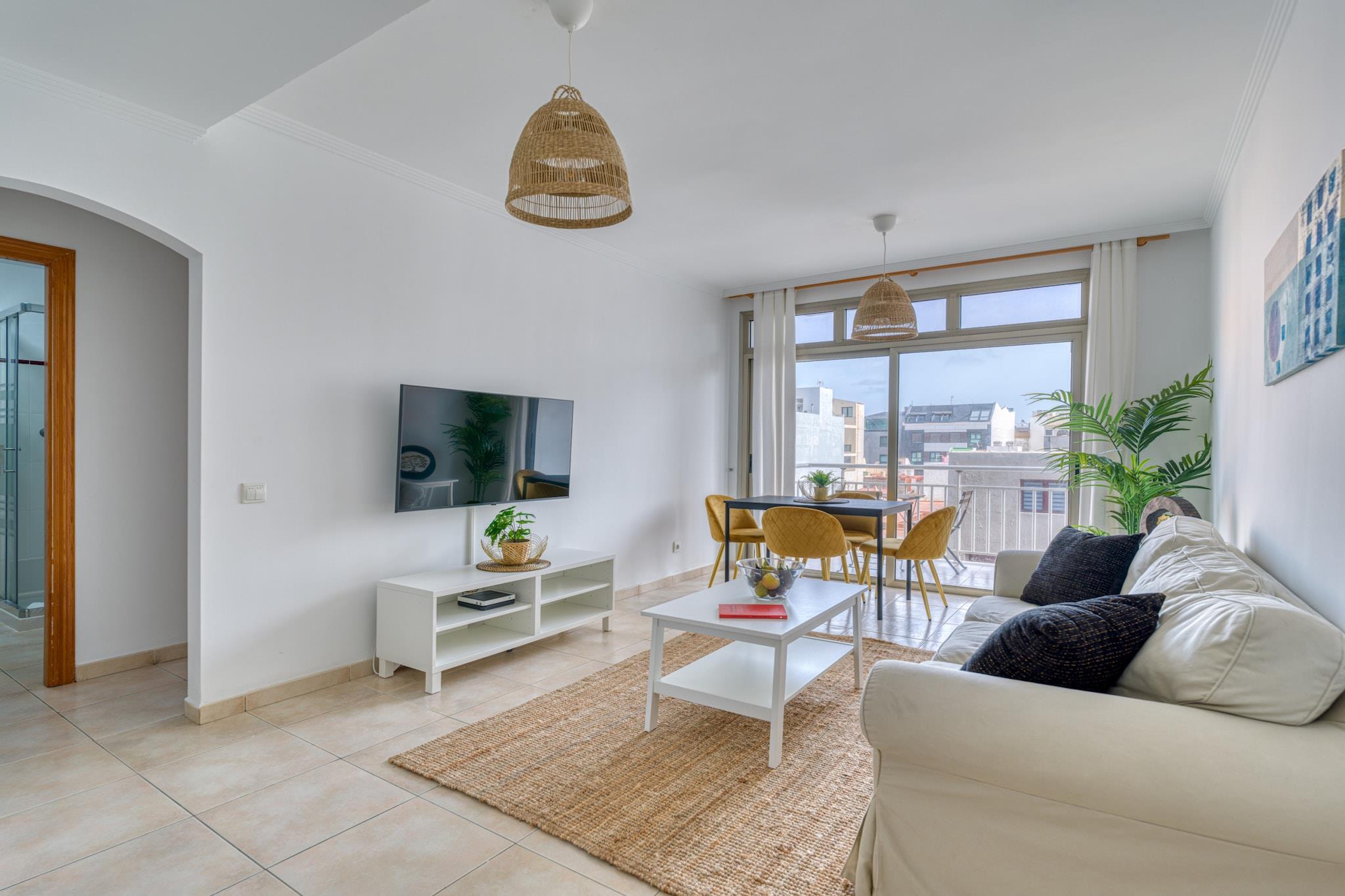 Nyd komforten ved stranden i dette hyggelige 2-værelses hus i Las Palmas de Gran Canaria, perfekt beliggende kun få skridt fra Playa de Las Canteras. Med 65 m² lyst boligareal tilbyder dette hjem ved vandet et afslappende tilflugtssted for op til 4 gæster, med smuk udsigt over bjergene og havet. Træd ind på din private 9 m² store terrasse og nyd morgenkaffen med havbrisen. Indvendigt er huset fuldt udstyret til et ubekymret ophold, inklusive Wi-Fi, vaskemaskine, tørretumbler og garage i samme bygning. Det uafhængige køkken kommer med alt hvad du behøver for at tilberede måltider derhjemme - ovn, opvaskemaskine, kaffemaskine og meget mere. Beliggende i et familievenligt område, vil du være kun 15 meter fra stranden, 200 meter fra Carrefour-supermarkedet og tæt på restauranter, naturparker og en golfbane. Uanset om du er her for at slappe af, udforske eller arbejde på afstand ved havet, tilbyder dette hjem den perfekte base på Gran Canaria.