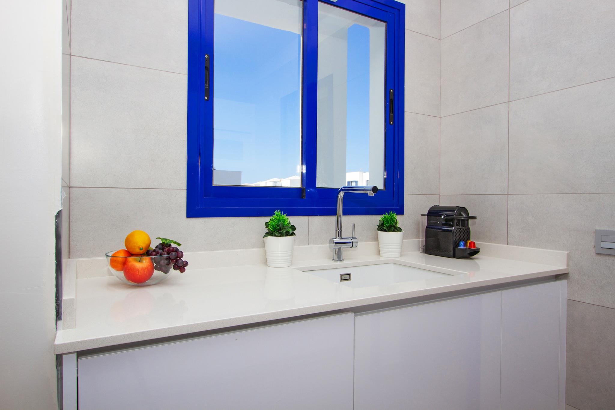 Kun få skridt fra det lille indkøbscenter i San Marcial de Rubicon ligger dette feriehus i Playa Blancas Las Palmas, som blev renoveret i 2022. Det er meget tæt på den pragtfulde Marina i Rubicon med sine trendy restauranter og barer og dens fantastiske butikker. Hjemmets terrasse byder på en betagende havudsigt og er beliggende på øen Fuerteventura nær havet og strandene. Dette huss omgivelser er lige så berigende, som der er cykeludlejning, buggy, kajakker, ridning, Timanfaya National Park, Cueva de los Verdes-hulerne, kaktushaven og en César Manrique-fond at udforske i ro og mag. Huset består af et nyt, fuldt udstyret køkken med en Nespresso-kaffemaskine, en stue med et bibliotek og tv, gratis WiFi, en separat spisestue, et kontorområde, adgang til den møblerede have med liggestole og en udendørs lounge og en privat swimmingpool. Første sal har en master suite med kingsize seng og en møbleret terrasse.