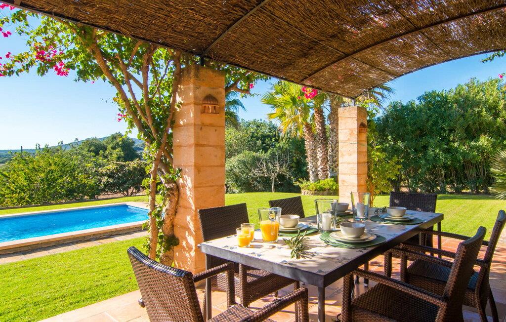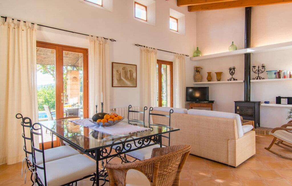 "Når livet giver jer citroner (og appelsiner), lav limonade." Smarte råd, der passer perfekt til en ferie i Villa "Limonera", når modne, saftige, lækkert aromatiske frugter bogstaveligt talt vokser foran jeres øjne på en 7.000 m² stor ejendom. Livet i det stille landskab her mellem Capdepera og Son Servera byder på utallige muligheder og masser af plads til at gøre livet "coolt": i liggestolene ved poolen, ved siden af mægtige palmer, under det buede bambus-skyggetag. Det er ærgerligt, at man ikke kan flyve over villaen i en ballon for med egne øjne at se, hvad videoen viser. Havet og kysten kan nås hurtigt! I kan næsten tage et slag på Pula golfbanen, og det store grønne område omkring huset er et fantastisk sted at øve nogle chip-slag og forbedre jeres handicap denne ferie. Tilskuerne på tribunerne skaber stemning og grillhygge... "Limonera" er en en-etagers villa med landlig charme og en citronduftende atmosfære. Et venligt indgangsparti byder jer velkommen. Højt til loftet med loftsbelysning og gulvlange glasdøre gør det lyst og luftigt. Masser af siddepladser er uformelt arrangeret omkring spisebordet, pejsen og fjernsynet. Ukompliceret komfort sikrer godt selskab, især på køligere aftener. Den elegante, åbne hylde med det lange komfurrør er et visuelt højdepunkt. Det tilstødende lille køkken er fuldt udstyret til at forberede en hurtig brunch eller salat (og frisk limonade, selvfølgelig). Alle kan hjælpe sig selv, som de vil – det er trods alt ferie. Vaskemaskine, strygebræt og strygejern er i et separat bryggers. Hvert af de to dobbeltværelser har et solidt træsengestel og en afslappende udsigt over den grønne have samt et moderne badeværelse med bruser og badekar. Det kan I virkelig arbejde med, ikke? Livet har generøst begavet denne region på Mallorca. Middelhavslandskabet omkring Sant Llorenç med små skove og plantager er ideelt til cykling, vandreture og ridning (der er flere ridestalde i området). I kan også få lidt frisk luft i naturparken på Llevant-halvøen med naturreservaterne Cap de Ferrutx og Cap des Freu, samt i den mest populære og livlige kystregion med sandstrande, klitformationer og drypstenshuler. Den fine sandstrand Playa de Sa Coma, ca. 900 m lang og 60 m bred, er særlig attraktiv og har en skyggefuld promenade til slentreture. Golgata-trappen i Puig de San Salvador fører til den charmerende landsby Artà. Nyd en af de smukkeste udsigter på øen. I en af de mest populære regioner på øen er denne en-etagers moderne villa med sine citron- og appelsintræer centralt beliggende nær Ma-4040, men helt stille mellem Cala Ratjada og Sant Llorenç des Cardassar. Pula Golf ligger kun 2 km væk, og den familievenlige sandstrand Sa Marjal ligger kun 4 km væk. Son Servera er med sine stejle, smalle gader en god base for shopping, caféer og restauranter, mens der mod havet er mange smukke kystbyer og strande som Cala Millor, Cala Bona, Costa dels Pins og Cala Agulla. Den charmerende by Artà ligger 20 minutters kørsel derfra.