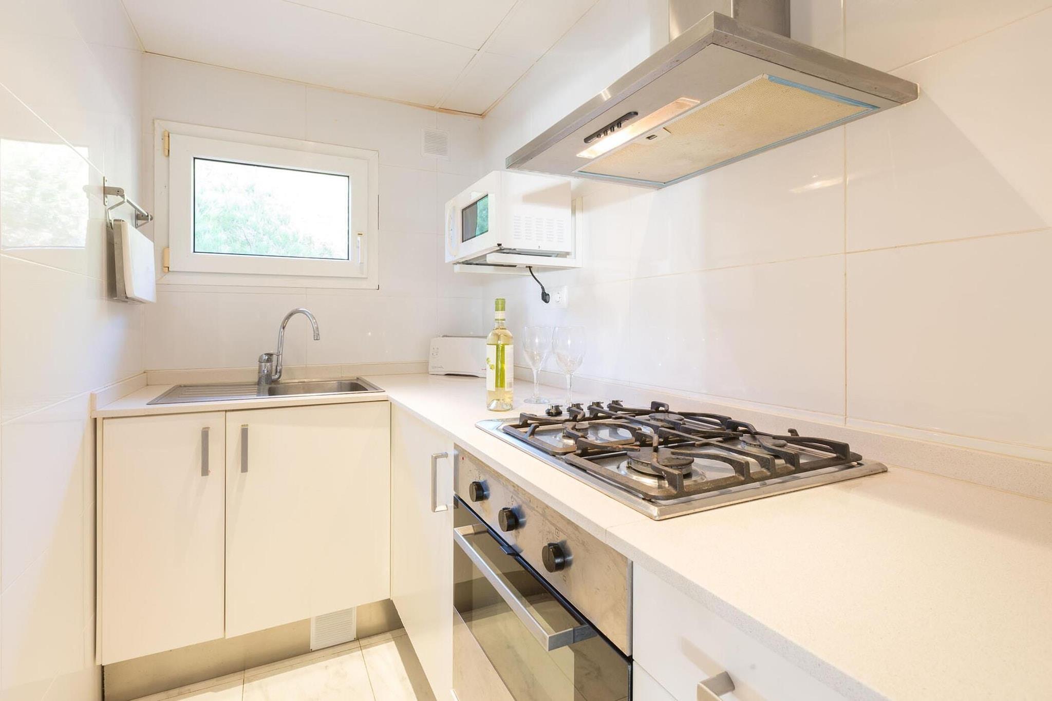 Lejligheden i Llafranc giver et indbydende og behageligt ophold med plads til op til seks gæster i tre velindrettede soveværelser. Dette charmerende tilflugtssted strækker sig over 85 m² og byder på en fantastisk udsigt over bjergene, hvilket skaber en fredelig atmosfære til afslapning. Beliggende i et familievenligt område sikrer ejendommen et roligt ophold. Det er ikke kæledyrsvenligt og opretholder et roligt miljø for alle besøgende. En rummelig terrasse giver gæsterne mulighed for at slappe af udendørs, mens moderne bekvemmeligheder såsom et tv og internet via USB forbedrer oplevelsen. En vaskemaskine er også tilgængelig, hvilket tilføjer bekvemmelighed for længere ophold. Ideelt beliggende kun 70 meter fra sandstranden giver lejligheden nem adgang til den smukke kystlinje. Byens centrum ligger kun 50 meter væk, hvor gæsterne kan udforske charmerende gader med butikker og caféer. En række restauranter ligger inden for gåafstand, som byder på lækre lokale retter. Et supermarked, der ligger kun 200 meter væk, sikrer nem adgang til daglige fornødenheder. For golfentusiaster ligger en naturskøn golfbane 20 km fra ejendommen, hvilket giver en fantastisk tilflugtssted for dem, der ønsker at nyde sporten. Det uafhængige gaskøkken er veludstyret til hjemmelavet madlavning, med mikrobølgeovn og opvaskemaskine for ekstra bekvemmelighed. Essentielt køkkenudstyr, herunder tallerkener og redskaber, sikrer en problemfri madoplevelse. En garage i samme bygning giver sikker parkering, hvilket gør den ideel for gæster, der rejser i bil. Med sin fremragende beliggenhed og praktiske faciliteter er denne lejlighed et godt valg til et afslappende ophold.