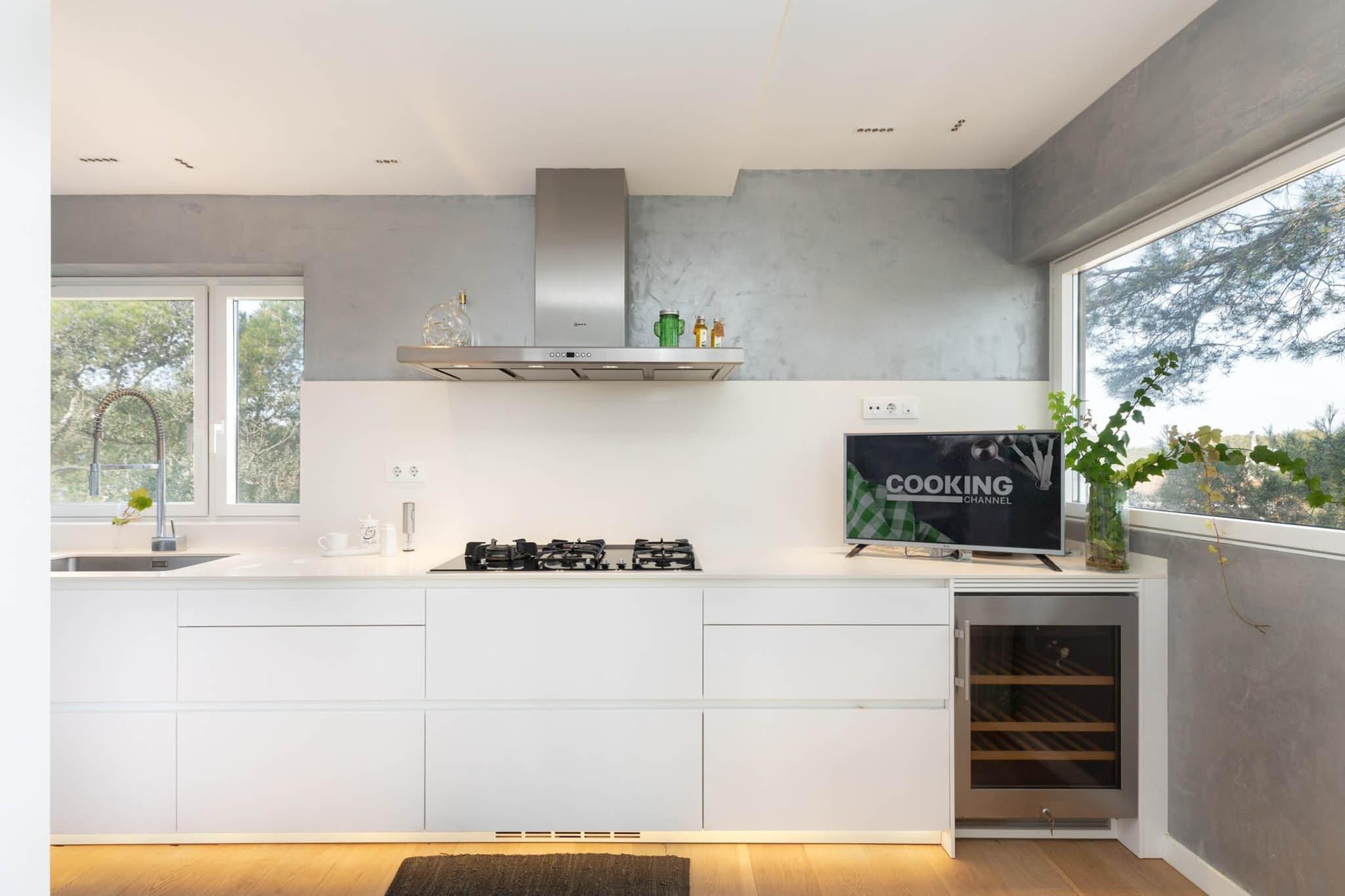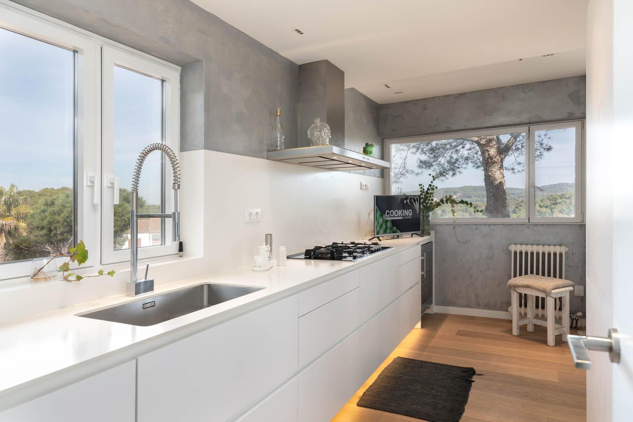 Villaen i Llafranc tilbyder et rummeligt og komfortabelt oase med fire soveværelser, der kan rumme op til otte gæster. Dette indbydende rum strækker sig over 200 m² og kan prale af en betagende udsigt over bjergene og en fredfyldt atmosfære. Det er designet til familier og tilbyder et kæledyrsfrit miljø med en privat swimmingpool og en møbleret have til udendørs afslapning. Indenfor kan gæsterne nyde moderne bekvemmeligheder, herunder Wi-Fi, en vaskemaskine, et strygejern og et tv. For ekstra sikkerhed har villaen et alarmsystem. Elvarme sikrer komfort året rundt, mens en privat garage tilbyder praktisk parkering på stedet. Beliggende i et familievenligt område, er villaen ideelt placeret for at udforske det bedste af Llafranc. Et supermarked ligger kun 600 meter væk, hvilket gør dagligvareindkøb ubesværet. Gæsterne kan nyde lokale retter på nærliggende restauranter, kun 650 meter fra ejendommen. Den charmerende bymidte ligger en kort gåtur på 750 meter og byder på butikker og livlige caféer. For strandelskere er Llafranc-strandens gyldne sand kun 800 meter væk, perfekt til solbadning eller vandaktiviteter. Golfentusiaster vil sætte pris på den 20 km lange nærhed til en velholdt golfbane. Villaen har et fuldt udstyret uafhængigt køkken med moderne apparater, herunder køleskab, mikroovn, ovn, fryser og opvaskemaskine. En kaffemaskine og brødrister giver ekstra bekvemmelighed til afslappede morgener. Spiseområdet byder på god plads til fælles måltider, hvilket skaber en varm og indbydende atmosfære. De velholdte toiletter giver de nødvendige faciliteter til et behageligt ophold. Gennemtænkt designet med både afslapning og praktisk i tankerne, sikrer denne villa en uforglemmelig ferieoplevelse.