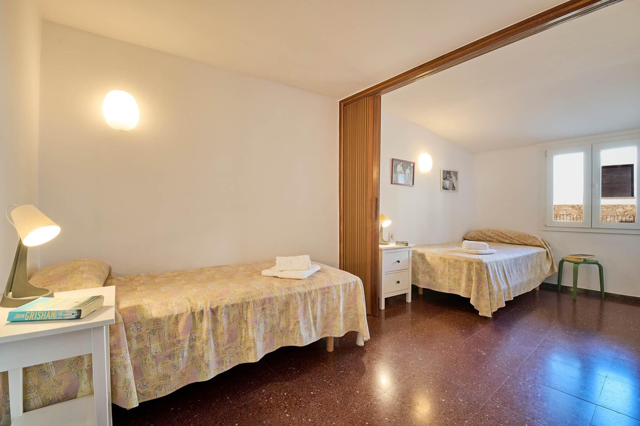 Denne charmerende lejlighed, beliggende på 6. sal i en bygning i centrum af Llafranc, tilbyder et hyggeligt tilflugtssted for op til fire gæster. Lejligheden har to komfortable soveværelser, et med tre enkeltsenge og et andet med en mindre seng, hvilket gør den perfekt til familier. Stuen/spisestuen har en pejs, hvilket skaber en varm og indbydende atmosfære. En stor møbleret terrasse tilbyder en fantastisk panoramaudsigt over havnen og havet, hvor gæsterne kan nyde morgenmaden i solen. Kæledyr er ikke tilladt, og lejligheden er ikke tilgængelig for grupper af unge under 35 år. Ejendommen er ideelt beliggende kun en kort gåtur fra stranden, butikker, restauranter og supermarkeder, hvilket placerer gæster i hjertet af Llafrancs pulserende kystliv. Med stranden kun få øjeblikke væk, kan du nemt tilbringe dine dage med at slappe af ved havet eller udforske de nærliggende lokale caféer og markeder. Denne førsteklasses beliggenhed på Costa Brava sikrer, at du vil have masser af muligheder for at nyde det rige naturlige skønhedsområde. Ud over den fantastiske udsigt er lejligheden fuldt udstyret med et køkken med moderne apparater såsom gaskomfur, mikroovn, ovn, køleskab og kaffemaskine, så gæsterne nemt kan tilberede deres måltider. Badeværelset har et lille badekar, og der er også en vaskemaskine for ekstra bekvemmelighed. Med disse praktiske faciliteter er denne lejlighed en vidunderlig mulighed for familier, der ønsker at nyde et afslappende og behageligt ophold.