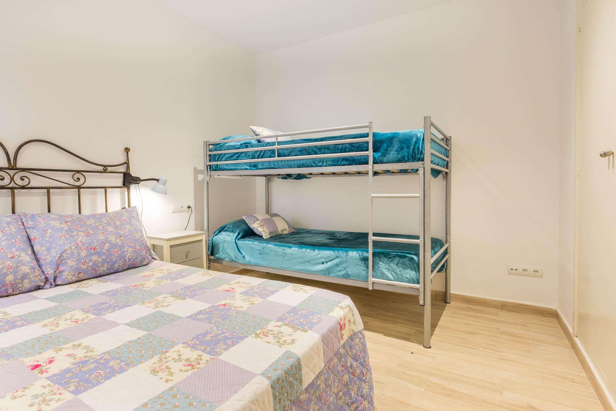 Denne rummelige og moderne lejlighed tilbyder et behageligt ophold for op til 8 gæster. Det har to firedobbelte soveværelser, hver med en dobbeltseng og køjesenge, perfekt til familier eller grupper. Lejligheden er kæledyrsvenlig efter forudgående anmodning og inkluderer alle de nødvendige faciliteter til et afslappende ophold, såsom Wi-Fi, et tv og en hyggelig opholdsstue. Kæledyr er tilladt mod et tillæg, og reservationer fra unge under 35 år accepteres ikke. Beliggende kun 100 m fra en af de smukkeste strande på Costa Brava, er denne lejlighed ideelt placeret for nem adgang til lokale caféer, butikker og supermarkeder. Det livlige område omkring ejendommen byder på en blanding af charmerende restauranter og hyggelige butikker, perfekt til at nyde den lokale atmosfære. Besøgende kan også udforske det nærliggende marked for friske råvarer eller tage en afslappet spadseretur langs stranden og nyde de fredelige omgivelser. Lejligheden er udstyret med et fuldt funktionelt køkken med keramisk kogeplade, ovn, mikroovn og opvaskemaskine, så du kan tilberede dine yndlingsmåltider. Der er også et rummeligt spiseområde, hvor du kan nyde familiemåltider sammen. Badeværelset er udstyret med en brusebakke, og ejendommen tilbyder et vaskerum med en vaskemaskine for ekstra bekvemmelighed. Den indre gårdhave med møbler er perfekt til at slappe af udendørs.