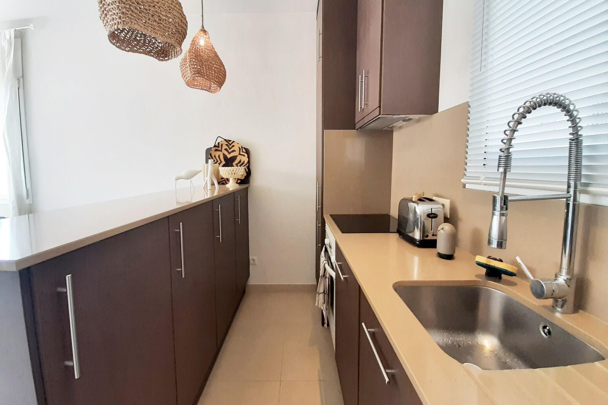 Denne moderne og hyggelige 2-værelses lejlighed i Llafranc tilbyder et behageligt ophold for op til 4 gæster med 40 m² veldesignet boligareal. Det har en fantastisk udsigt over både havnefronten og de omkringliggende bjerge, hvilket skaber en rolig atmosfære perfekt til afslapning. Beliggende kun 500 meter fra byens centrum, 600 meter fra supermarkedet og i gåafstand fra både en sand- og en klippestrand, giver denne lejlighed nem adgang til alt, hvad Llafranc har at tilbyde. Derudover ligger en golfbane 20 km væk, hvilket gør den ideel for golfelskere. Lejligheden er udstyret med en række faciliteter til at forbedre dit ophold, herunder udendørs møbler og en terrasse, hvor du kan nyde udsigten. Indenfor finder du en komfortabel opholdsstue med tv og moderne bekvemmeligheder såsom vaskemaskine, tørretumbler og Wi-Fi via USB-forbindelse. Lejligheden tilbyder også overdækket parkering i samme bygning, hvilket giver ekstra bekvemmelighed. Beliggende i en familievenlig zone omgivet af skov, kan du nyde et fredeligt tilflugtssted, mens du er tæt på de lokale attraktioner. Det åbne køkken er fuldt udstyret med alt hvad du behøver for at tilberede måltider, herunder en glaskeramisk kogeplade, køleskab, mikroovn, ovn, fryser, opvaskemaskine, kaffemaskine, brødrister og tallerkener/bestik. Med sin ideelle beliggenhed, moderne bekvemmeligheder og fredfyldte omgivelser er denne lejlighed et perfekt valg til en afslappende ferie på Costa Brava.