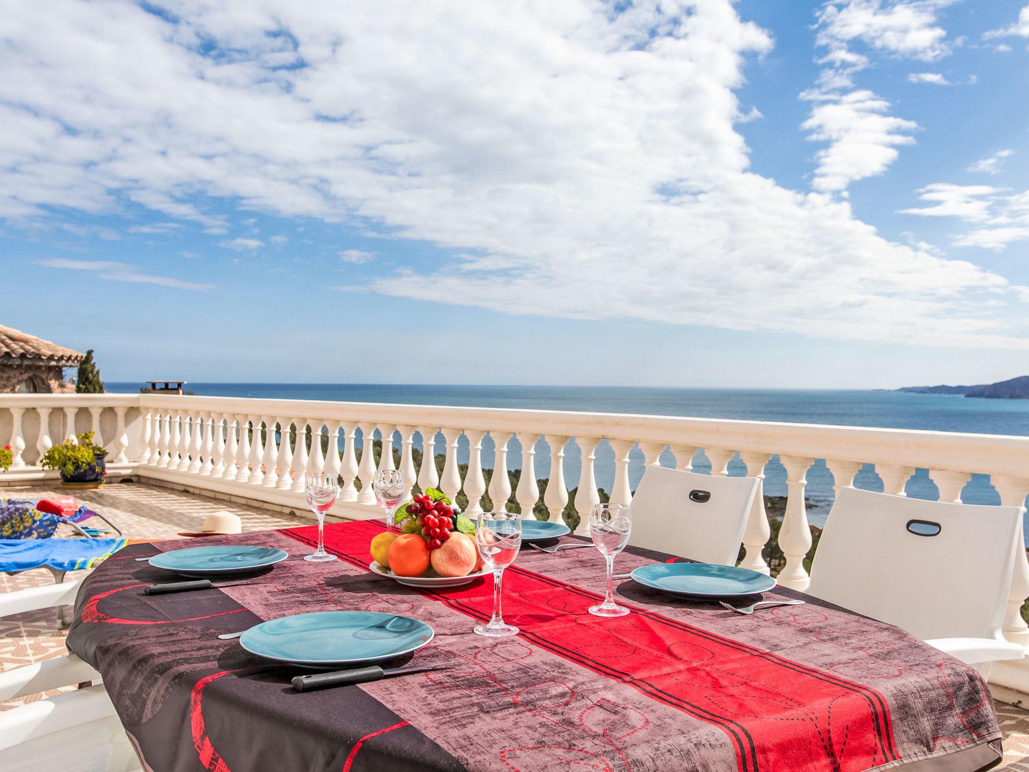 "Bellavista", 3-room house 95 m2. Bright, practical and cosy furnishings: living/dining room 28 m2 with satellite TV (flat screen). Exit to the terrace. 1 room with 1 french bed (1 x 140 cm), fan. Exit to the terrace. 1 room with 1 french bed (1 x 140 cm), fan. Kitchen 15 m2 (4 hot plates, oven, toaster, microwave, electric coffee machine). Exit to the terrace. Bathroom, shower/WC. No heating option. Large terrace 60 m2. Terrace furniture, barbecue. Marvellous panoramic view of the sea, the mountains, the countryside and the resort. Facilities: washing machine. Parking at the house. Please note: TV only FR. HUTG-075442 // Reg. Nr.: ESFCTU00001702000035046200000000000000000HUTG-0754429