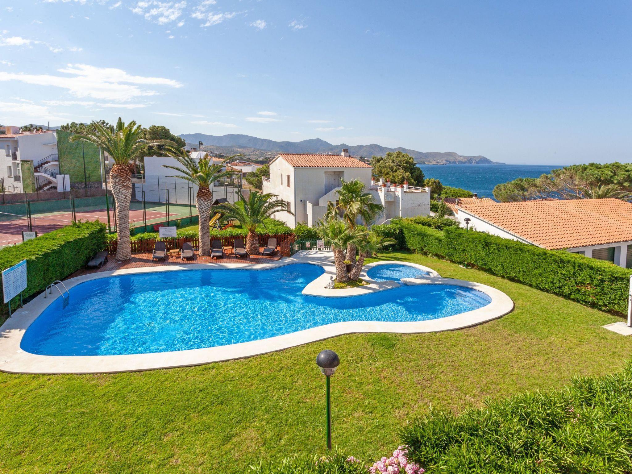 Fane de Baix 5 km from El Port de la Selva: Holiday development "Palmiers I". 2 km from the centre of Llançà, 50 m from the sea. For shared use: property 6'000 m2 with plants and trees, swimming pool (17 x 7 m, seasonal availability: 03.May. - 30.Sep.) with salt-electrolysis pool-cleaning system. Tennis, children's playground (swing), parking at 100 m. Shopping centre 2 km, restaurant 2 km, bus stop "Ayuntamiento Llançà" 2.6 km, railway station "Llançà" 3.2 km, sandy beach 2 km pebble beach, swimming bay 400 m. Golf course (18 hole) 17 km. Please note: Additional accommodations can be booked. Covered parking for a bicycle. Tennis 1h per day free of charge from 9h to 18h.