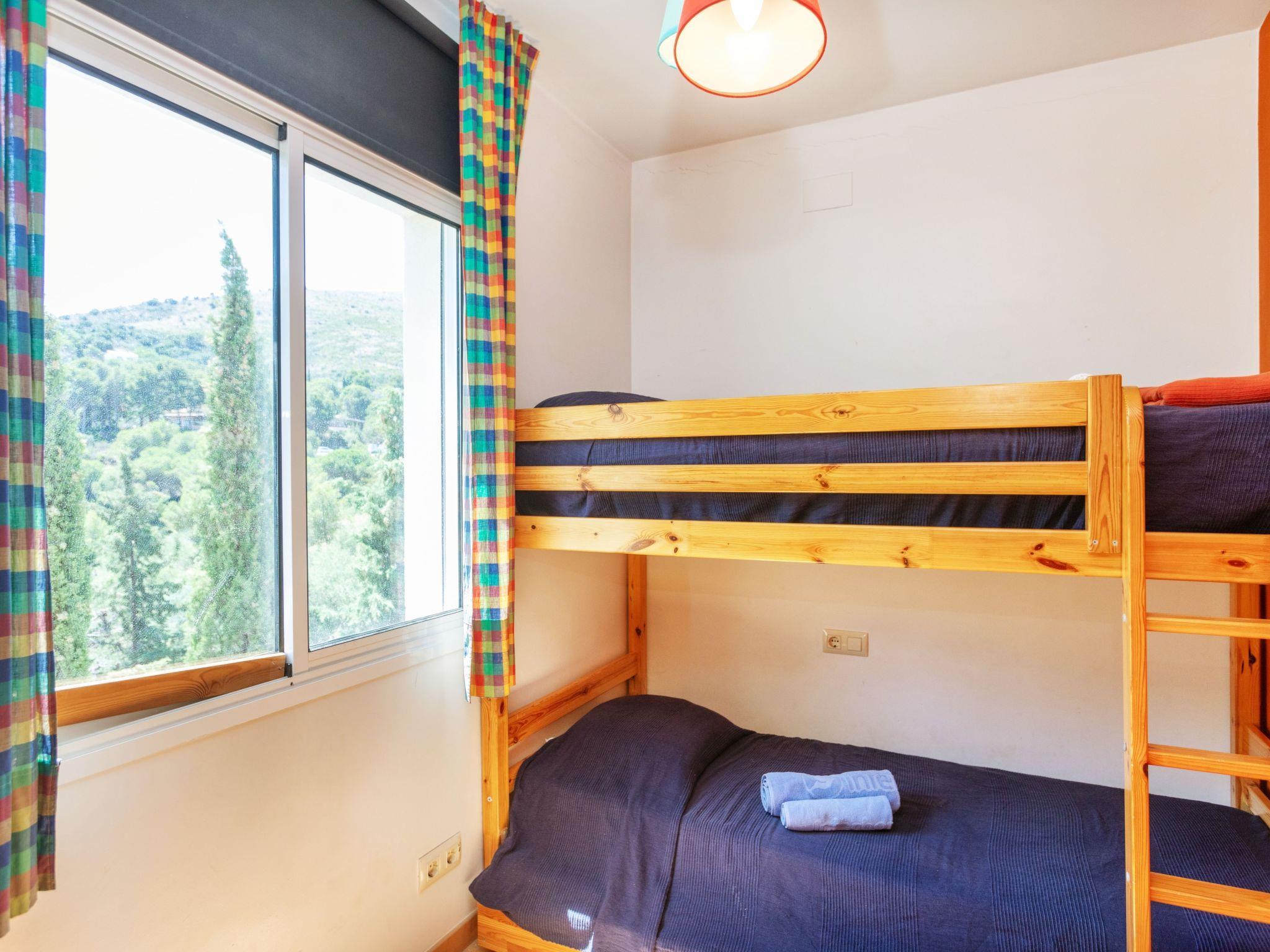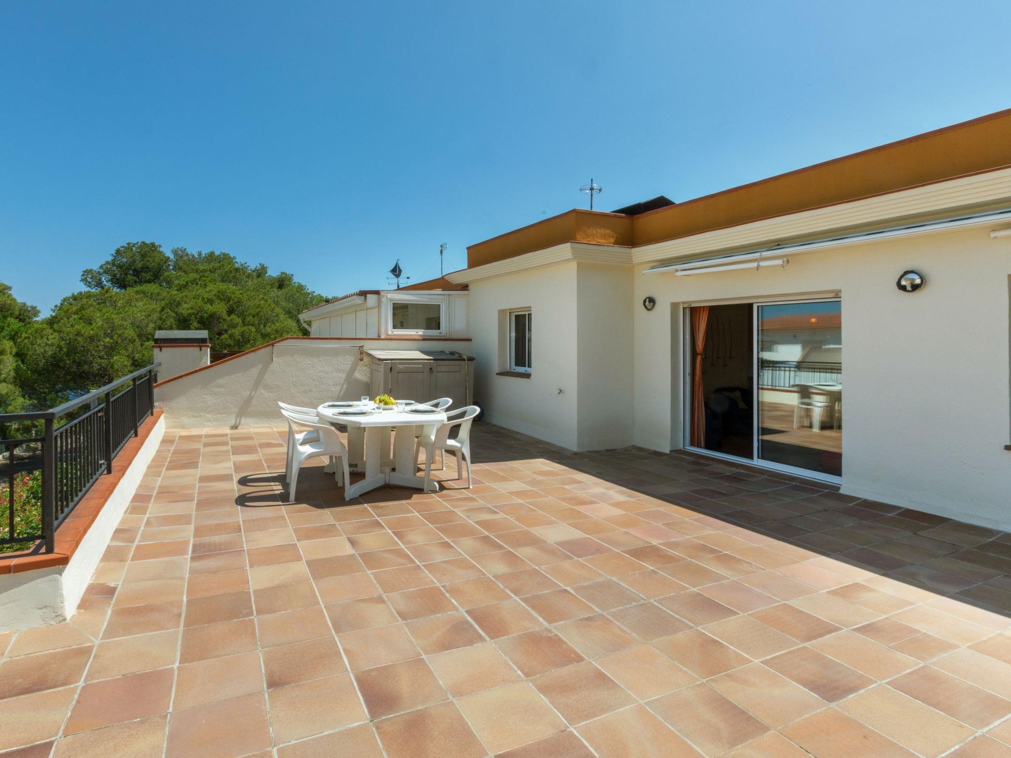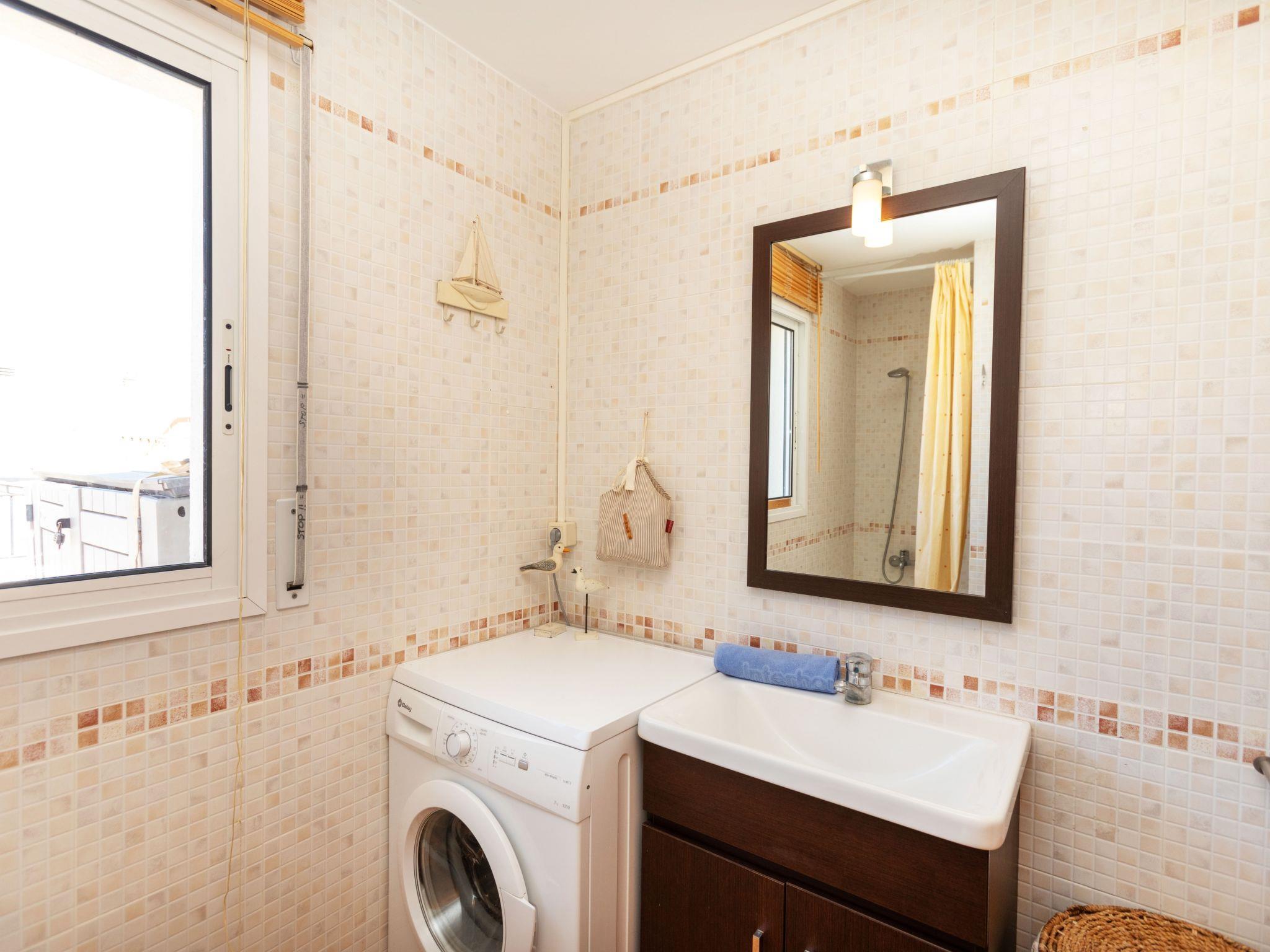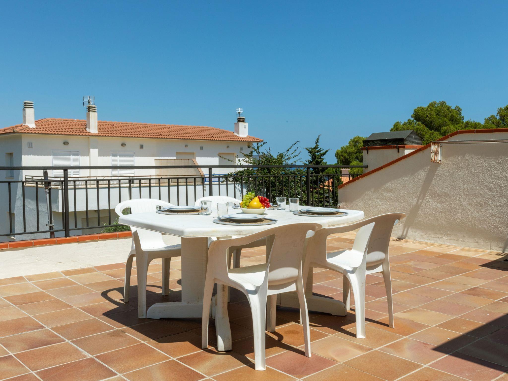 3-room apartment 60 m2 on 2nd floor. Spacious and bright, comfortable and modern furnishings: living/dining room with dining table and satellite TV. Exit to the terrace. 1 room with 1 french bed (160 cm, length 190 cm). 1 room with 1 x 2 bunk beds. Open kitchen (oven, 4 ceramic glass hob hotplates, toaster, kettle, microwave, freezer, electric coffee machine). Shower/WC. Large terrace 30 m2. Terrace furniture. Very beautiful view of the sea. Facilities: washing machine, iron, hair dryer. Please note: non-smokers only. TV only ES, FR. No lift. HUTG-012711 // Reg. Nr.: ESFCTU00001702000036867200000000000000000HUTG-0127119