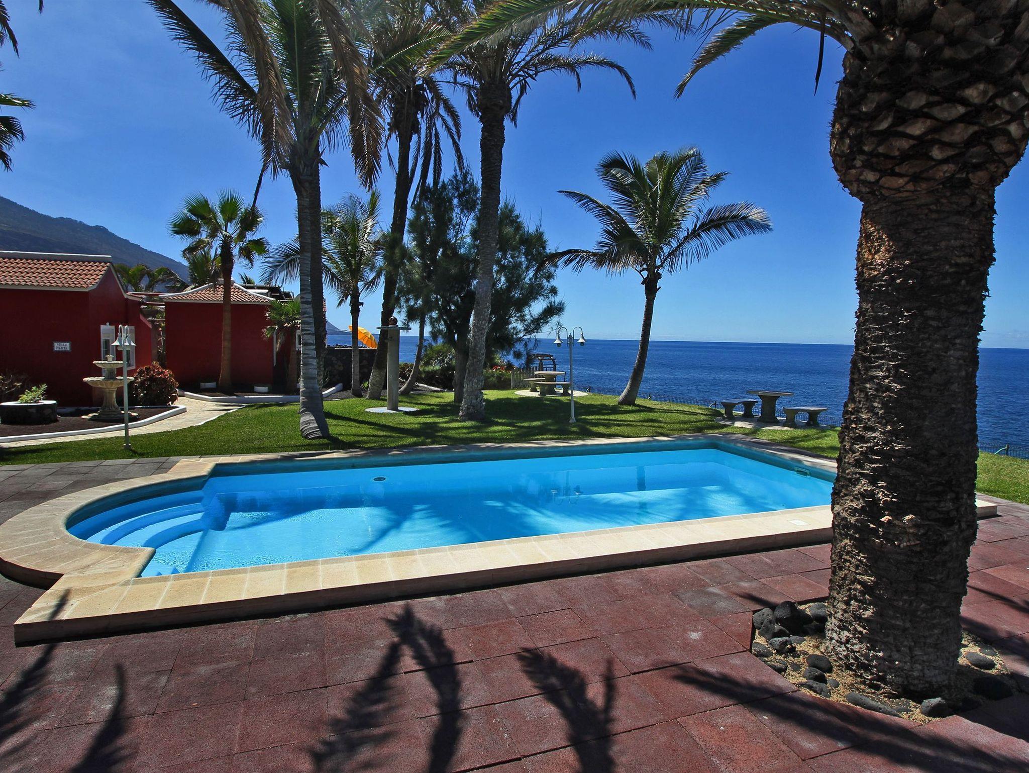 Villa Marta mit Pool liegt direkt am Meer an der Küste oberhalb vom Strand Charco verde