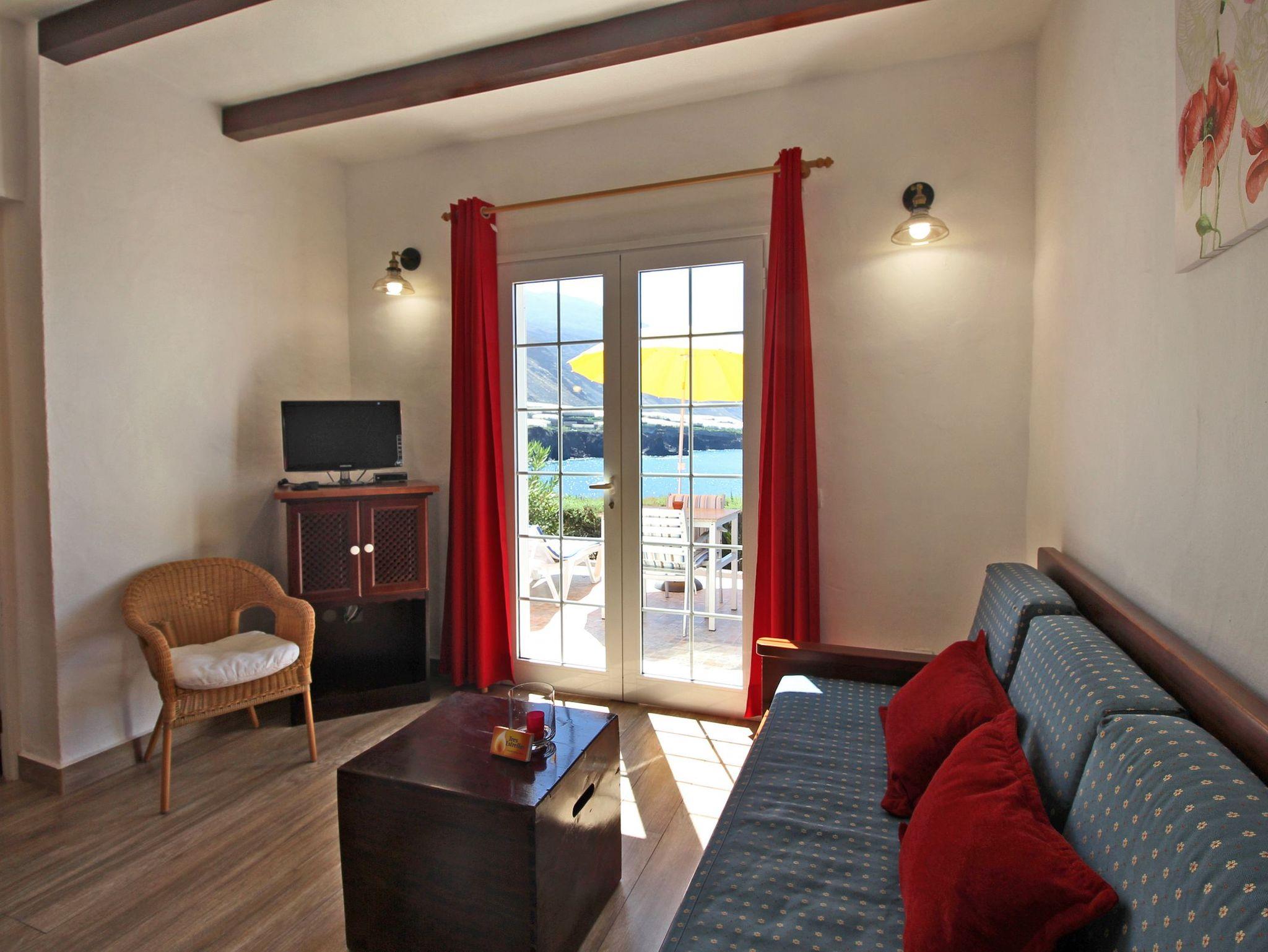 Sie ist nach Süden, Richtung Strand / Fuencaliente ausgerichtet, man blickt direkt auf den Atlantik. Zur Einrichtung gehört hier ebenfalls ein Sofa.