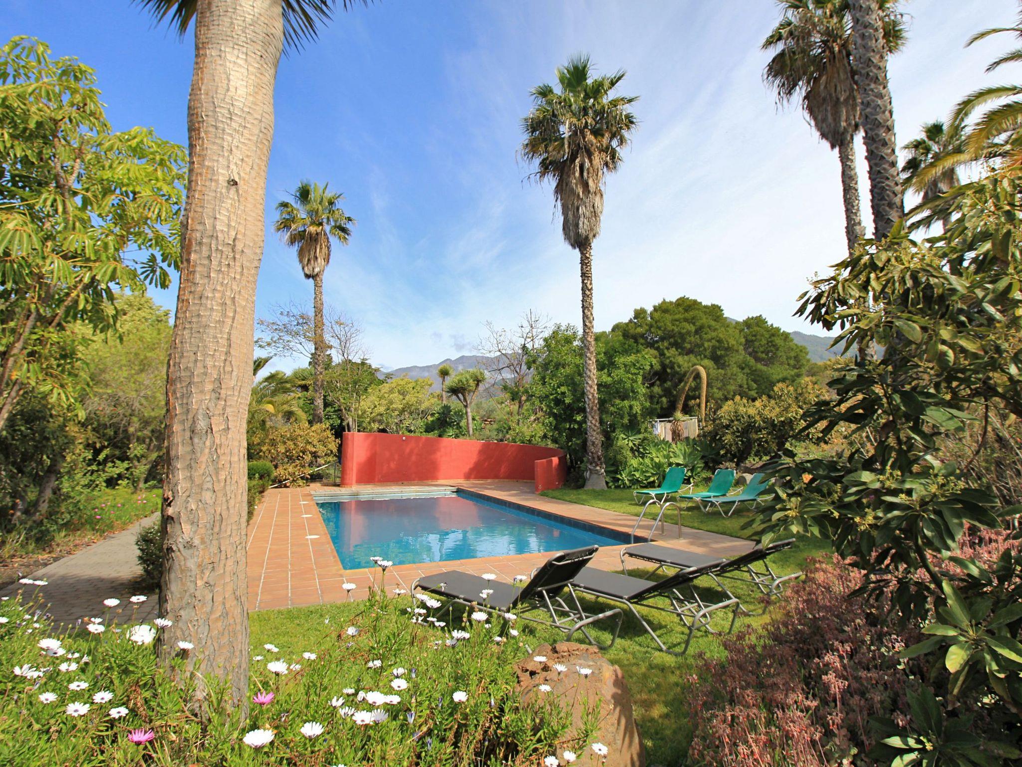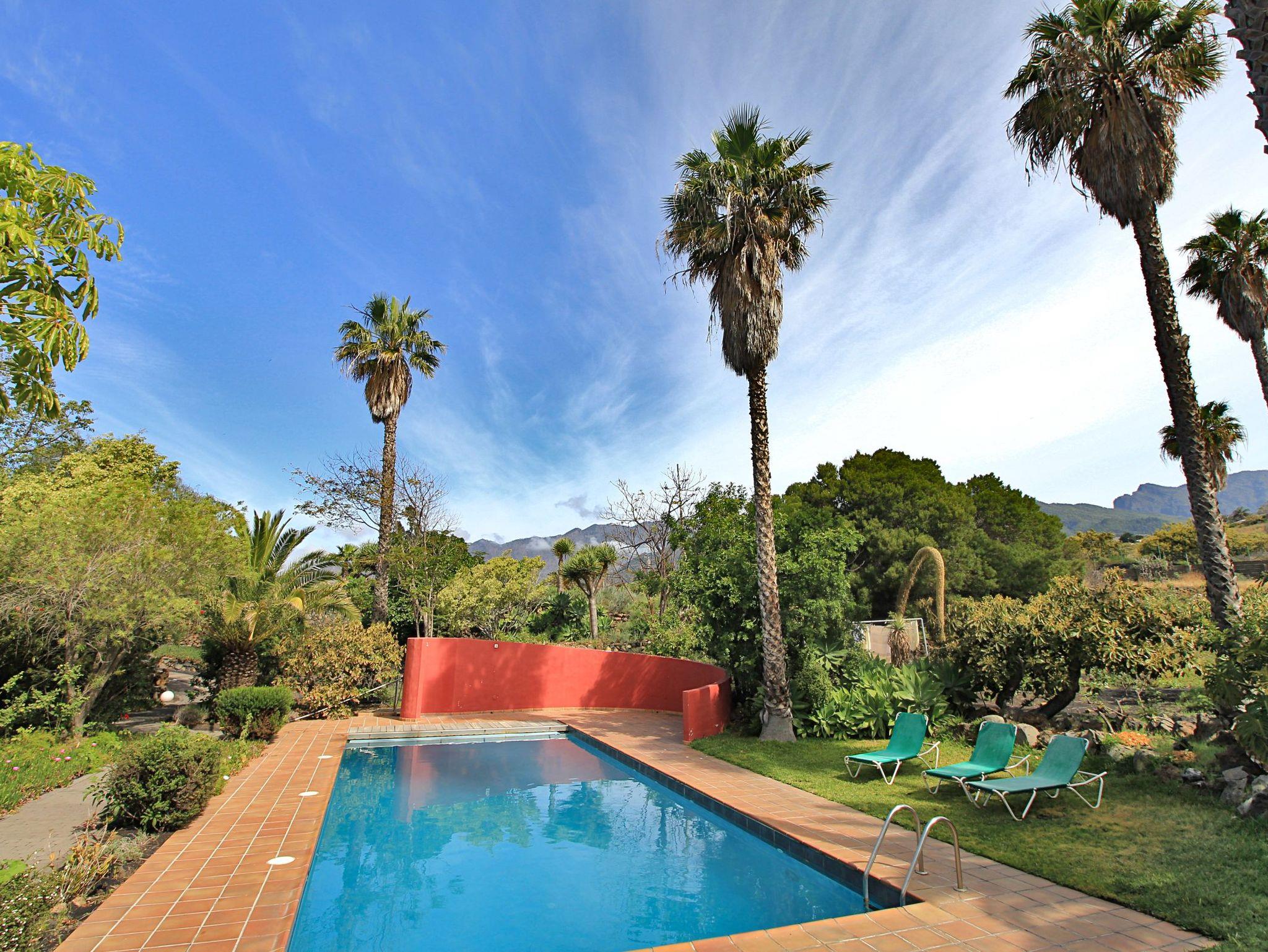 Die Wohnfläche beträgt ca. 150 qm. Es gibt drei Schlafzimmer (jedes mit eigenem Bad) für max. sechs Personen. Die beiden Unterkünfte teilen sich einen 5 x 12 m großen Swimmingpool. Das Wasser wird ohne Chlor mittels Salzwasserelektrolyse aufbereitet. Die große Poolterrasse ist mit Liegestühlen und sowie einer Außendusche ausgestattet. Oberhalb davon befindet sich eine Avocado-Finca. Der Garten der Anlage mit Palmen und subtropischen Blühpflanzen ist ansprechend gestaltet und gut eingewachsen.