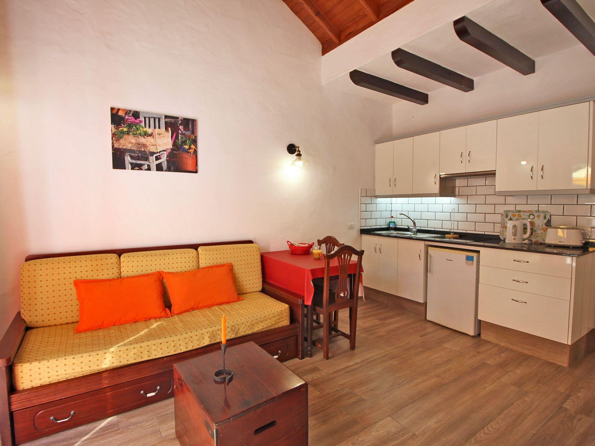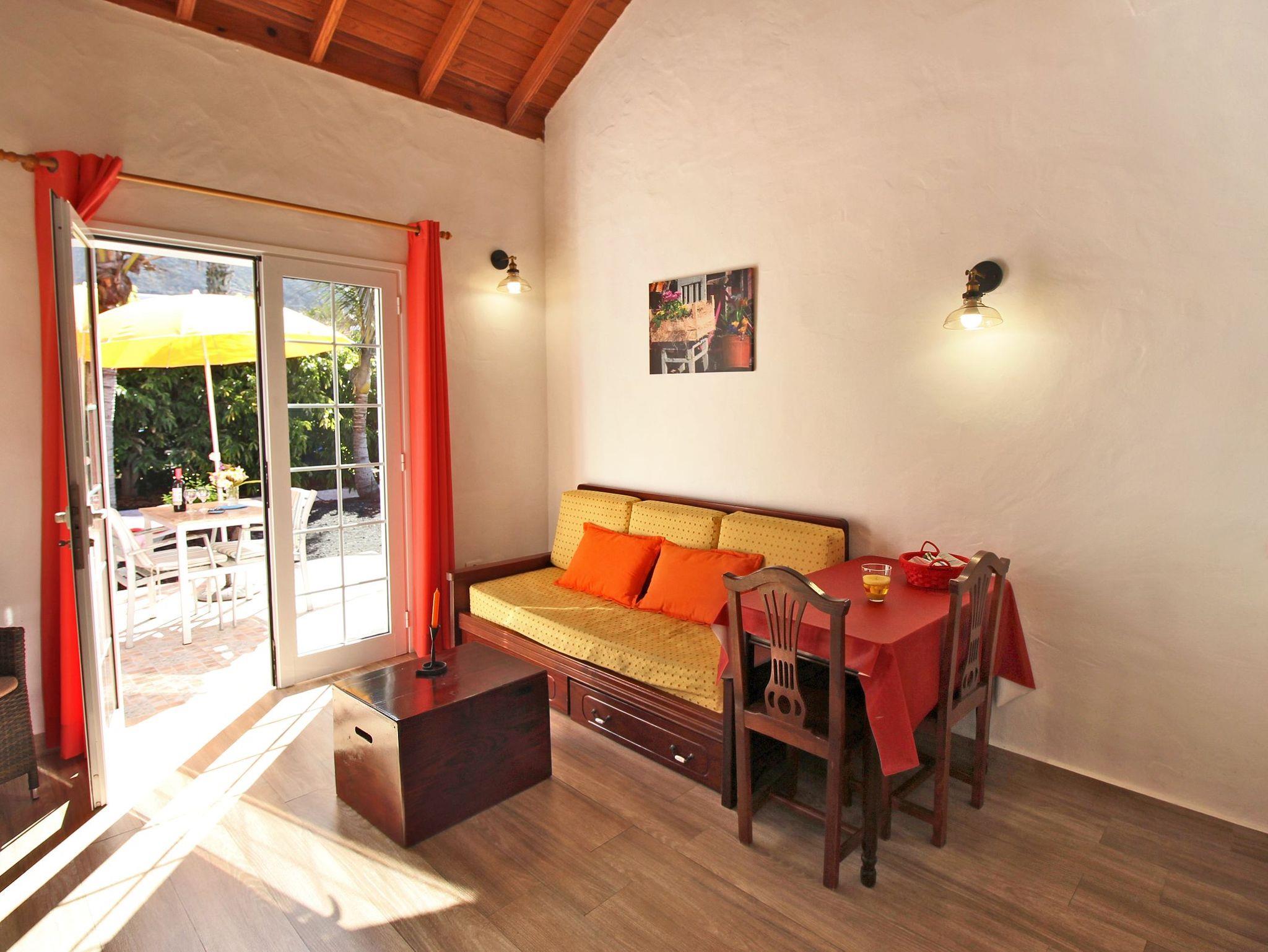 Sie ist nach Süden, Richtung Strand / Fuencaliente ausgerichtet, man blickt direkt auf den Atlantik. Zur Einrichtung gehört hier ebenfalls ein Sofa.