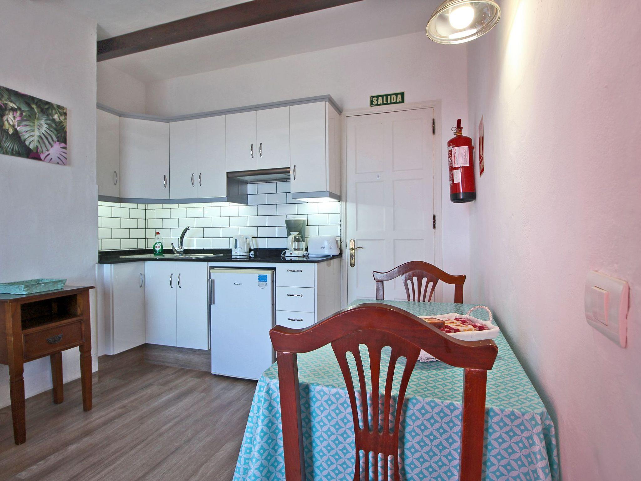 • 2 Korbsessel, Couchtisch, Esstisch mit 2 Stühlen, Fernseher (mit allen deutschen und spanischen Programme)