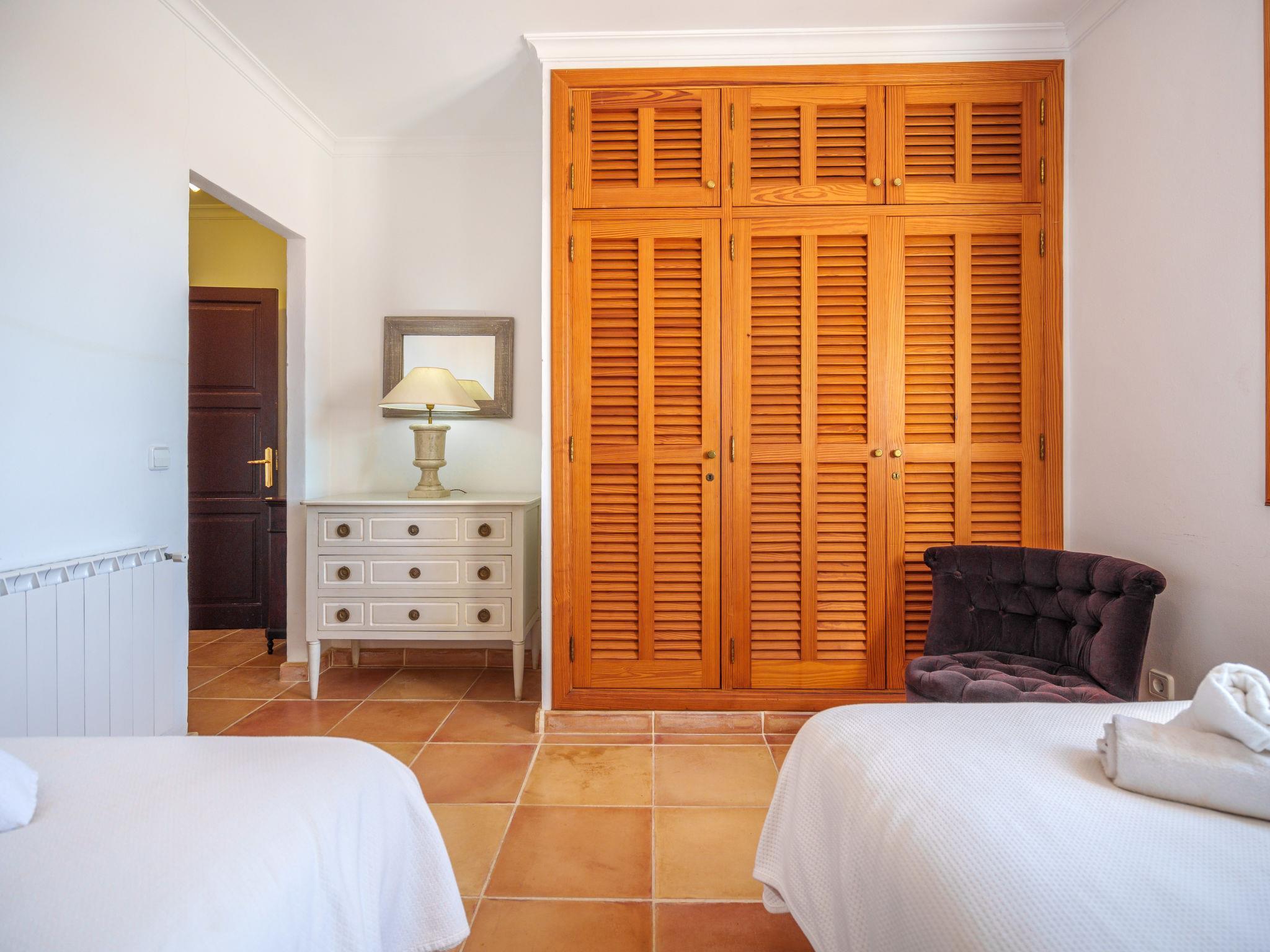 "Gran Llombards", 5-room house 200 m2 on 2 levels. Object suitable for 6 adults. Very comfortable furnishings: living room with open-hearth fireplace, digital TV, international TV channels and flat screen. Exit to the patio. Dining room with dining table, digital TV and flat screen. Kitchen-/living room (oven, dishwasher, 3 ceramic glass hob hotplates, toaster, kettle, microwave, freezer, electric coffee machine) with dining table. Shower/WC. Upper floor: 1 large double bedroom with 1 french bed (150 cm, length 200 cm), bath/WC. Exit to the terrace. 3 large double bedrooms, each room with 2 beds (90 cm, length 200 cm), bath/WC. Large balcony, patio, porch. Terrace furniture, balcony furniture, barbecue, deck chairs (4), covered balcony. View of the resort. Facilities: washing machine, iron, children's high chair, baby cot, hair dryer. Internet (WiFi, free). Parking (fenced 2 cars) at the house. Please note: non-smoking house. The pool mentioned in the description is for private use. ETV/9186 // Reg. Nr.: ESFCTU00000700800077721500000000000000000000ETV/91868