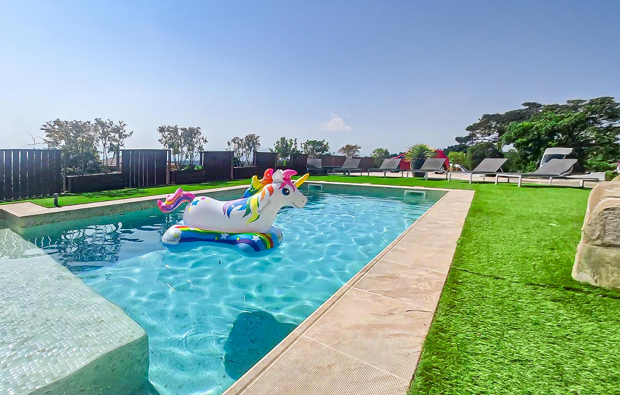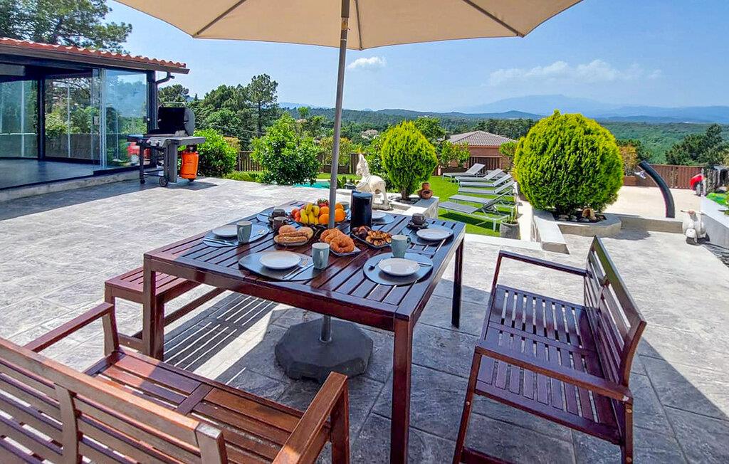 Nyd en hyggelig ferie i dette rummelige feriehus med pool og fortryllende panoramaudsigt.