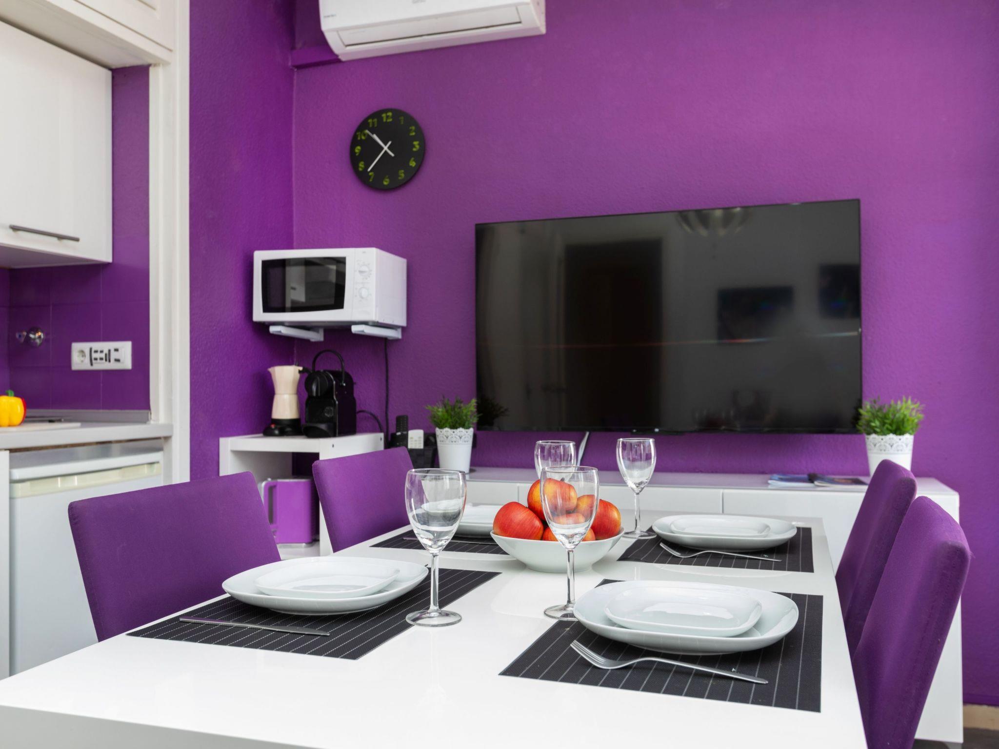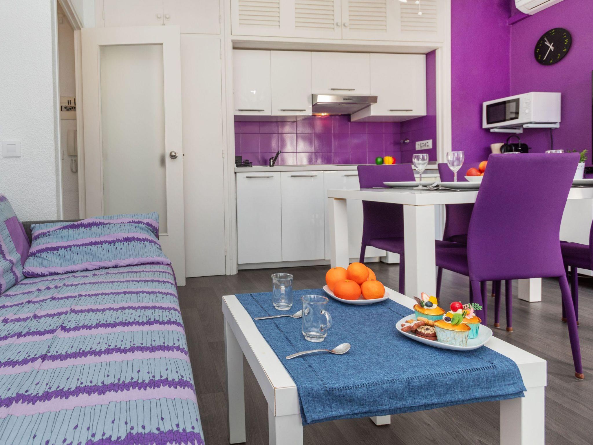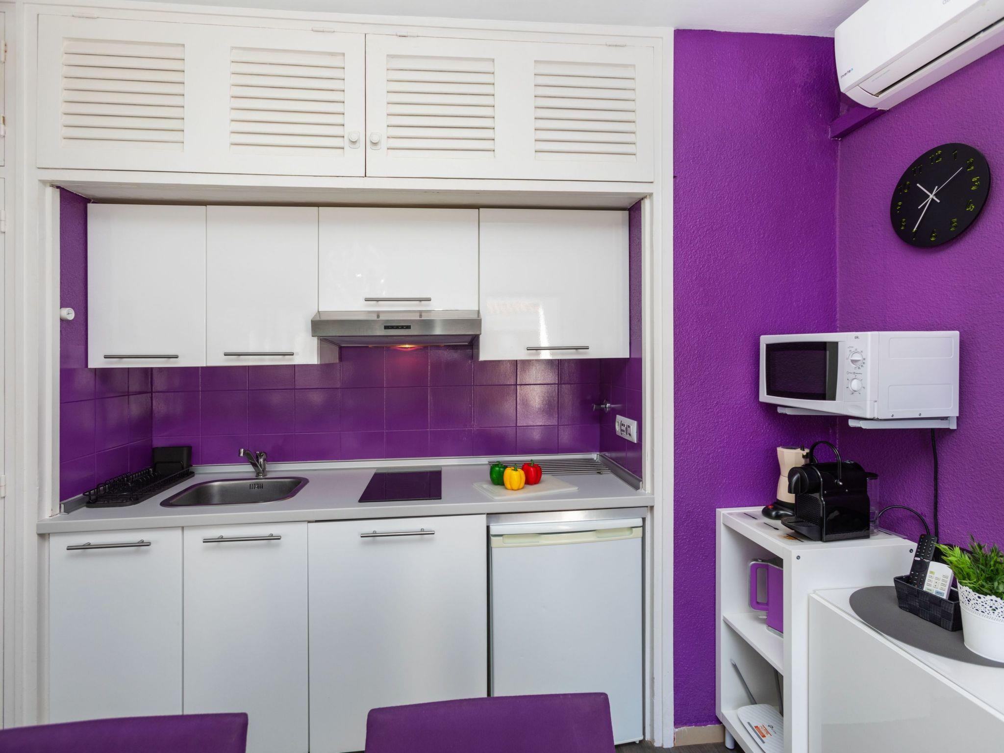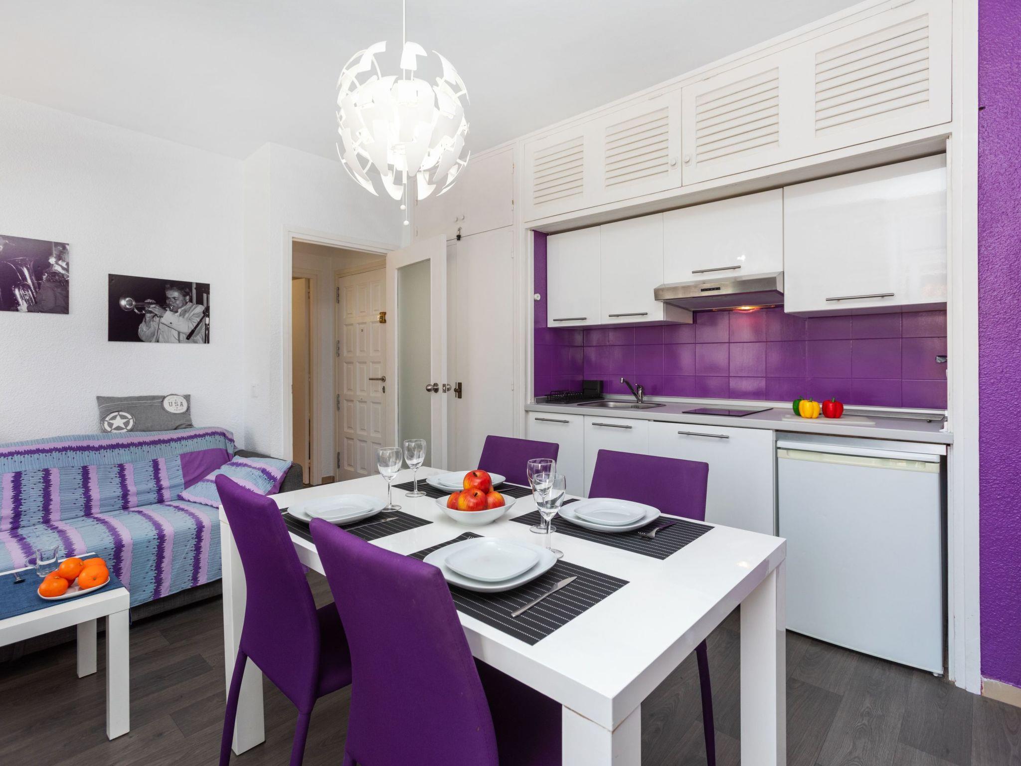 "jazz", 2-room apartment 33 m2. Bright, modern furnishings: living/dining room with 1 sofabed (150 cm, length 200 cm), TV, air conditioning and forced-air heating. Exit to the balcony. 1 double bedroom with 1 french bed (140 cm, length 200 cm), electric heating. Open kitchen (1 induction hot plates, toaster, kettle, microwave, electric coffee machine, Capsules for coffee machine (Nespresso)) with dining table, TV, air conditioning and forced-air heating. Exit to the balcony. Bath/WC. Small balcony 3 m2, east facing position. Balcony furniture. View of the resort. Facilities: washing machine, iron, hair dryer. Internet (WiFi, free). Please note: TV only ES. HUTG-004185 // Reg. Nr.: ESFCTU00001701300052317200000000000000000HUTG-0041859