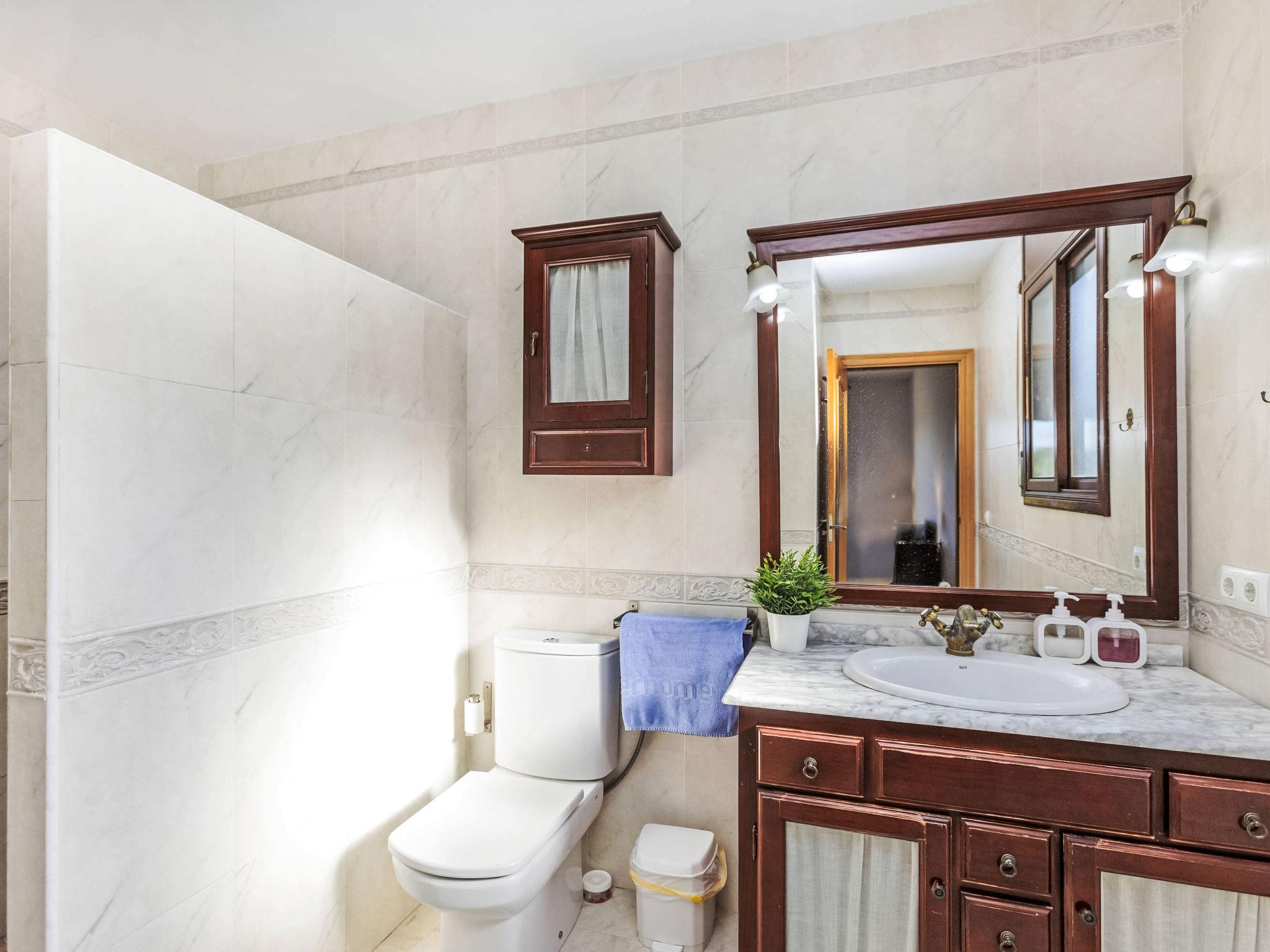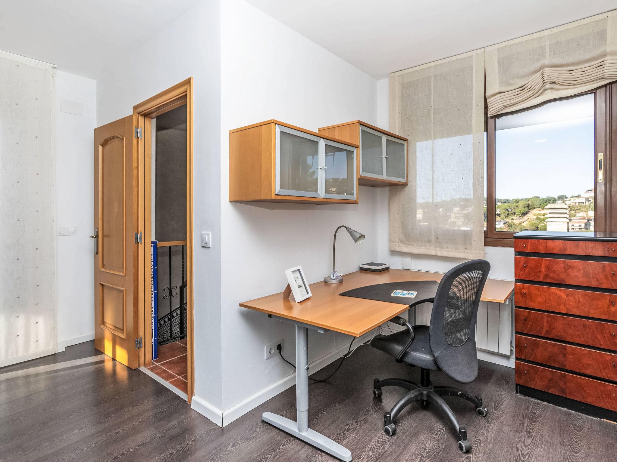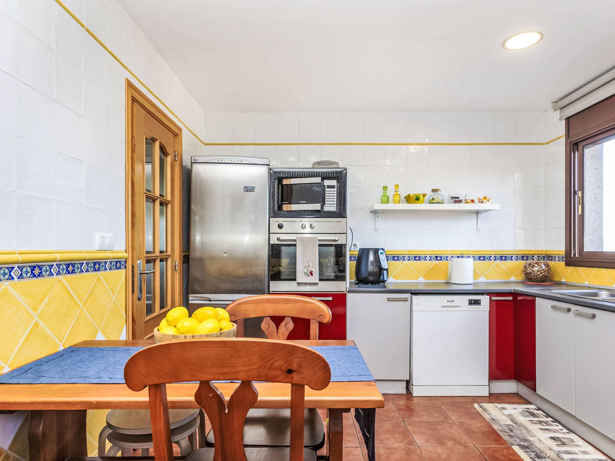 "La Barca", 7-room house 180 m2. Practical and comfortable furnishings: living/dining room with dining table and digital TV. Exit to the terrace. 2 double bedrooms, each room with 2 beds (90 cm, length 190 cm). 1 double bedroom with 2 beds (90 cm, length 190 cm), shower/WC. Kitchen (oven, dishwasher, 4 ceramic glass hob hotplates, microwave, freezer, electric coffee machine). Shower/WC. On the lower ground floor: living/dining room. Exit to the terrace, to the swimming pool. 1 double bedroom with 2 beds (90 cm, length 190 cm). Upper floor: 1 double bedroom with 1 french bed (150 cm, length 190 cm), shower/WC. Pizza oven) with dining table. Large patio. Terrace furniture, barbecue, deck chairs. View of the mountains and the resort. Facilities: washing machine, children's high chair, baby cot for up to 2 year olds, hair dryer. Internet (WiFi, free). Parking, garage (2 cars) at the house. Please note: suitable for families. TV only ES. HUTG-021713 // Reg. Nr.: ESFCTU00001701300046731500000000000000HUTG-021713-710