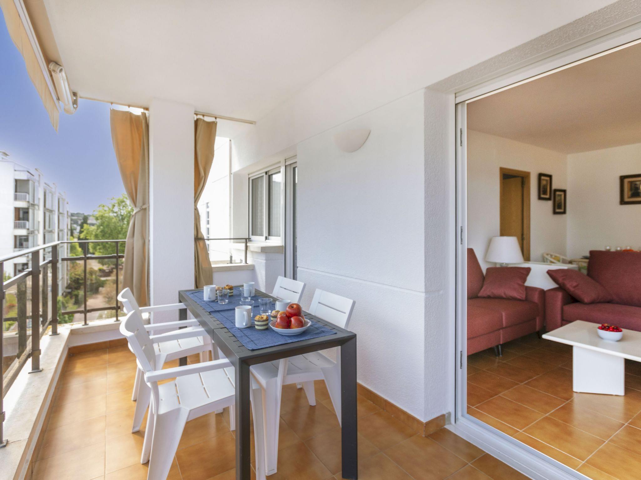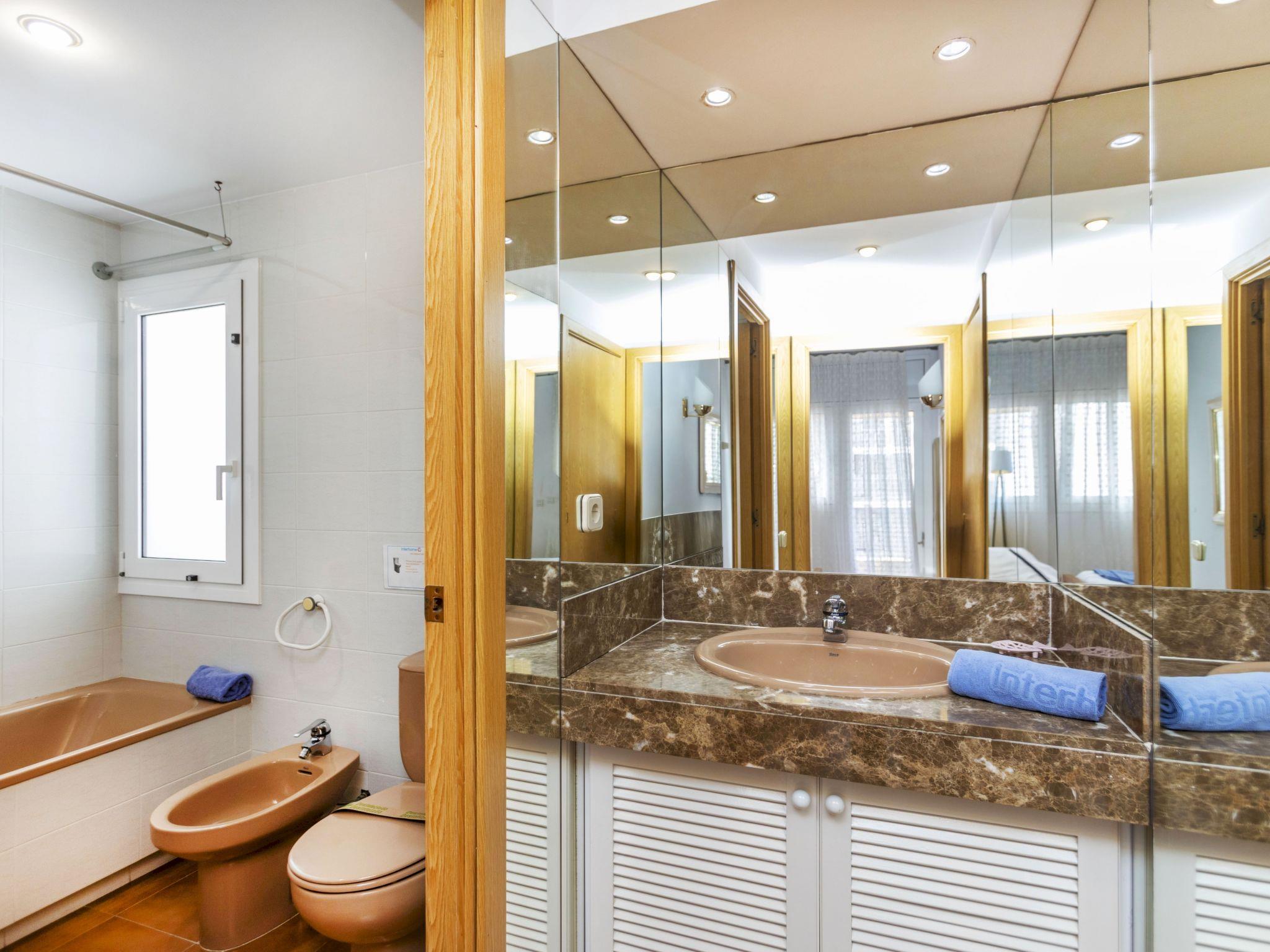 "Punta Garbí", 4-room apartment 84 m2 on 5th floor, south facing position. Spacious and bright, comfortable and cosy furnishings: living/dining room with sliding door, panoramic window south facing position with dining table, digital TV and fan. Exit to the terrace, south facing position. 1 double bedroom with 1 french bed (135 cm, length 190 cm), bath/bidet/WC. Exit to the terrace. 2 rooms, each room with 2 beds (90 cm, length 190 cm). Large kitchen (4 hot plates, oven, dishwasher, toaster, kettle, microwave, freezer, electric coffee machine). Exit to the loggia. Bath/bidet/WC. Heating available only from 01.11. to 15.03. Large balcony. Terrace furniture. Marvellous panoramic view of the sea. Facilities: washing machine, iron, children's high chair, baby cot for up to 2 year olds, hair dryer. Internet (WiFi). Please note: suitable for families. Maximum 1 pet/ dog allowed. TV only ES. HUTG020489 // Reg. Nr.: ESFCTU00001701300050635900000000000000HUTG-020489-162