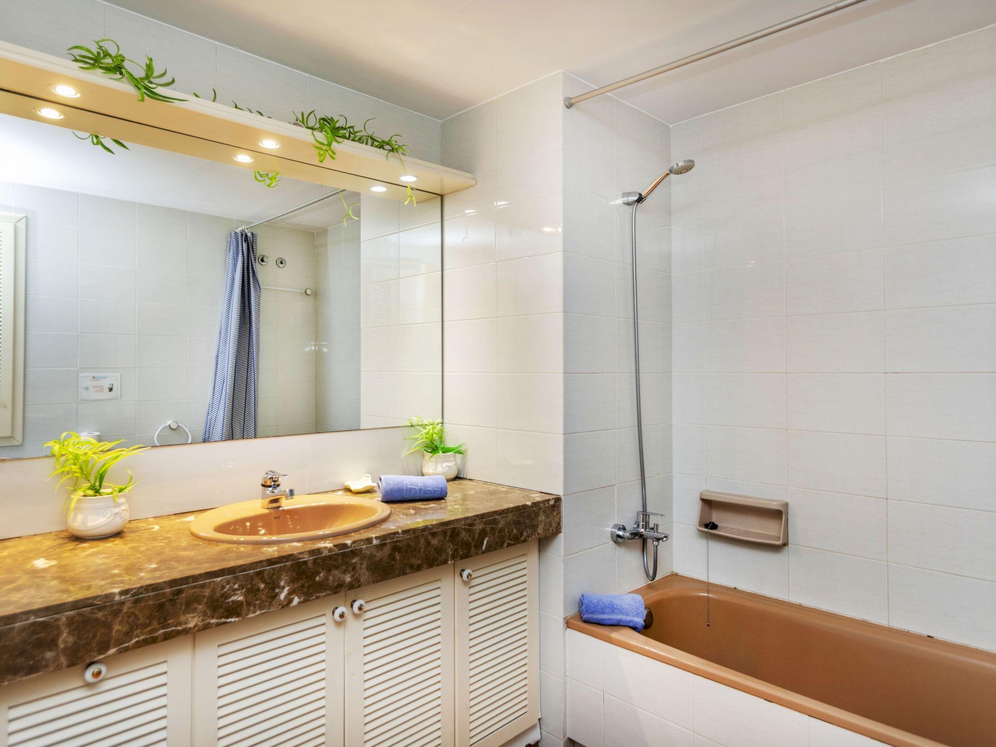 Playa de Fenals: Simple, comfortable holiday development "Punta Garbí". In the district of Fenals, 1 km from the centre of Lloret, excellent location: right in the centre but still quiet, 50 m from the sea, 50 m from the beach, road to cross, south facing position. For shared use: beautiful garden to relax, swimming pool angular (25 x 7 m, depth 120 - 180 cm, seasonal availability: 15.Jun. - 31.Sep. pool opening hours: 09:00-21:00). WC in the pool area, children's pool, outdoor shower, pergola, garden furniture. In the house: reception, lift, washing machine. Grocery 200 m, restaurant 100 m, bus stop 300 m, sandy beach 50 m. Nearby attractions: Water World Lloret 3 km, Marineland Malgrat 14 km, Pueblo Medieval Tossa de mar 12 km. The owner does not accept any groups. The owner does not accept any youth groups. Neighbourhood highly sensitive to noise. Quietness and good behaviour expected.