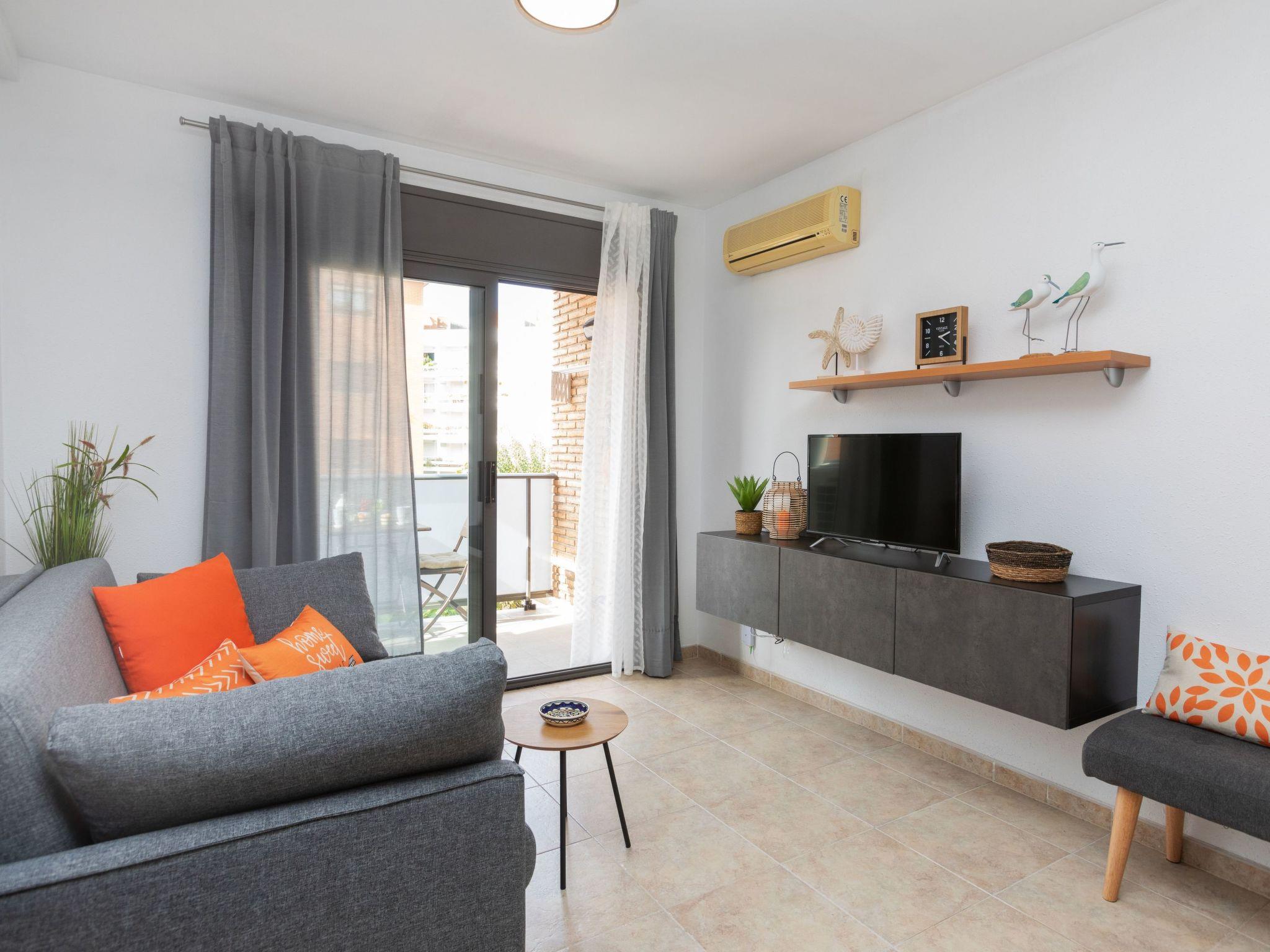 "Es Freus", 2-room apartment 50 m2. Bright, practical and cosy furnishings: living/dining room with 1 sofabed (135 cm, length 190 cm), dining table, digital TV, air conditioning and forced-air heating. Exit to the balcony. 1 double bedroom with 1 french bed (150 cm, length 190 cm), digital TV, air conditioning and forced-air heating. Open kitchen (oven, 4 ceramic glass hob hotplates, toaster, kettle, microwave, freezer, electric coffee machine). Shower/WC. Boiler (80 litres). Balcony. Balcony furniture. View of the resort. Facilities: iron, hair dryer. Internet (WiFi). Please note: suitable for families. TV only ES. HUTG-042197 // Reg. Nr.: ESFCTU00001701300023838000000000000000HUTG-042197-742